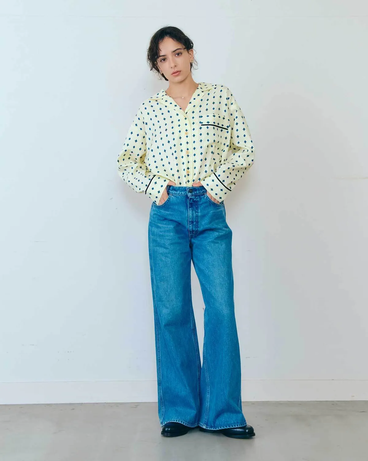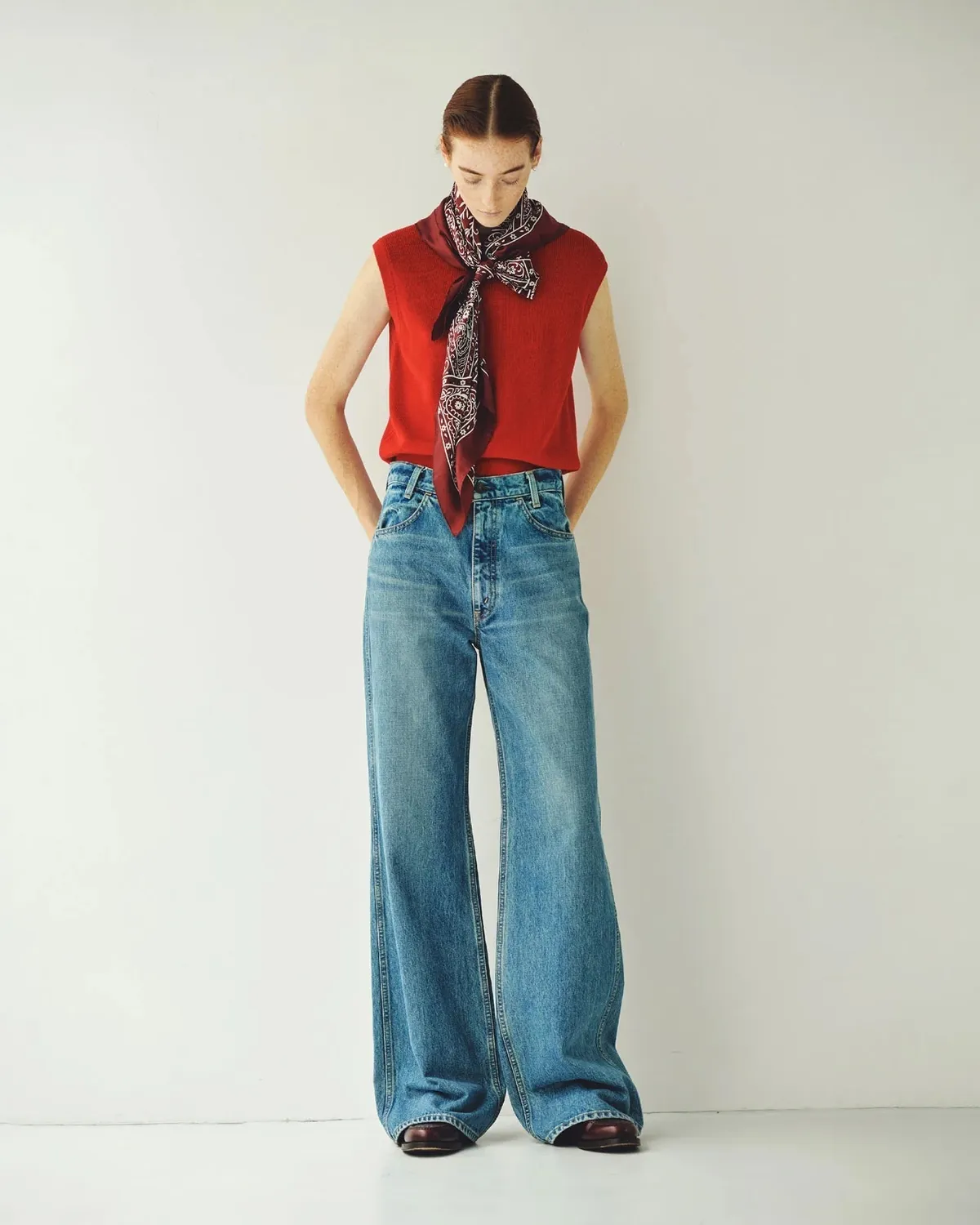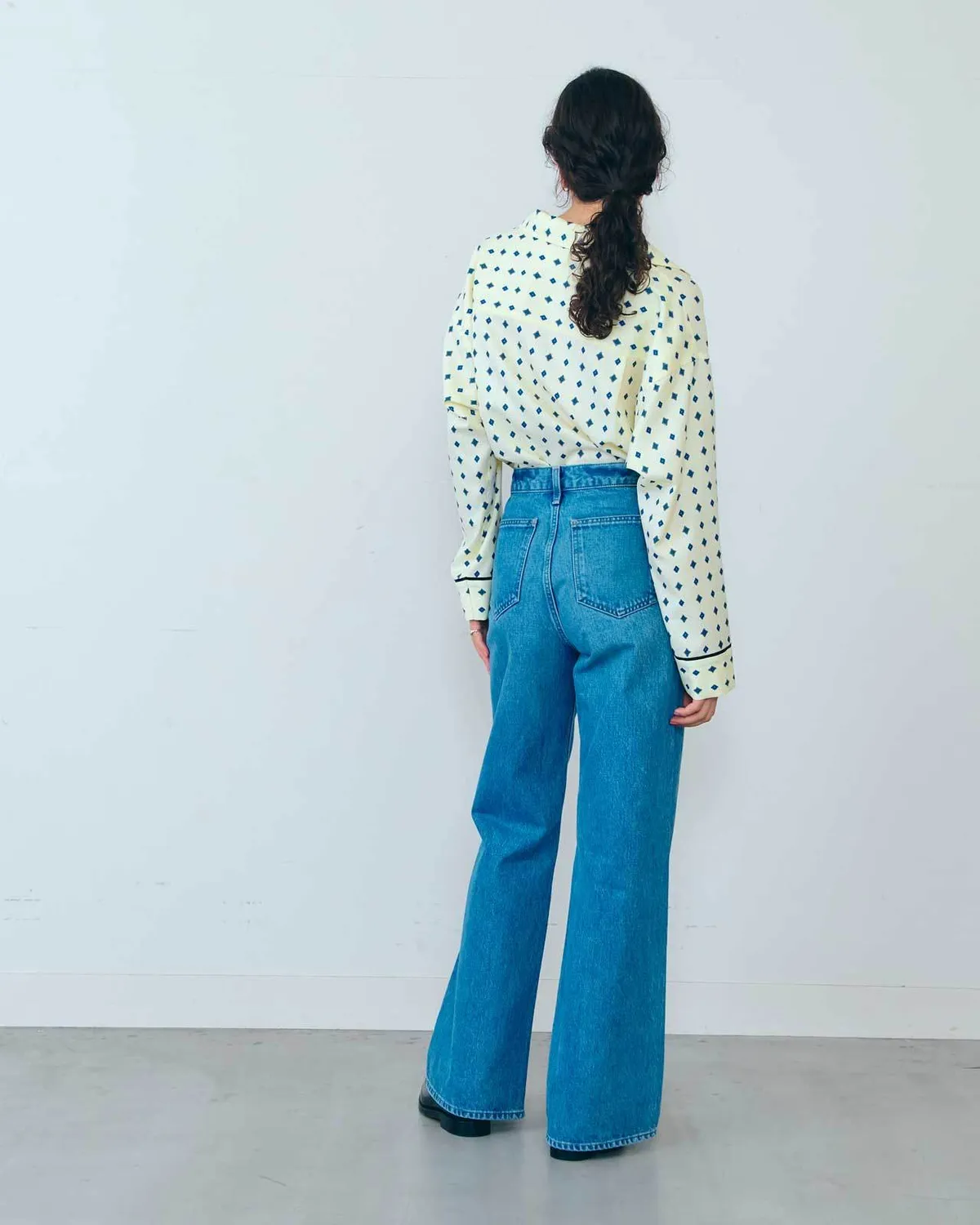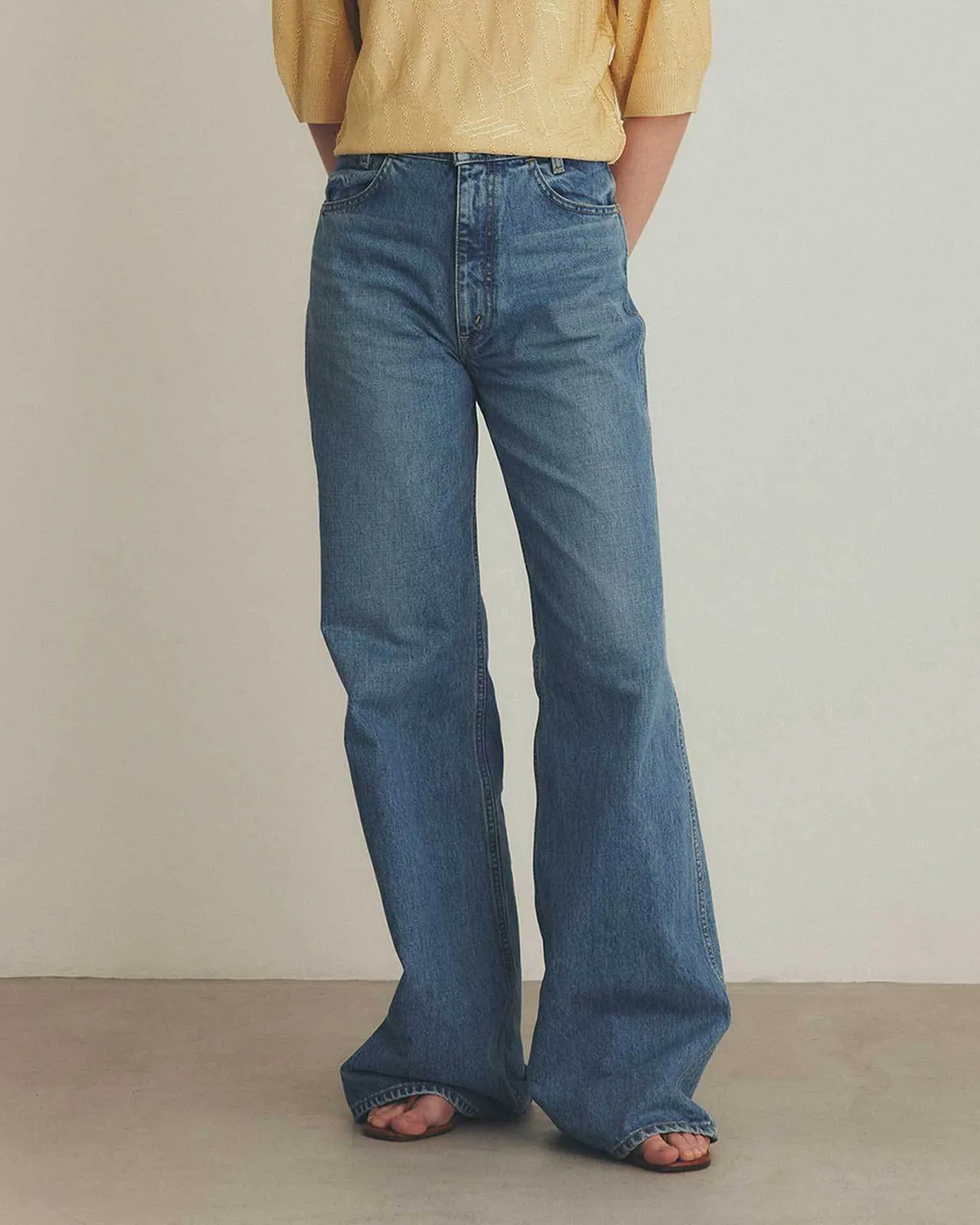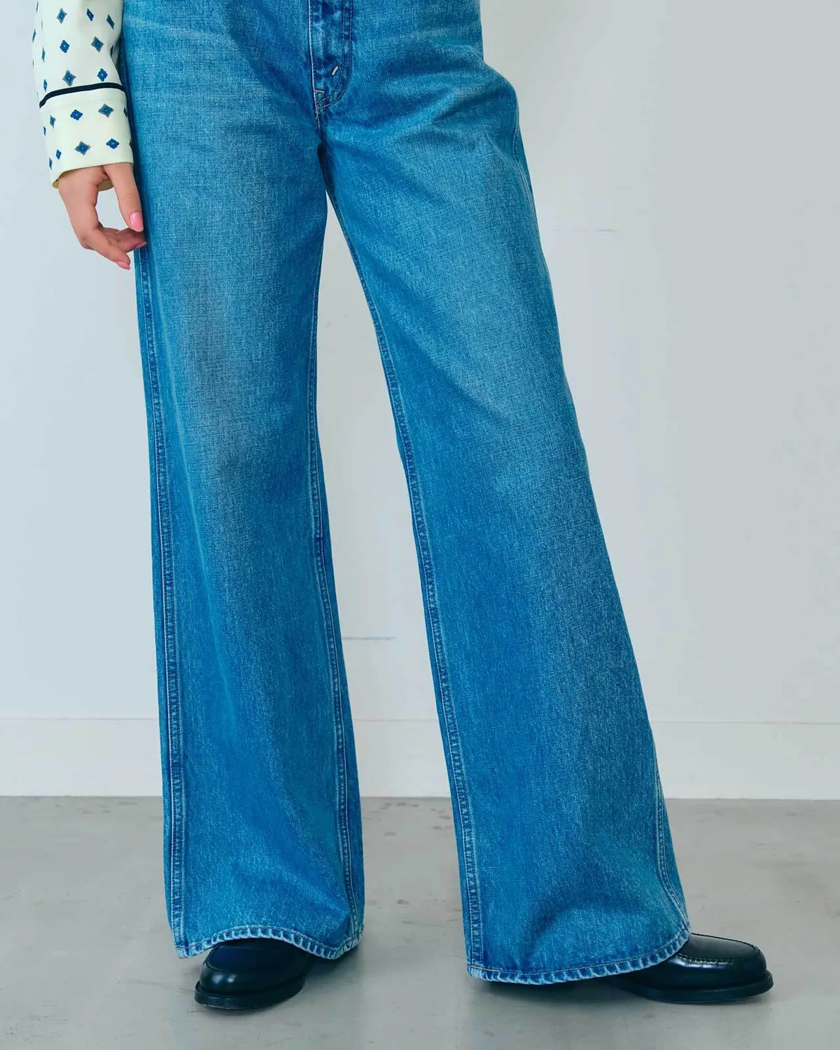 膝蓋到褲管的半寬喇叭褲設計