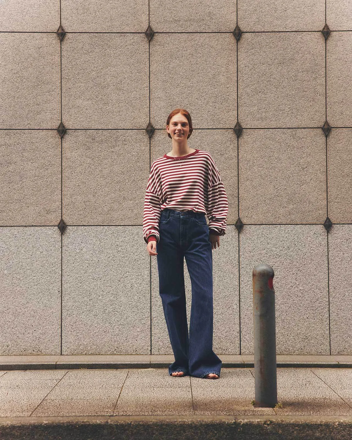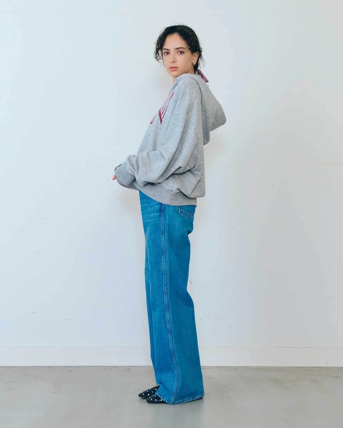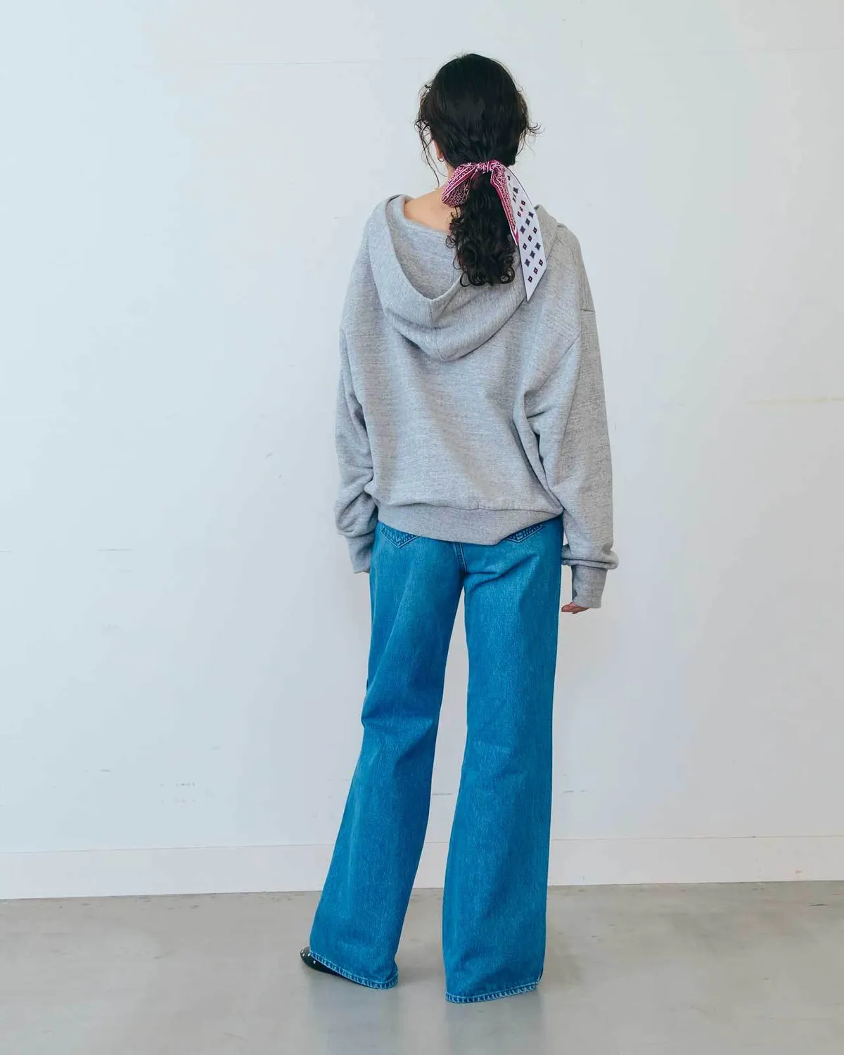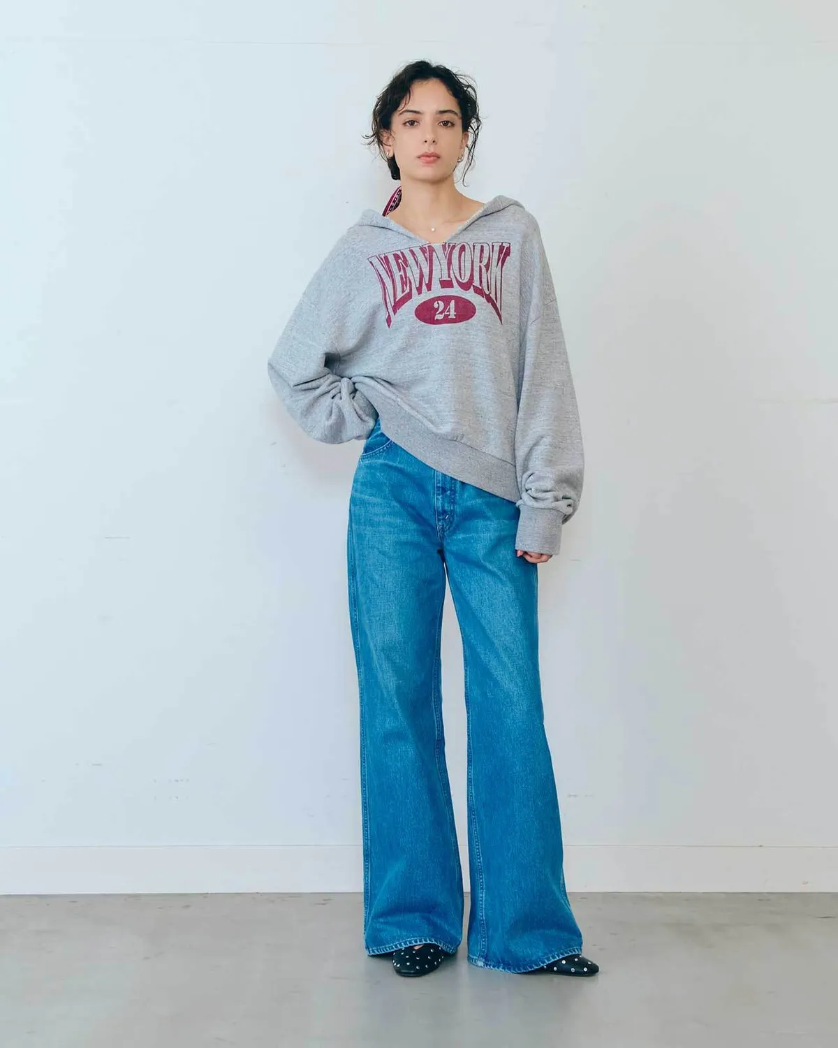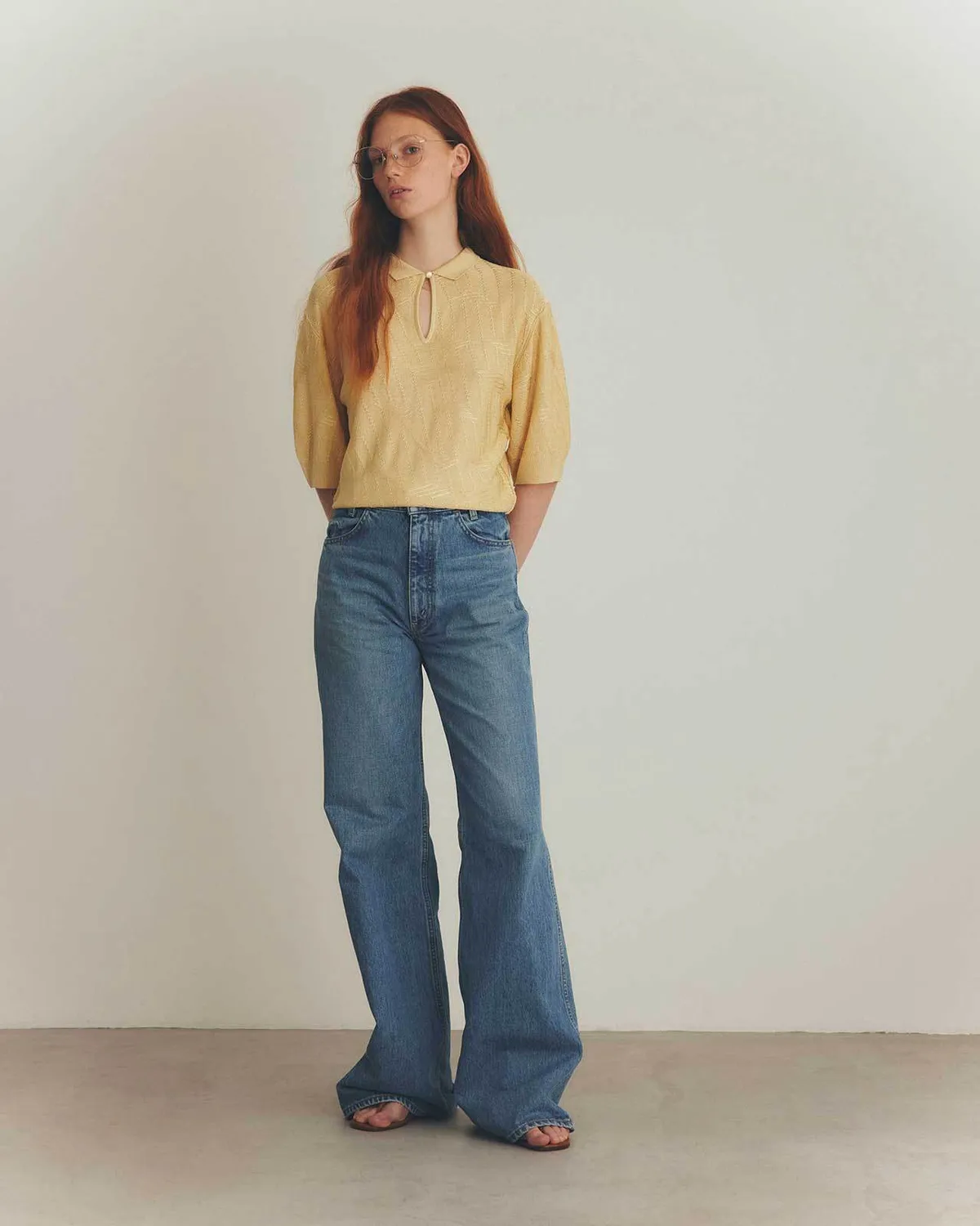 膝蓋到褲管的半寬喇叭褲設計