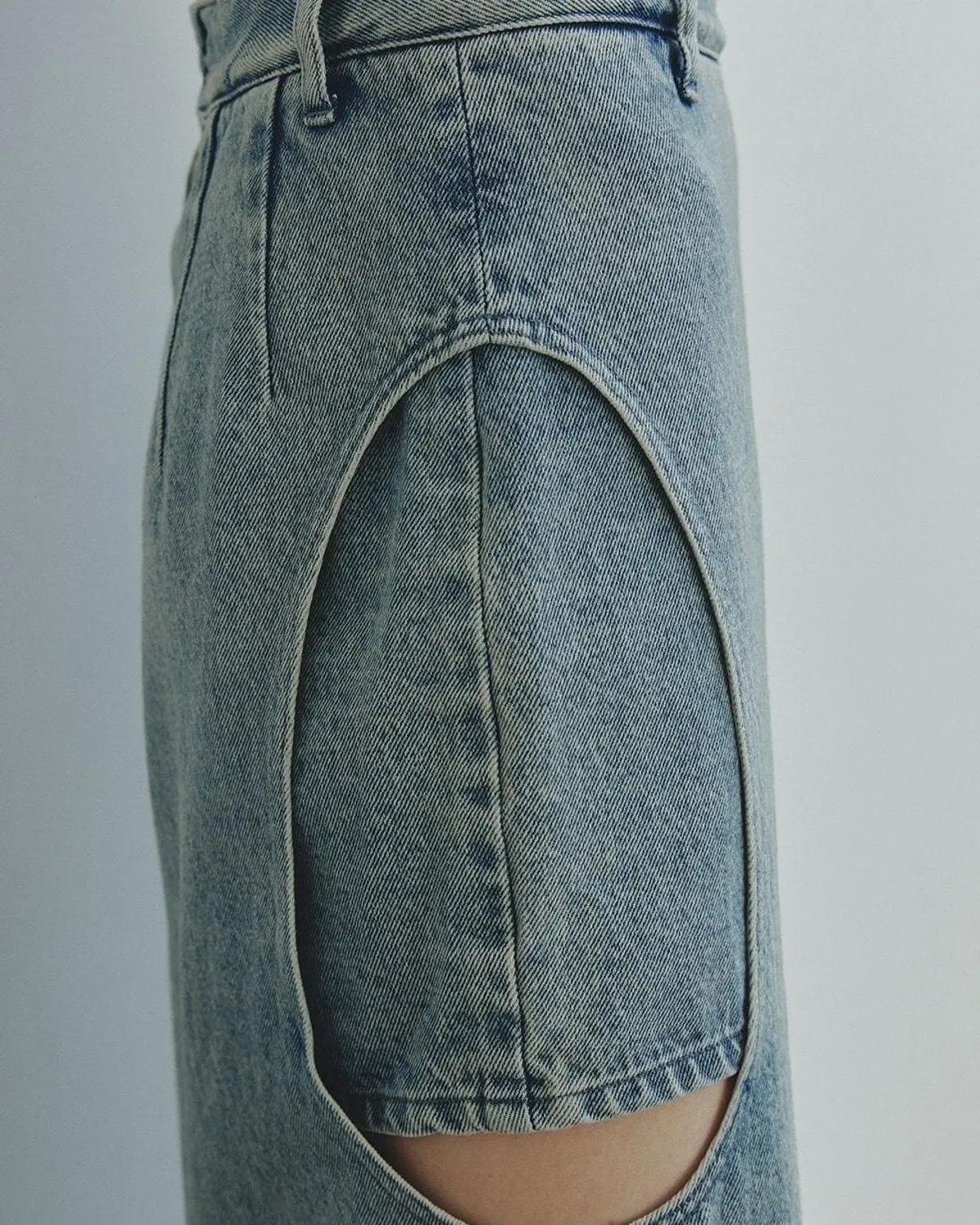 CLANE CIRCLE CUT LAYERED DENIM SKIRT