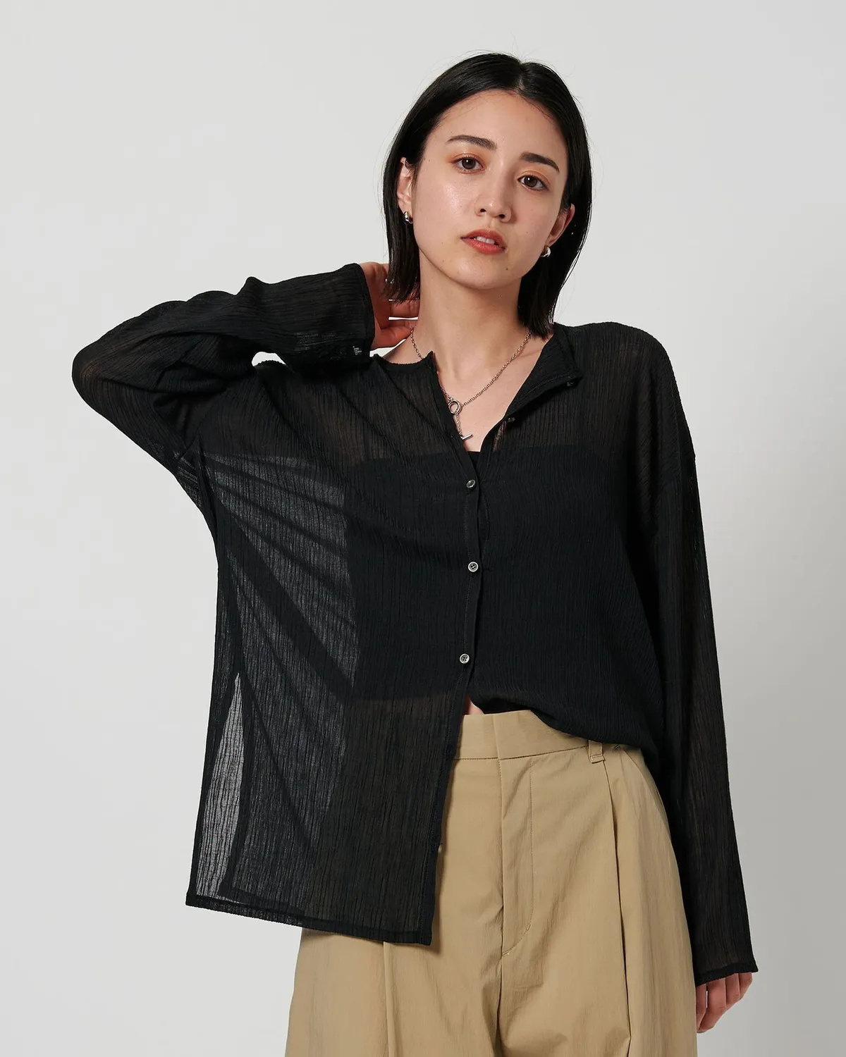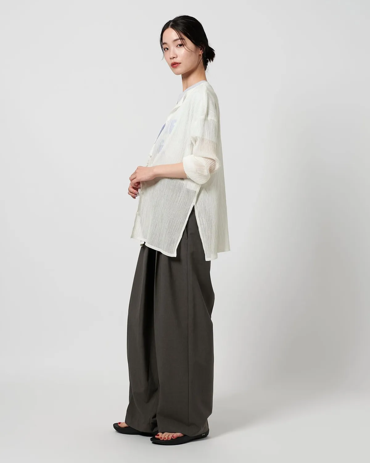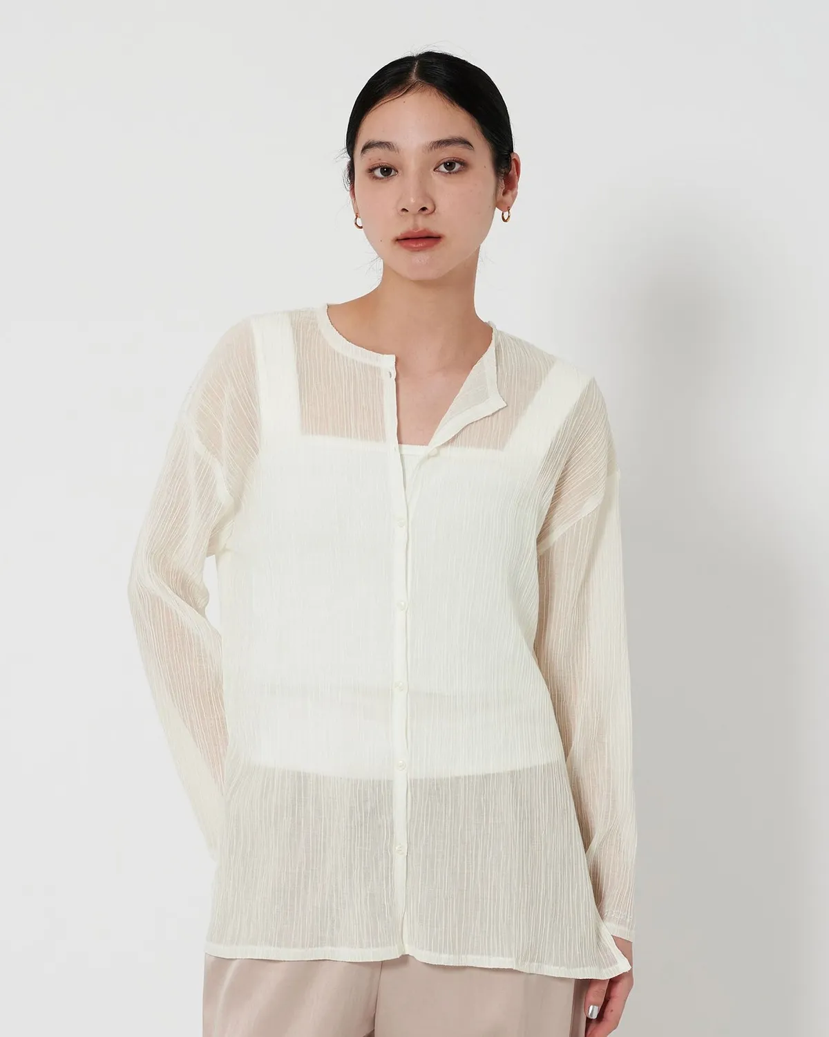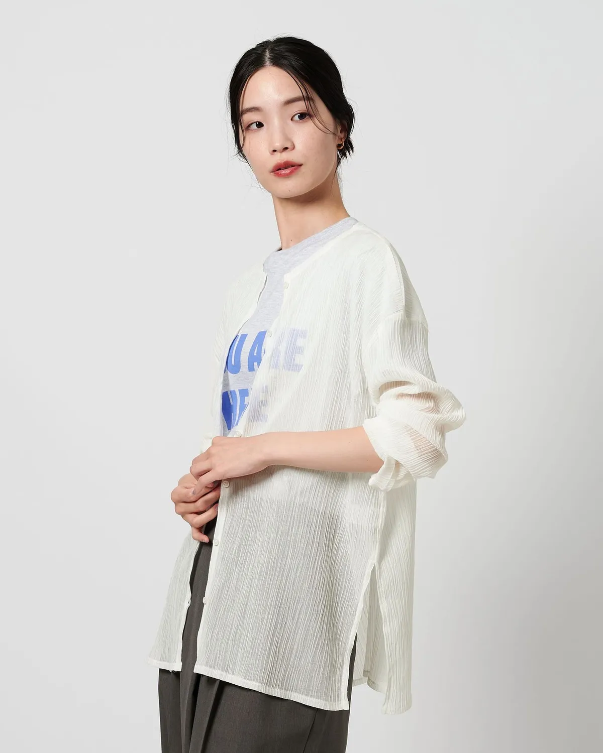 夏季日常必備單品透膚縐布開領襯衫採用有紋理的柳條布料製成手感光滑乾爽,在家手洗也很方便輕盈觸感非常適合炎熱季節單穿或是作為罩衫都可以側邊的深開衩增添了微妙的韻味共四色 / 日本製材質:69%滌綸,31%棉 此商品為預購商品 到貨時間需等待10~21個工作天 不含假日及國定假日 ⚠️急件處理需自行負擔國際運費