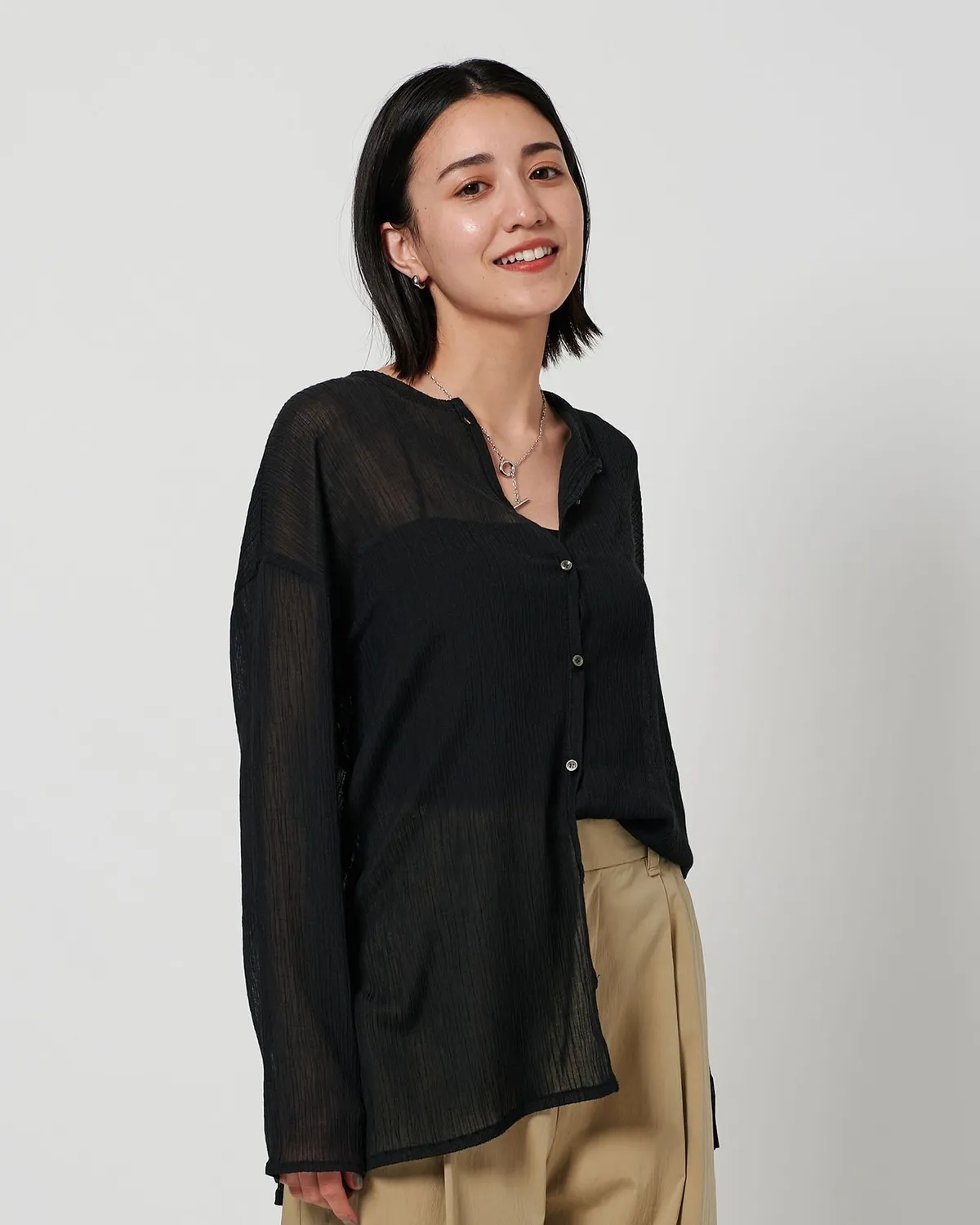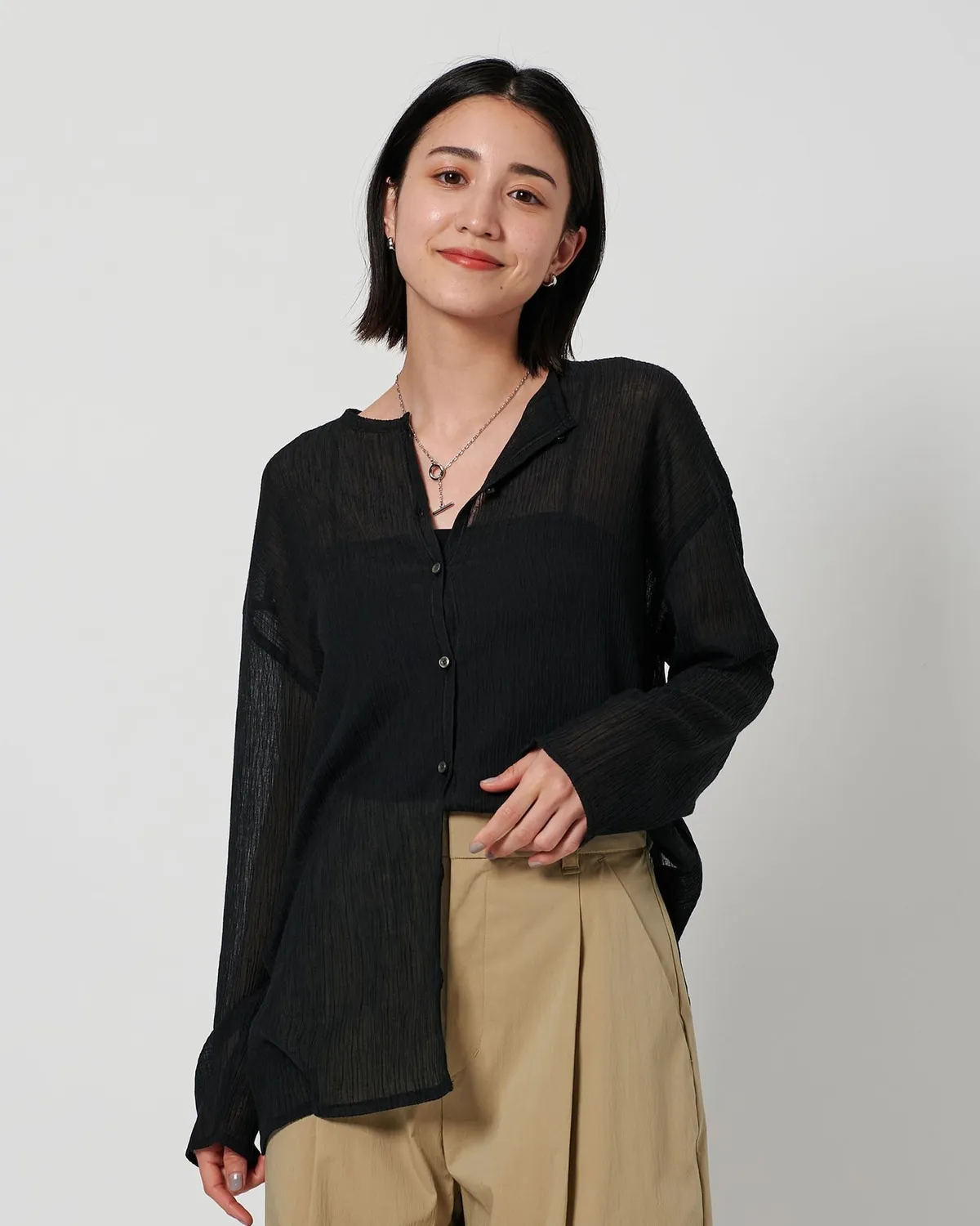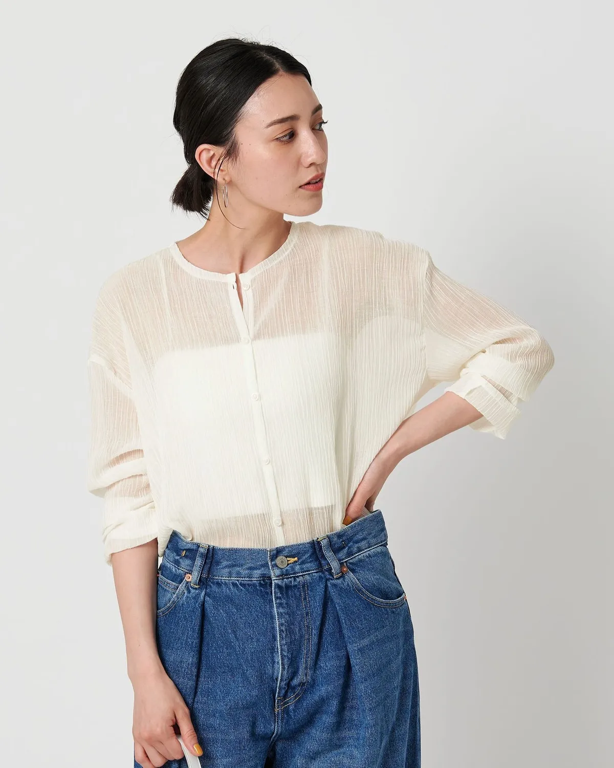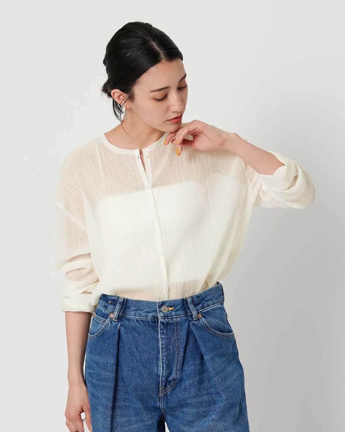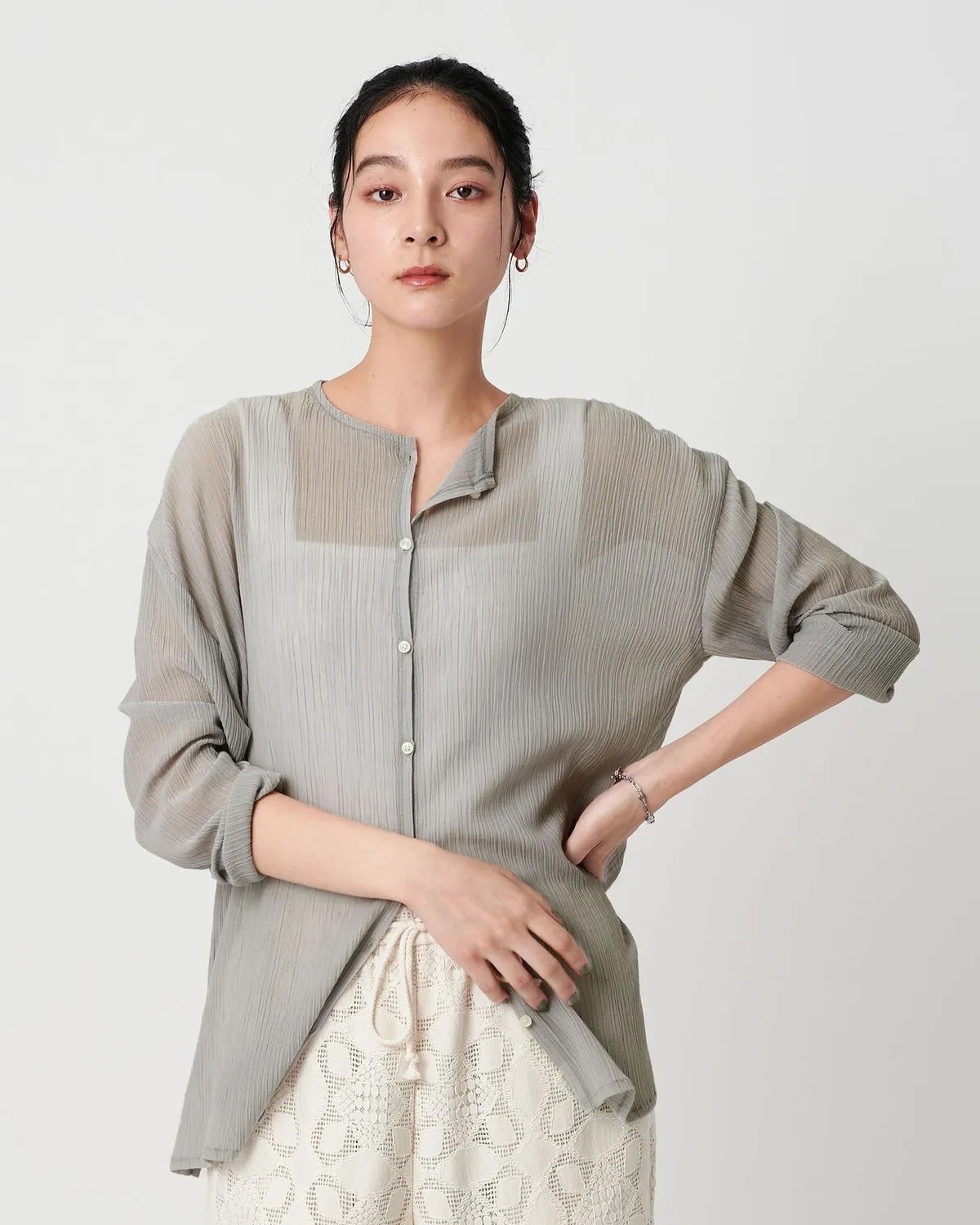 夏季日常必備單品透膚縐布開領襯衫採用有紋理的柳條布料製成手感光滑乾爽,在家手洗也很方便輕盈觸感非常適合炎熱季節單穿或是作為罩衫都可以側邊的深開衩增添了微妙的韻味共四色 / 日本製材質:69%滌綸,31%棉 此商品為預購商品 到貨時間需等待10~21個工作天 不含假日及國定假日 ⚠️急件處理需自行負擔國際運費