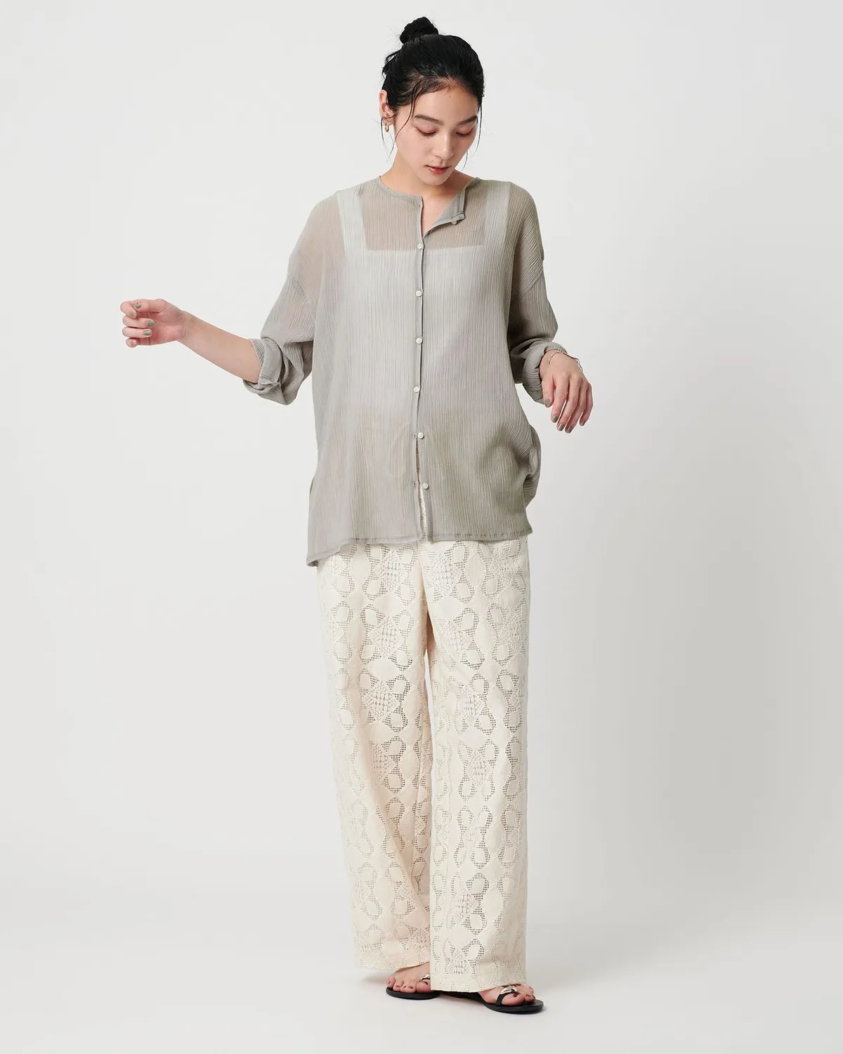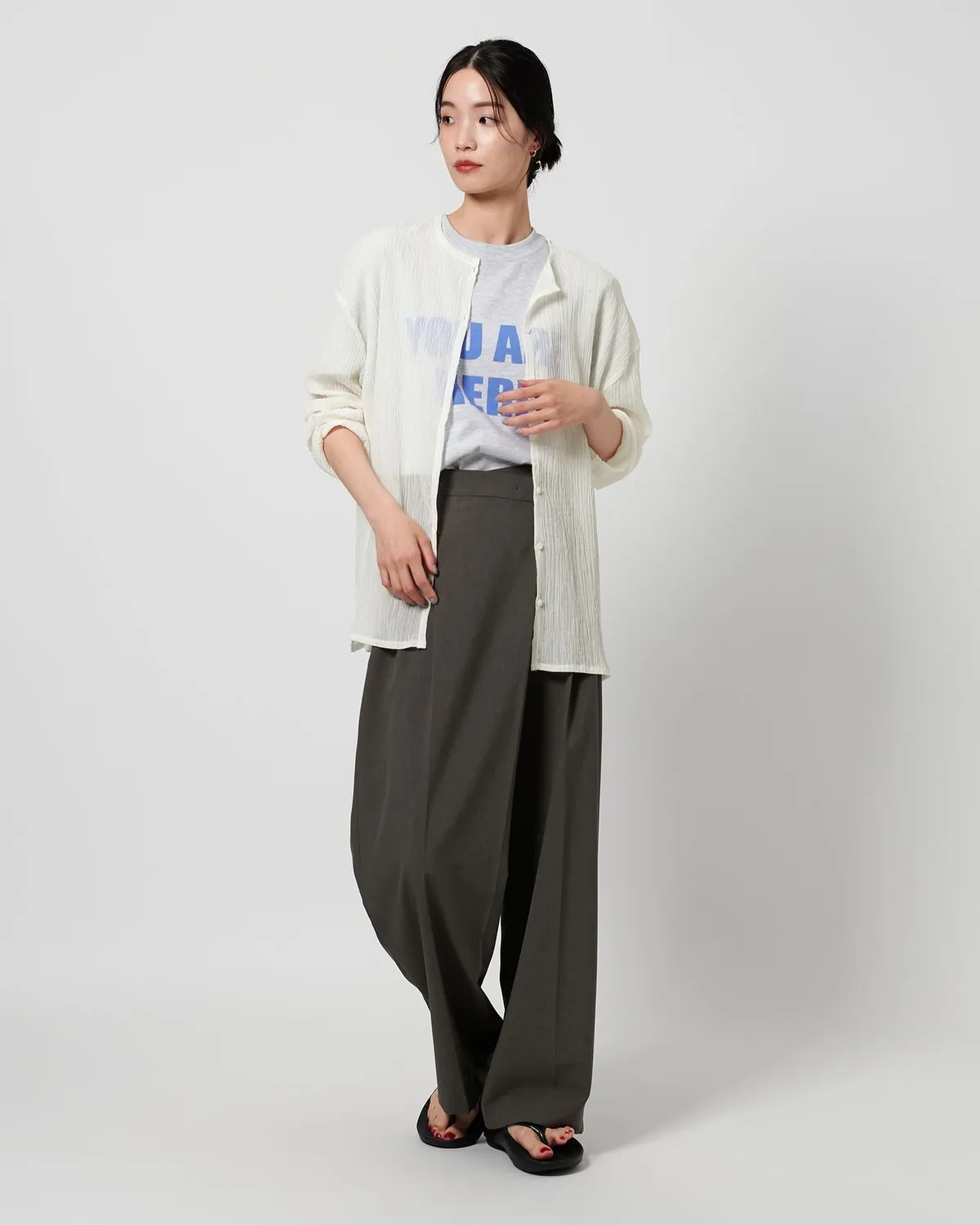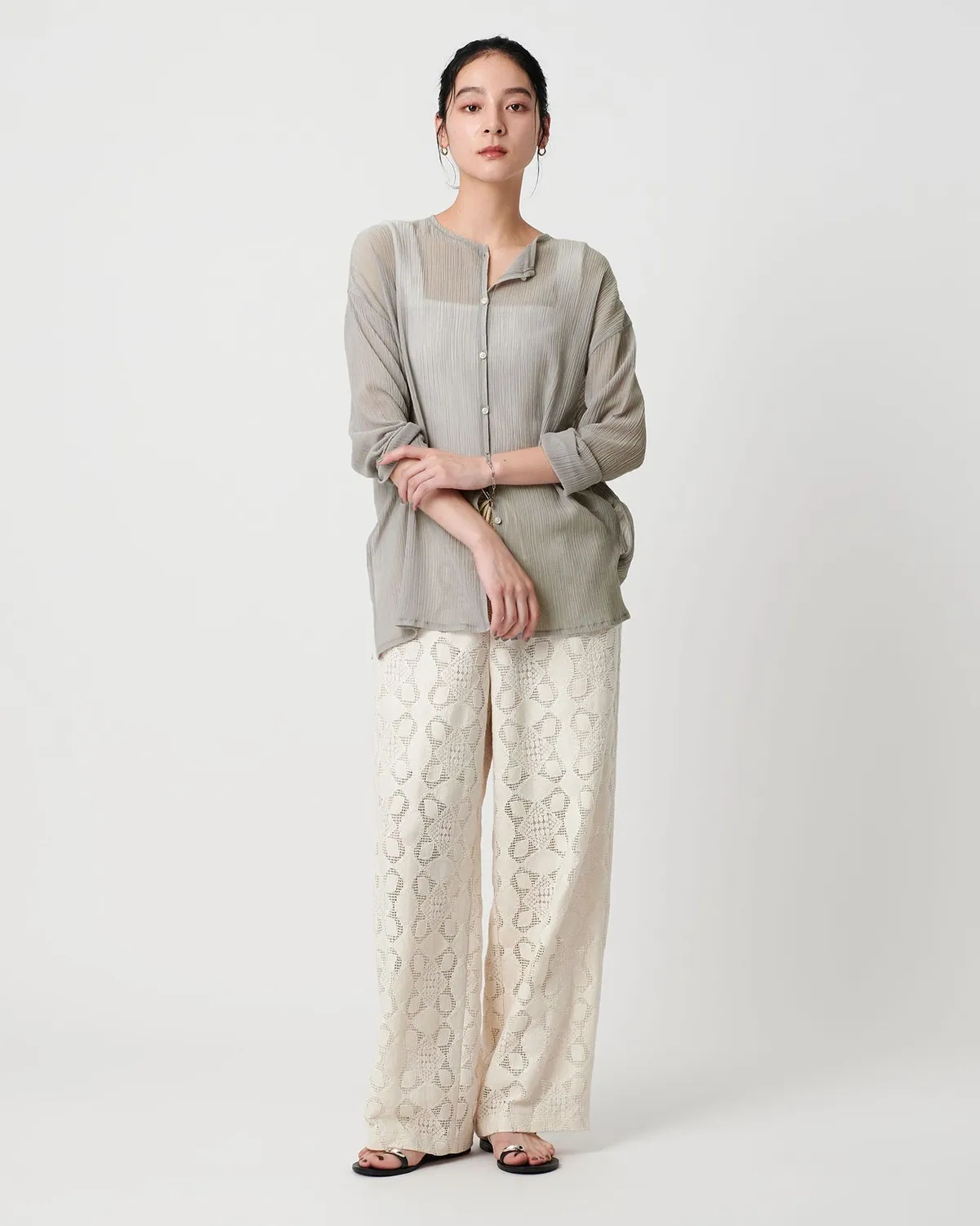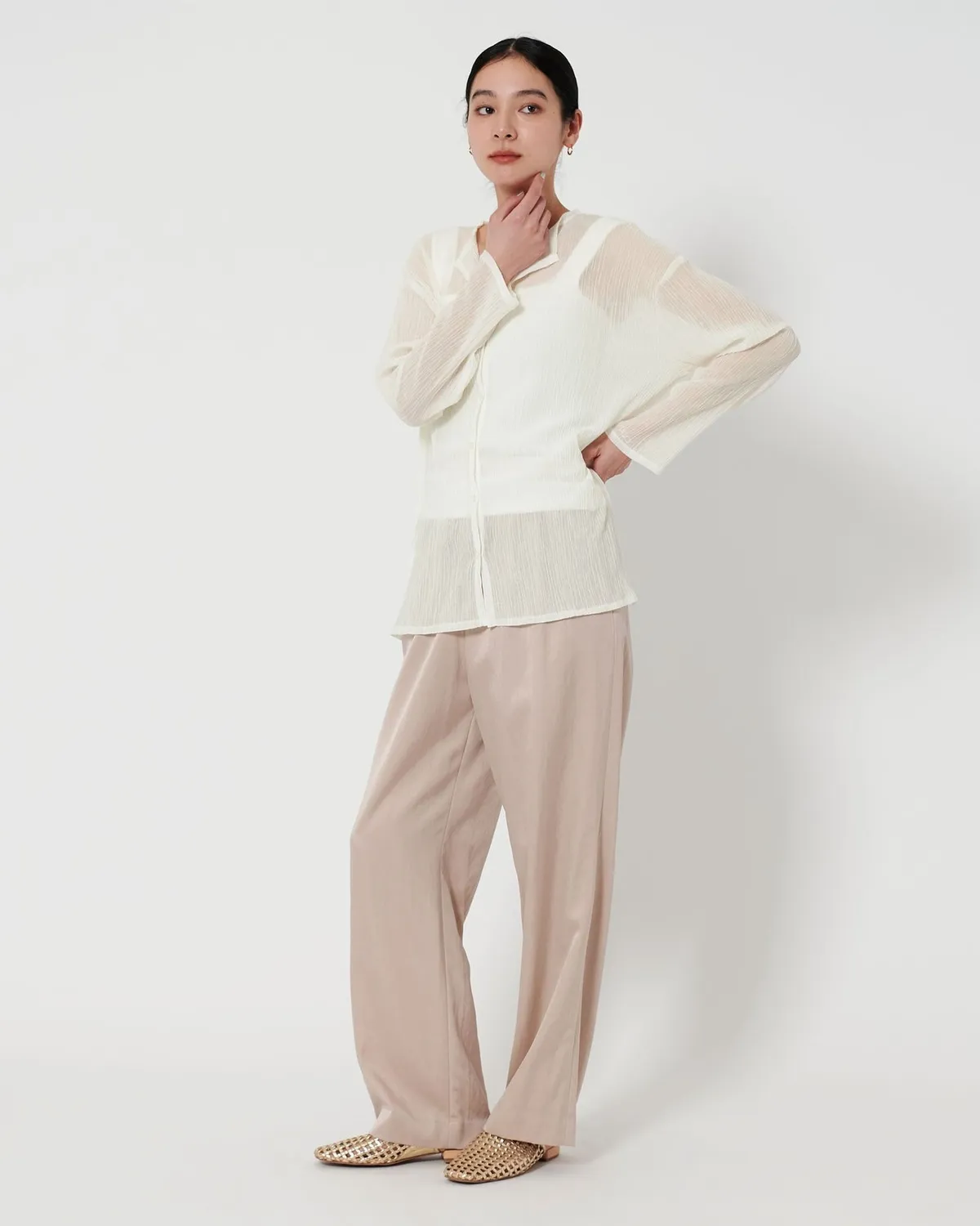 夏季日常必備單品透膚縐布開領襯衫採用有紋理的柳條布料製成手感光滑乾爽,在家手洗也很方便輕盈觸感非常適合炎熱季節單穿或是作為罩衫都可以側邊的深開衩增添了微妙的韻味共四色 / 日本製材質:69%滌綸,31%棉 此商品為預購商品 到貨時間需等待10~21個工作天 不含假日及國定假日 ⚠️急件處理需自行負擔國際運費