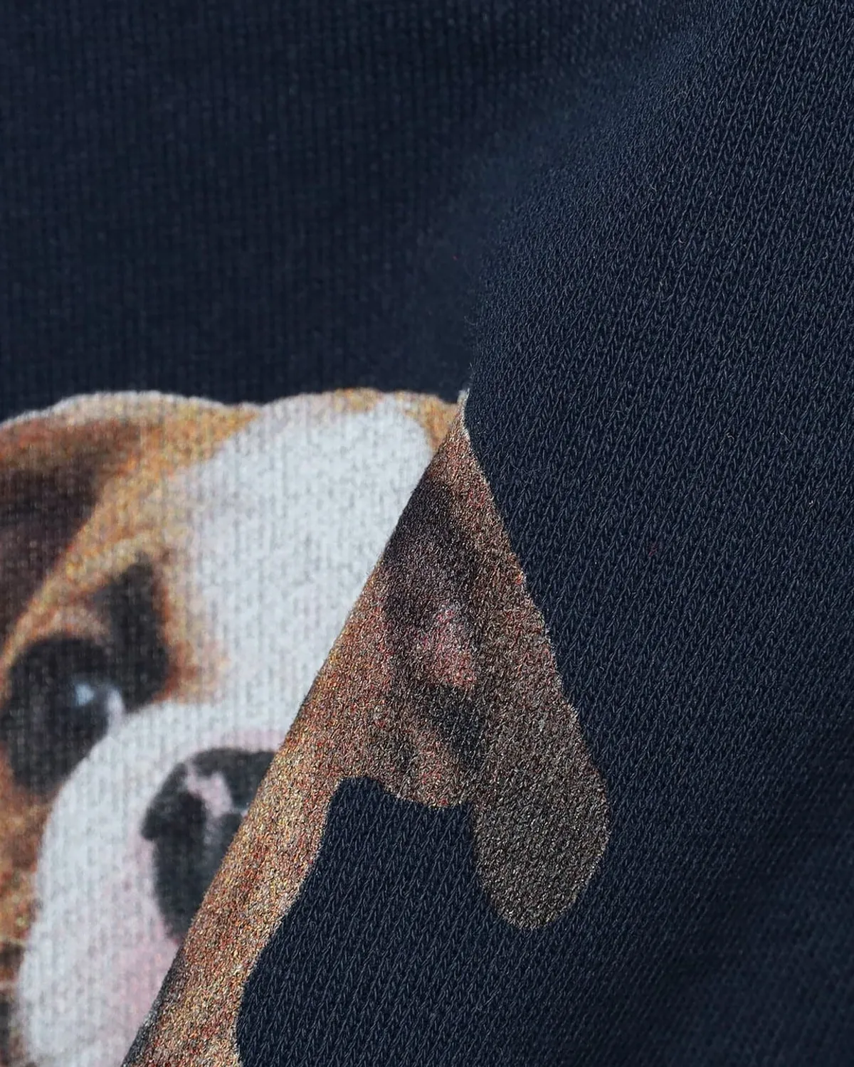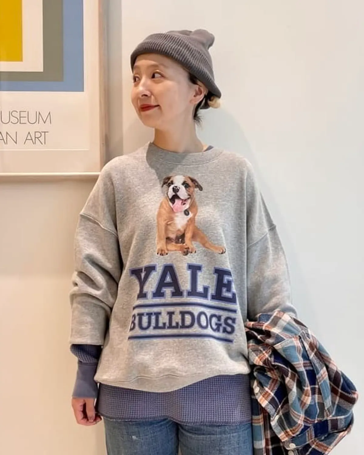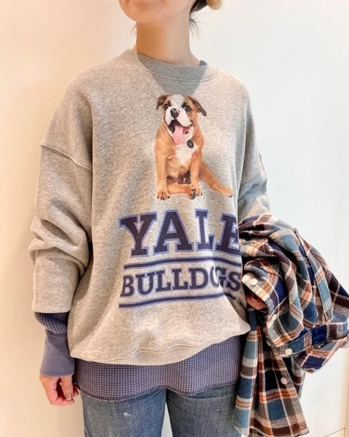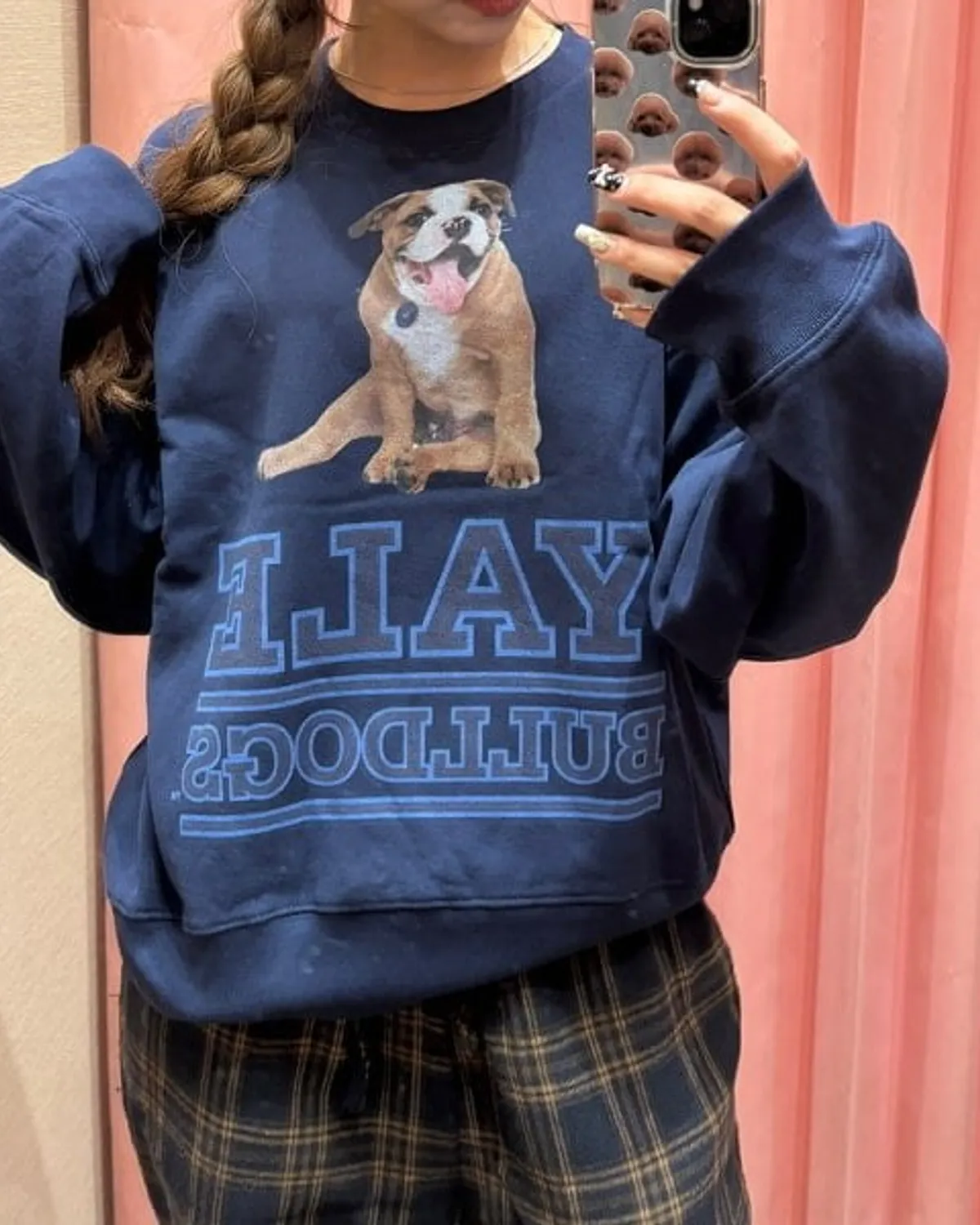 鬥牛犬印花圖案可愛又時髦這款學院風運動衫採用短版寬鬆尺寸恰到好處的厚度和柔軟的材質一年四季都穿著舒適尺寸(cm):衣長 58 / 肩寬 56.5 / 衣寬 56.5 / 袖長 55.5材質:100% 純棉