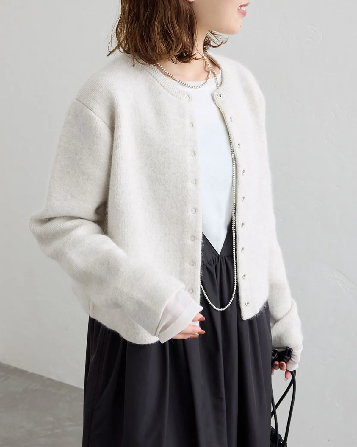 SLOBE IENA 可手洗雙面針織外套日常方便穿搭的一件單品,穿起來非常溫暖圓領扣式設計穿脫方便,也能防止頭髮黏在內層雙面針織布料,衣服有蓬鬆柔美的感覺微合身的短版尺寸很好搭配,尤其搭配連身裙特別可愛!材質:36%聚酯纖維, 20%尼龍, 18%人造絲, 13%安哥拉羊毛, 8%羊毛, 5%貉毛 此商品為預購商品 到貨時間需等待14~21個工作天 不含假日及國定假日 ⚠️急件處理需自行負擔國際運費