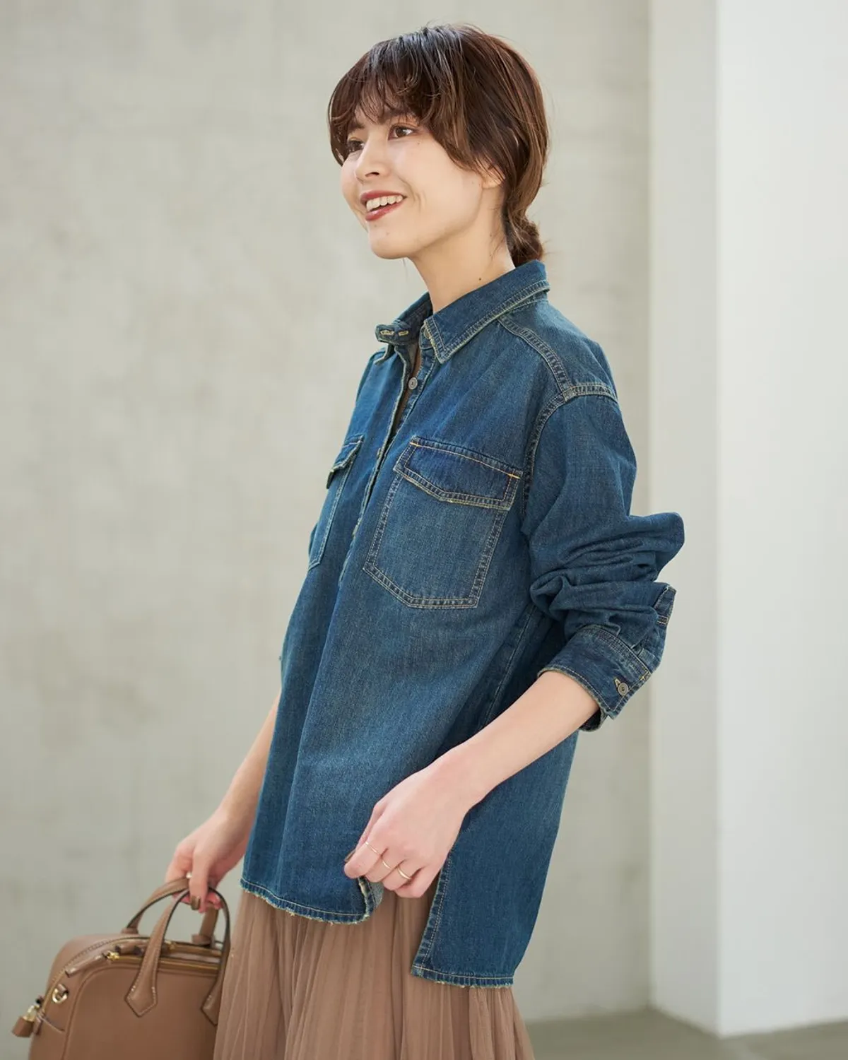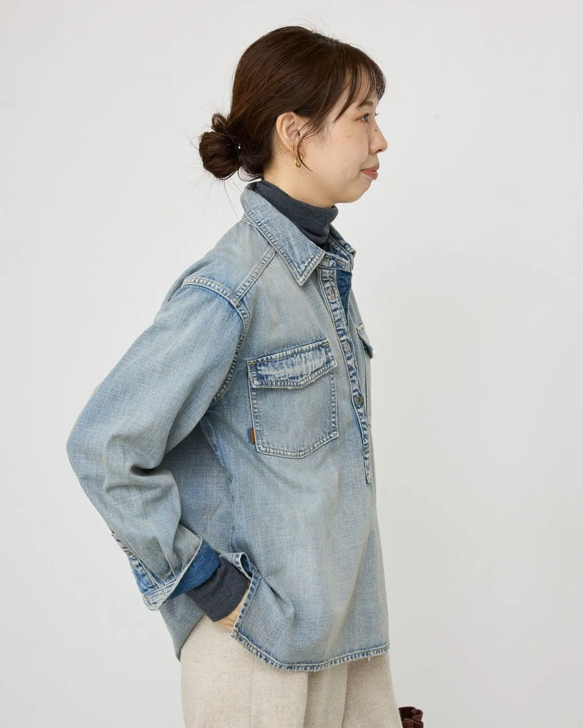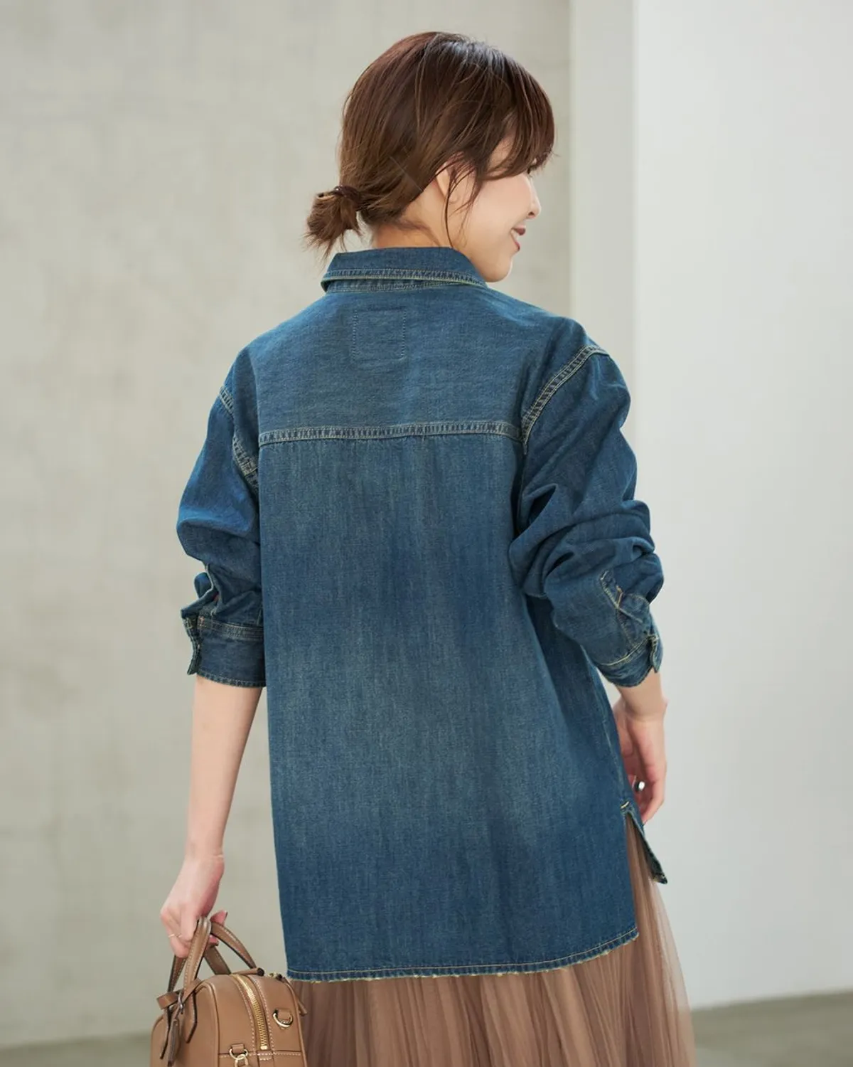 Spick & Span 原創牛仔系列「5 1/2 (FIVE AND HALF)」全新回歸!時隔三年,系列再次推出復古染色工藝的經典之作。這款襯衫採用 7.5 盎司輕盈牛仔布製成經過預處理後採用復古染色工藝呈現出深邃濃鬱的復古色澤輕盈柔軟的布料確保肩部穿著舒適、尺寸精準既不會過於寬鬆也不會過於緊身,完美勾勒出優美的身形雙口袋設計增添了一絲不羈的硬朗氣息露出鎖骨,營造出休閒隨性的風格,更顯女性柔美這款單品既適合牛仔愛好者,也適合追求舒適穿著體驗的人材質:100% 棉 此商品為預購商品 到貨時間需等待10~21個工作天 不含假日及國定假日 ⚠️急件處理需自行負擔國際運費