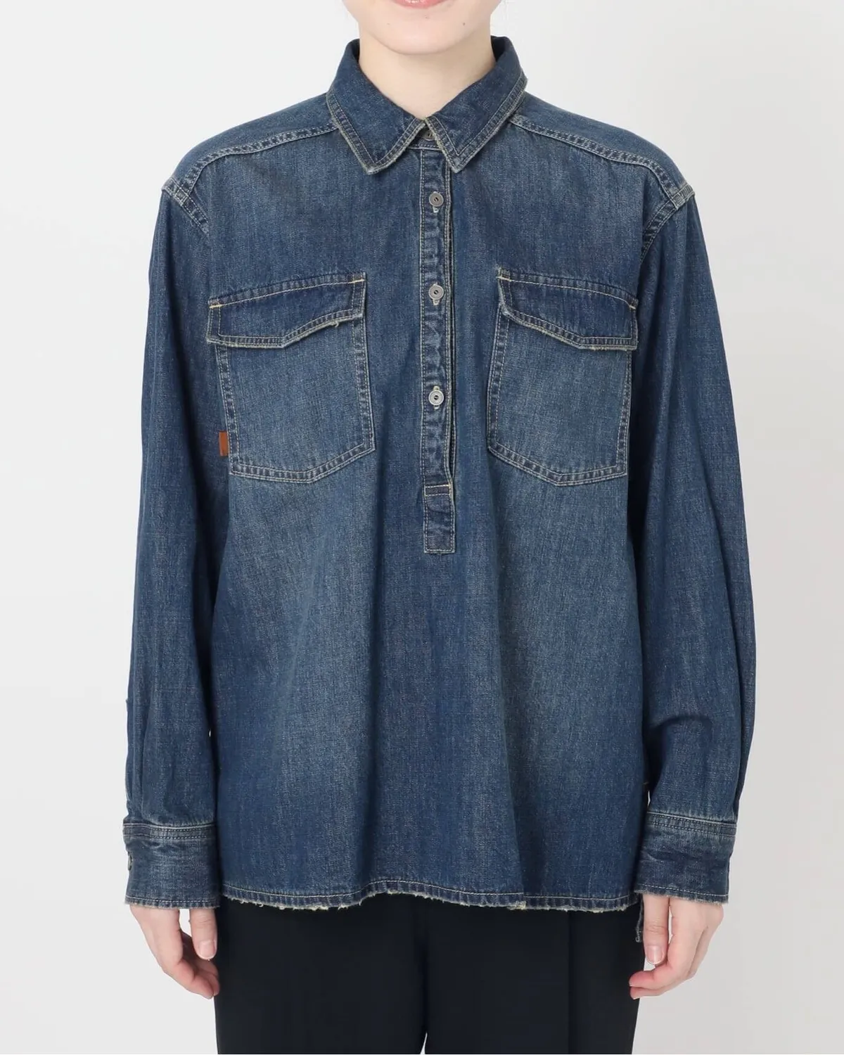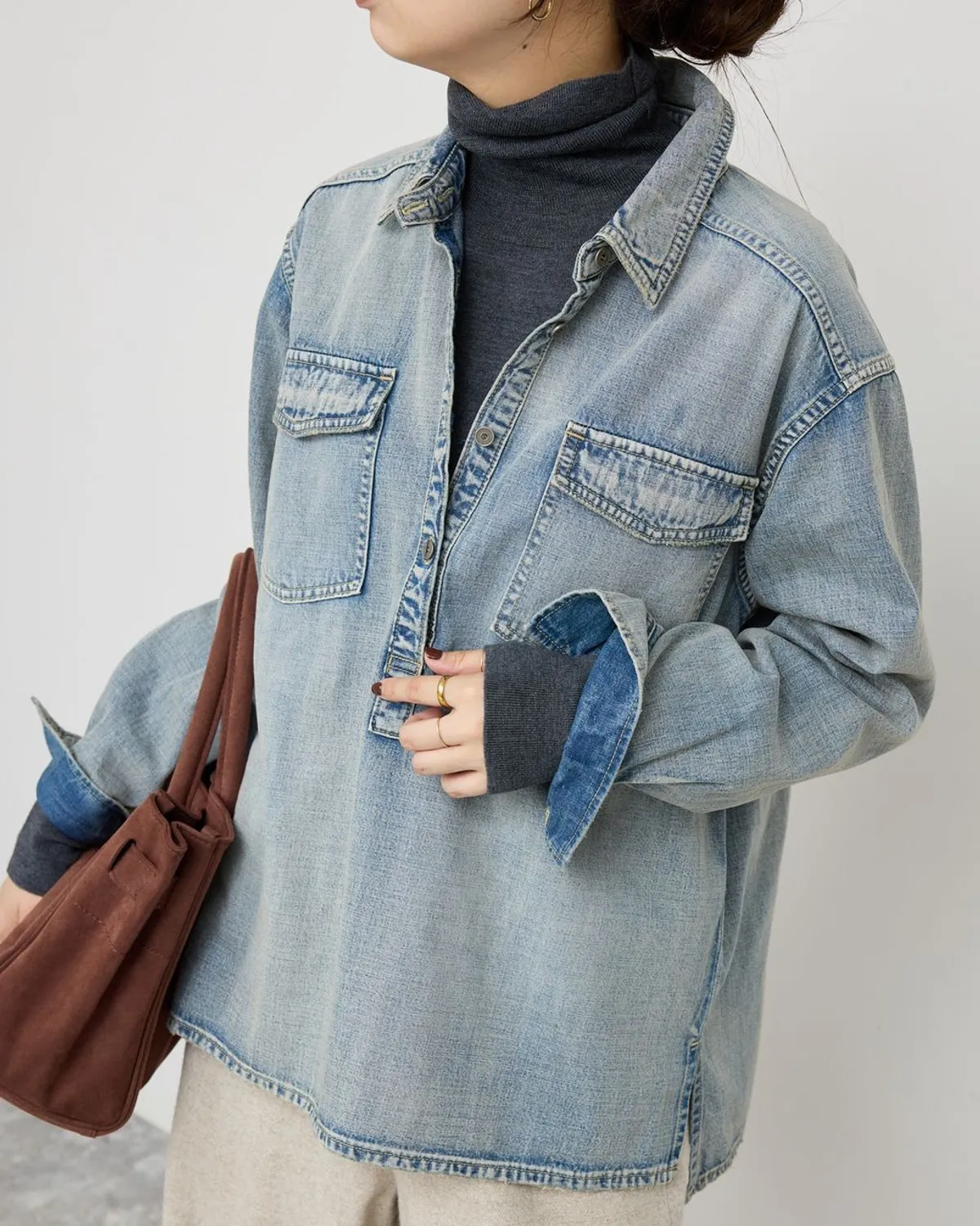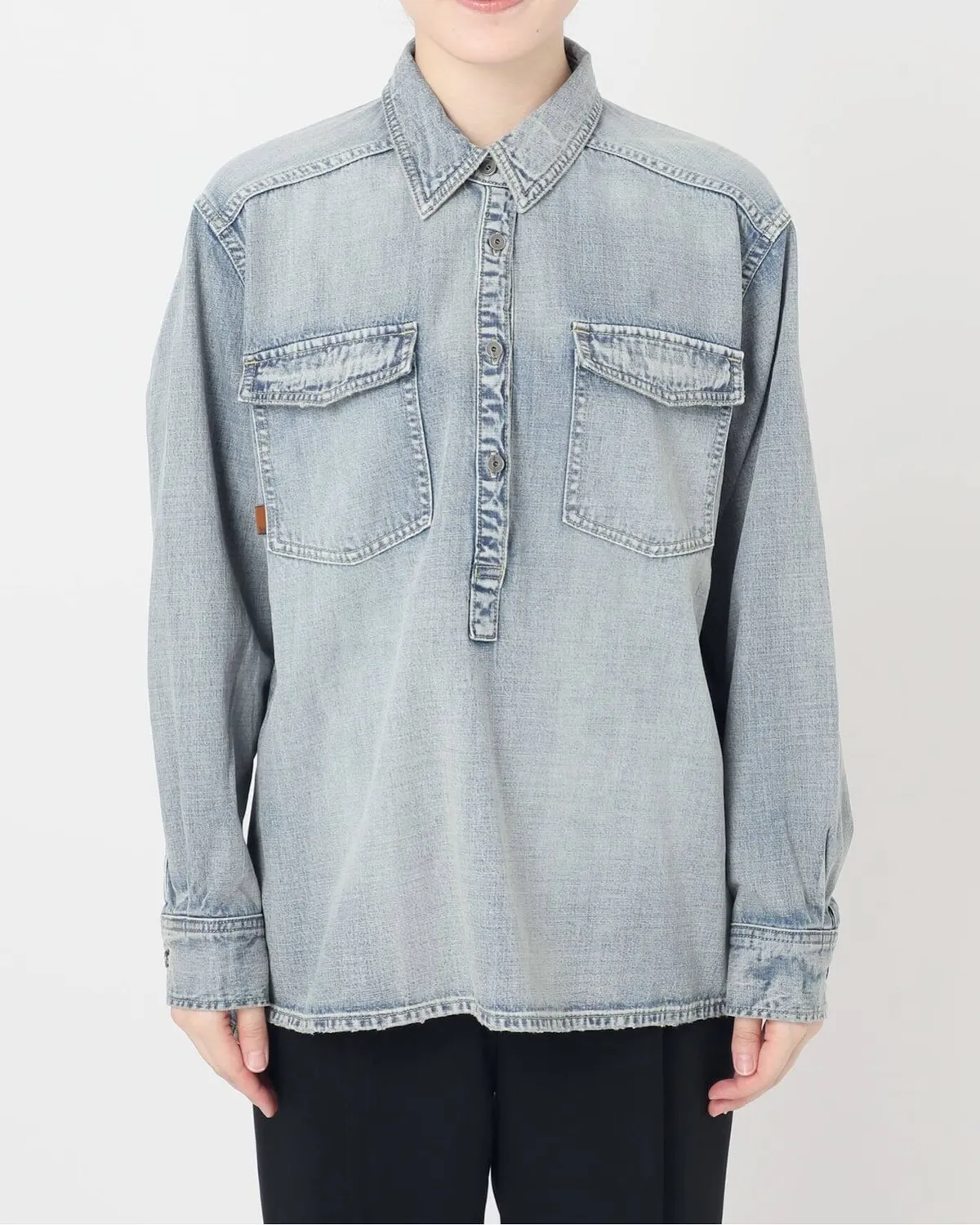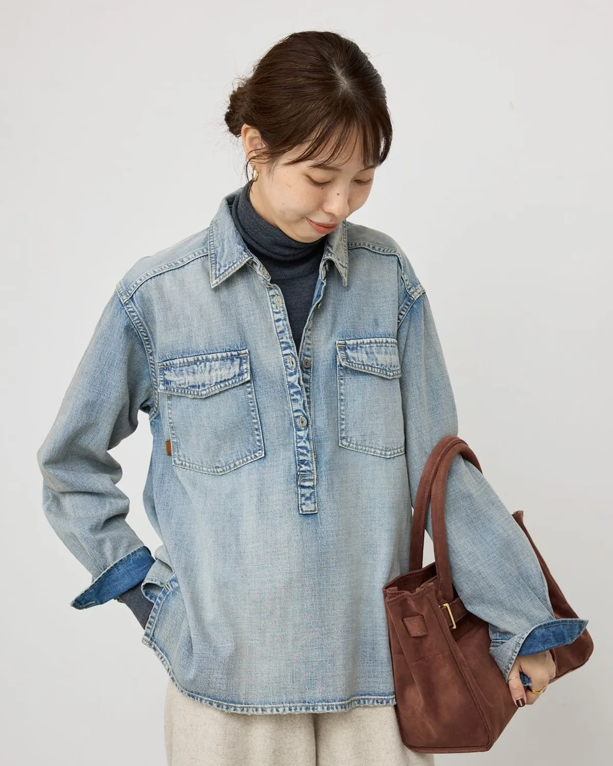 Spick & Span 原創牛仔系列「5 1/2 (FIVE AND HALF)」全新回歸!時隔三年,系列再次推出復古染色工藝的經典之作。這款襯衫採用 7.5 盎司輕盈牛仔布製成經過預處理後採用復古染色工藝呈現出深邃濃鬱的復古色澤輕盈柔軟的布料確保肩部穿著舒適、尺寸精準既不會過於寬鬆也不會過於緊身,完美勾勒出優美的身形雙口袋設計增添了一絲不羈的硬朗氣息露出鎖骨,營造出休閒隨性的風格,更顯女性柔美這款單品既適合牛仔愛好者,也適合追求舒適穿著體驗的人材質:100% 棉 此商品為預購商品 到貨時間需等待10~21個工作天 不含假日及國定假日 ⚠️急件處理需自行負擔國際運費