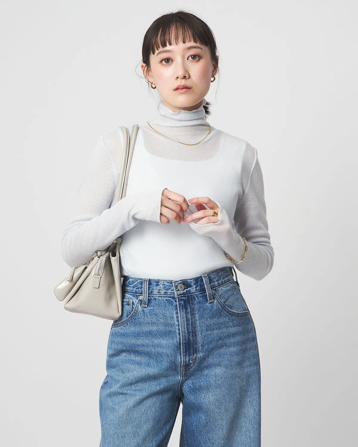 以層疊式風格活躍的高領針織衫。 與運動衫或襯衫疊穿時成爲亮點的領口或袖子下襬的金屬處理是亮點 恰到好處地貼身的線條演繹出女性化的着裝 簡約且使用方便的上衣 材質:再生纖維51%、腈綸28%、毛21% 使用毛混紡材質 輕柔觸感,手感柔和 此商品為預購商品 到貨時間需等待14~21個工作天 含假日及國定假日 ⚠️急件處理需自行負擔國際運費