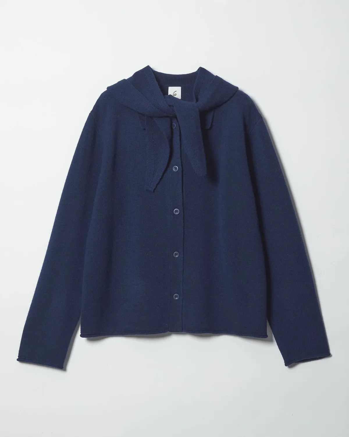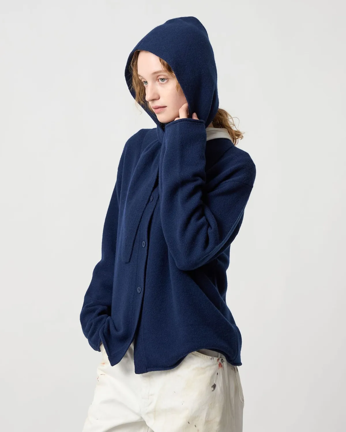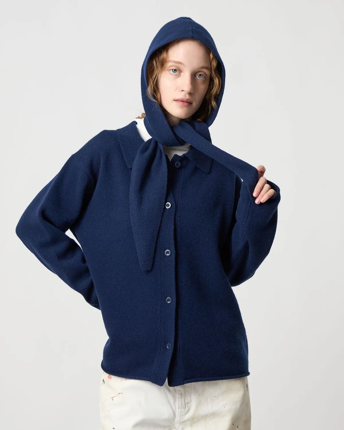 這款柔軟的翻領開襟衫採用羊毛紗線製成並帶有微妙的絨面質感,實品很好看!附的連帽可以當帽子戴或是當披肩使用針織外套版型略微寬鬆,穿著舒適自在是寒冷天氣到來前疊穿的理想之選這款百搭單品有低調的靛藍算和淺灰色兩種顏色材質:100%羊毛 此商品為預購商品 到貨時間需等待14~21個工作天 含假日及國定假日 ⚠️急件處理需自行負擔國際運費