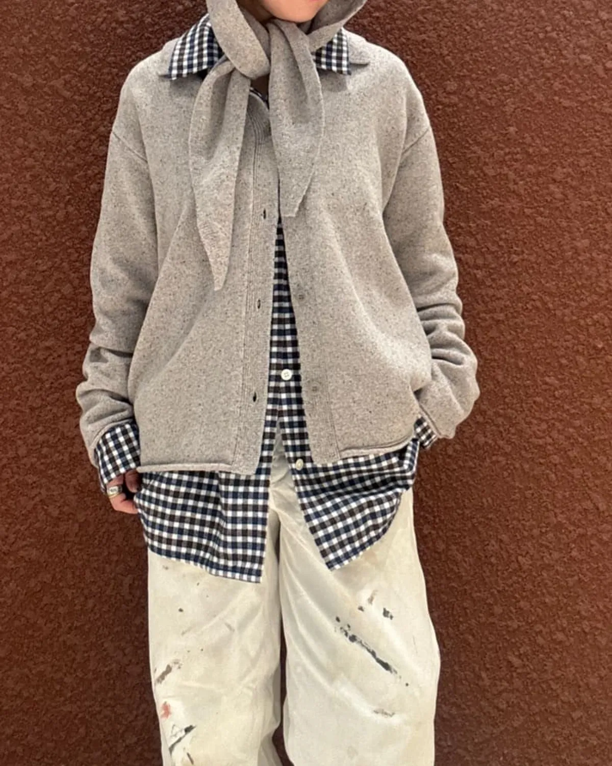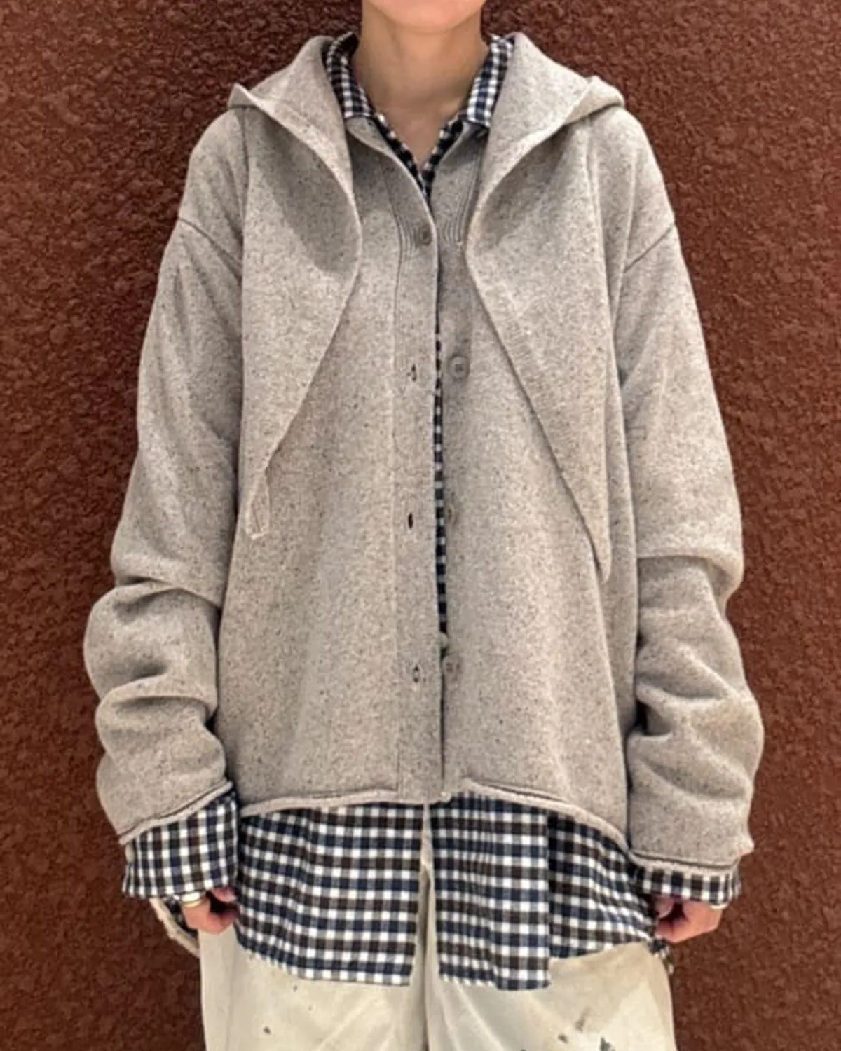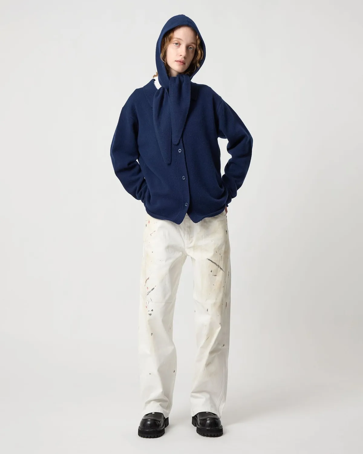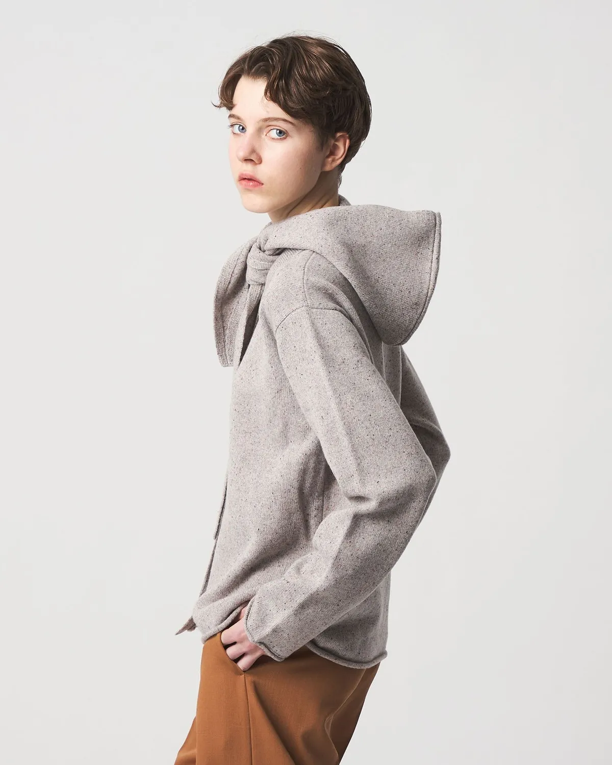 這款柔軟的翻領開襟衫採用羊毛紗線製成並帶有微妙的絨面質感,實品很好看!附的連帽可以當帽子戴或是當披肩使用針織外套版型略微寬鬆,穿著舒適自在是寒冷天氣到來前疊穿的理想之選這款百搭單品有低調的靛藍算和淺灰色兩種顏色材質:100%羊毛 此商品為預購商品 到貨時間需等待14~21個工作天 含假日及國定假日 ⚠️急件處理需自行負擔國際運費