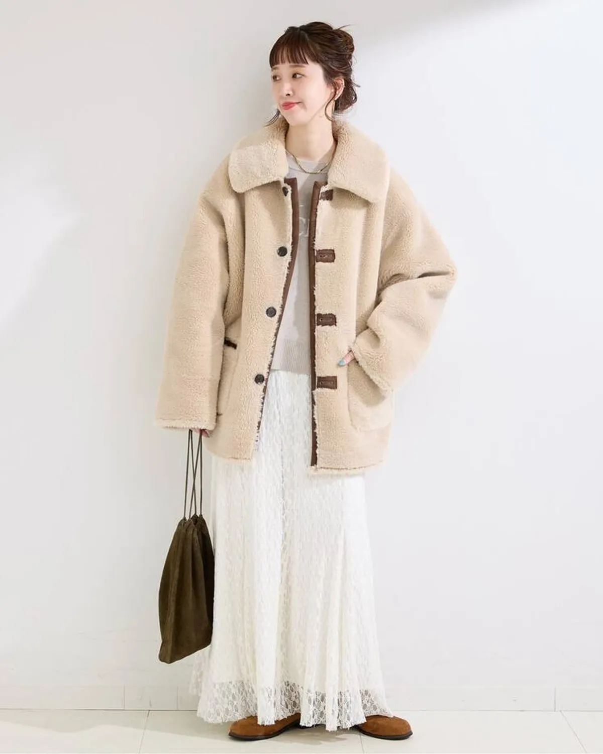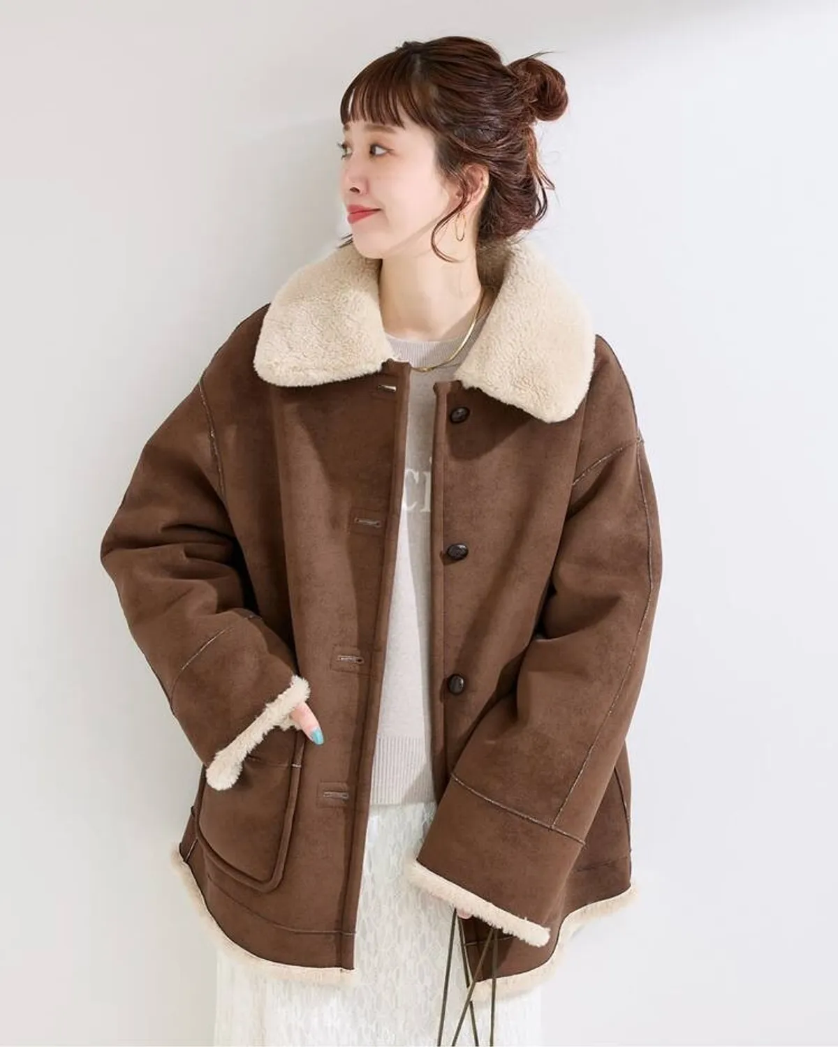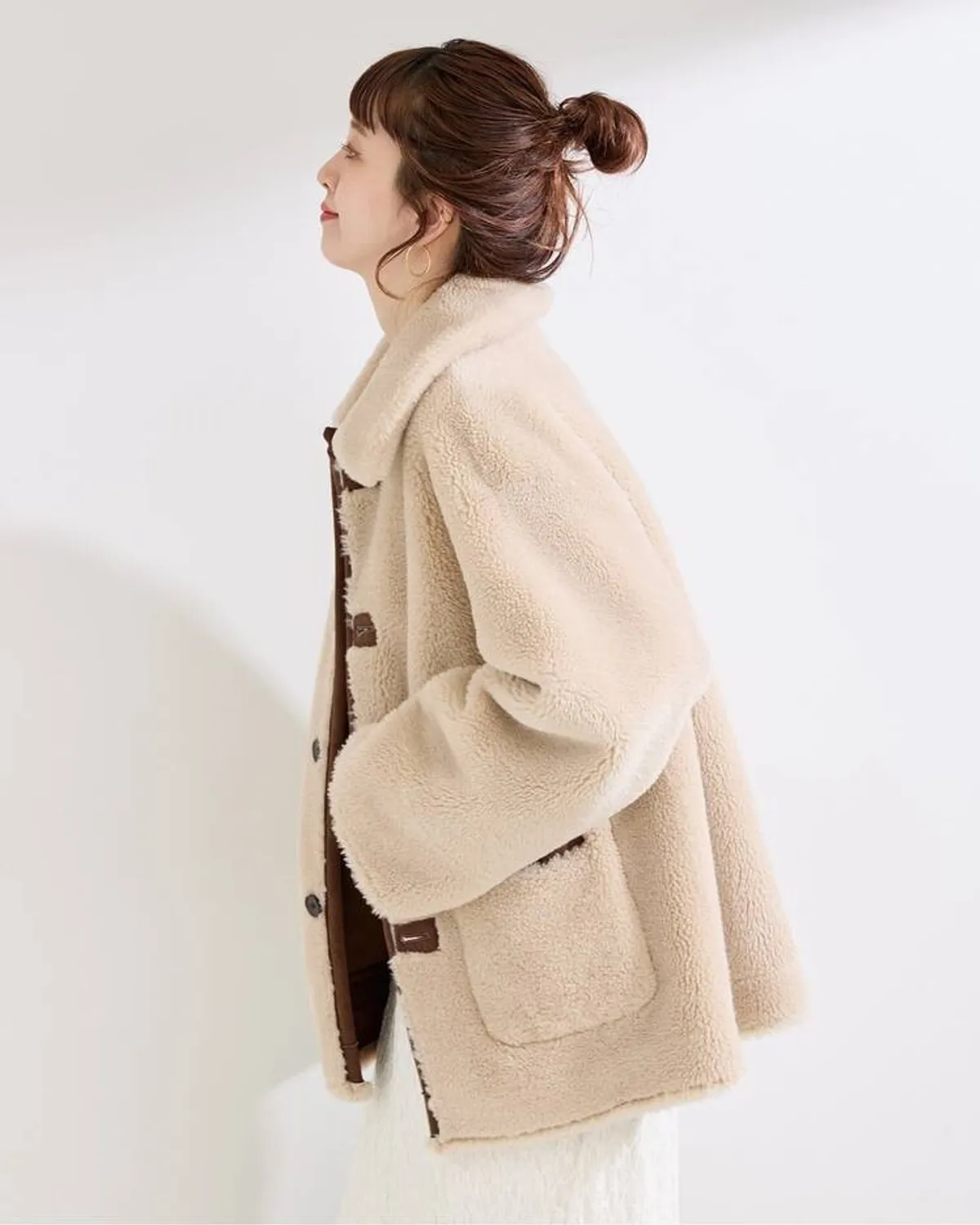 這款雙面羊毛絨大衣可變換多種穿搭方式