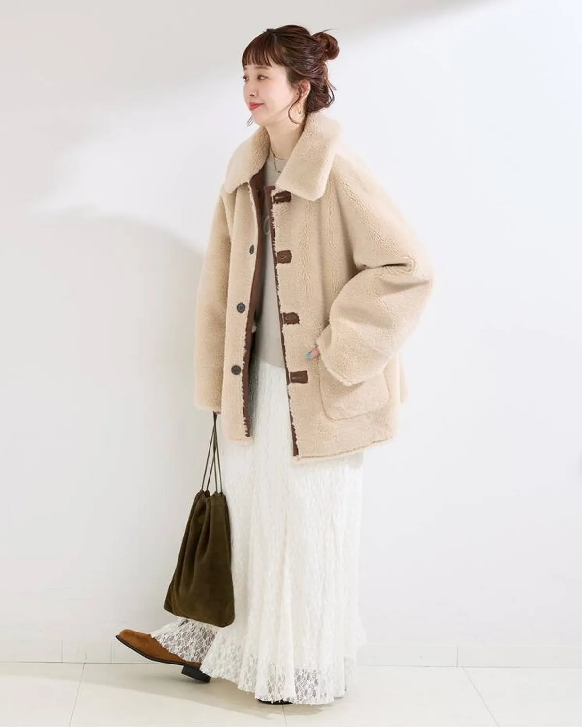 而羊毛絨布料則增添女性柔美氣質