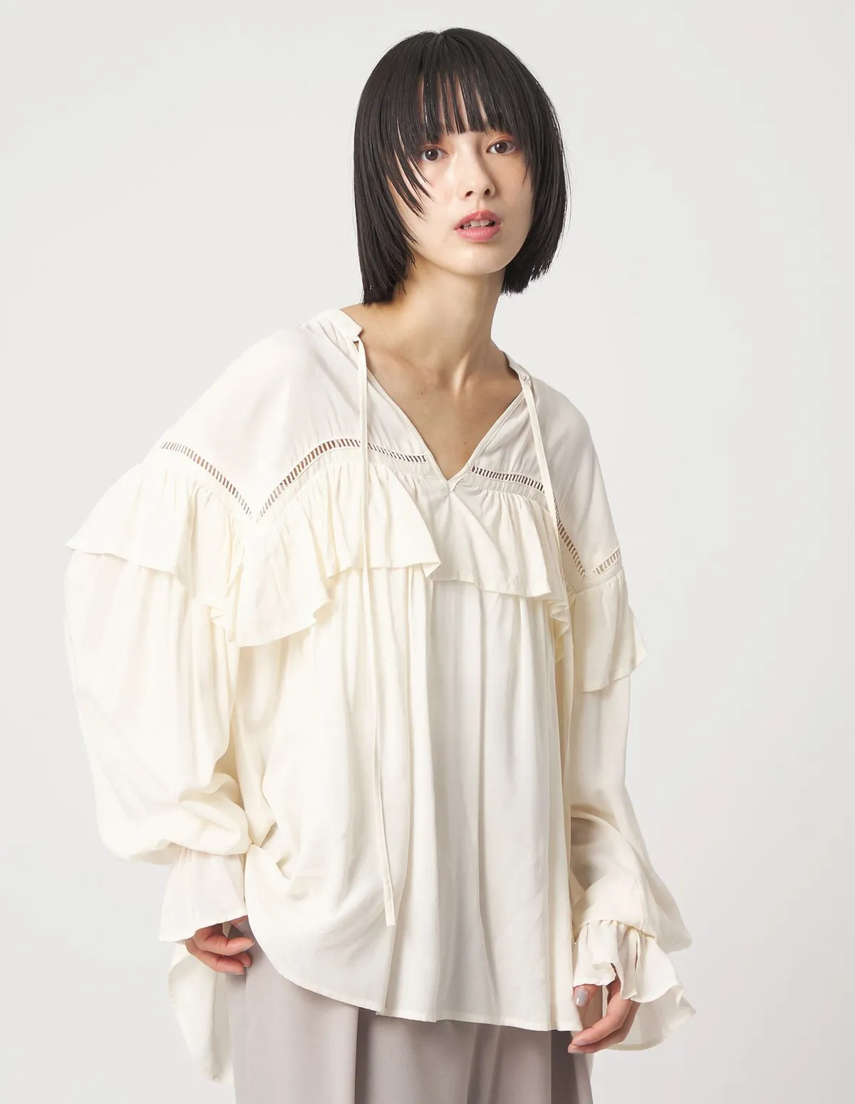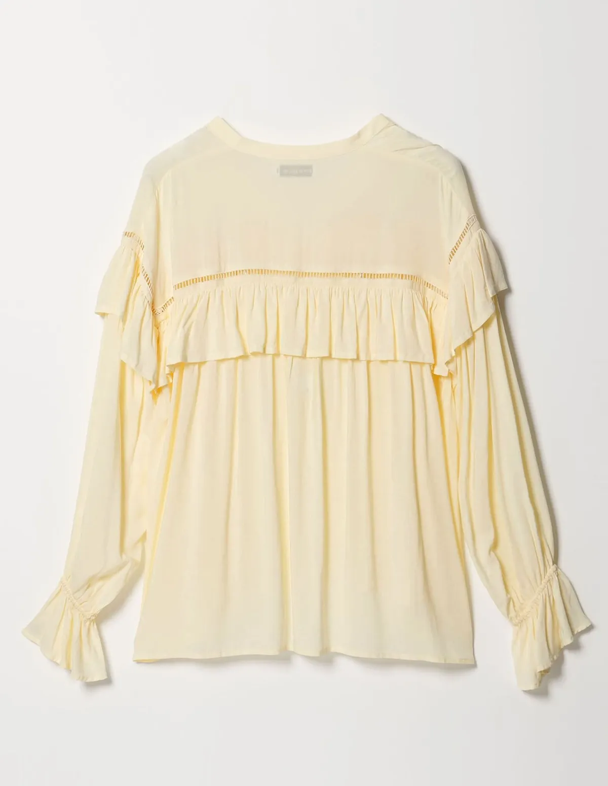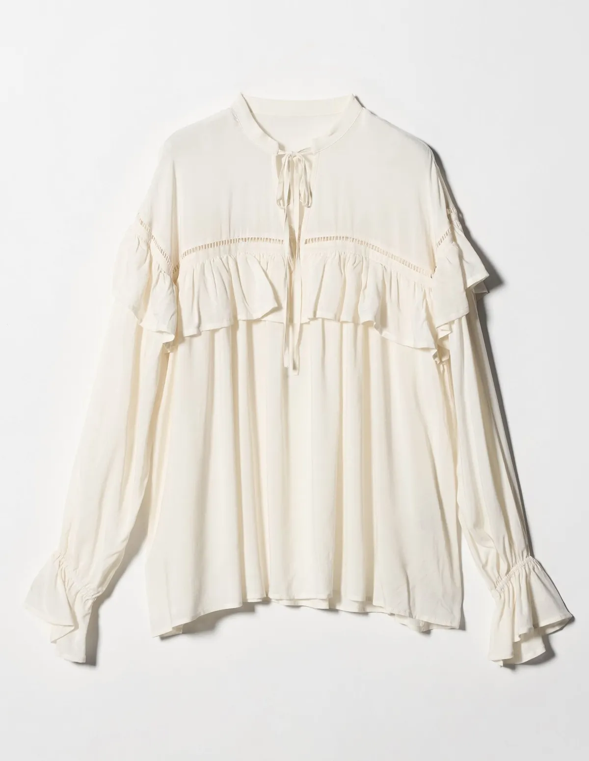 這款襯衫飾有梯形蕾絲和荷葉邊肩部線條簡潔,從胸部到下擺逐漸展開打造出迷人的造型採用柔軟飄逸的布料,穿著舒適自在設計中加入了大量的褶襉設計但布料本身的垂墜感使其不會顯得臃腫穿起來非常輕鬆又很自在材質:100% 人造絲蕾絲:100% 棉 此商品為預購商品 到貨時間需等待14~21個工作天 含假日及國定假日 ⚠️急件處理需自行負擔國際運費