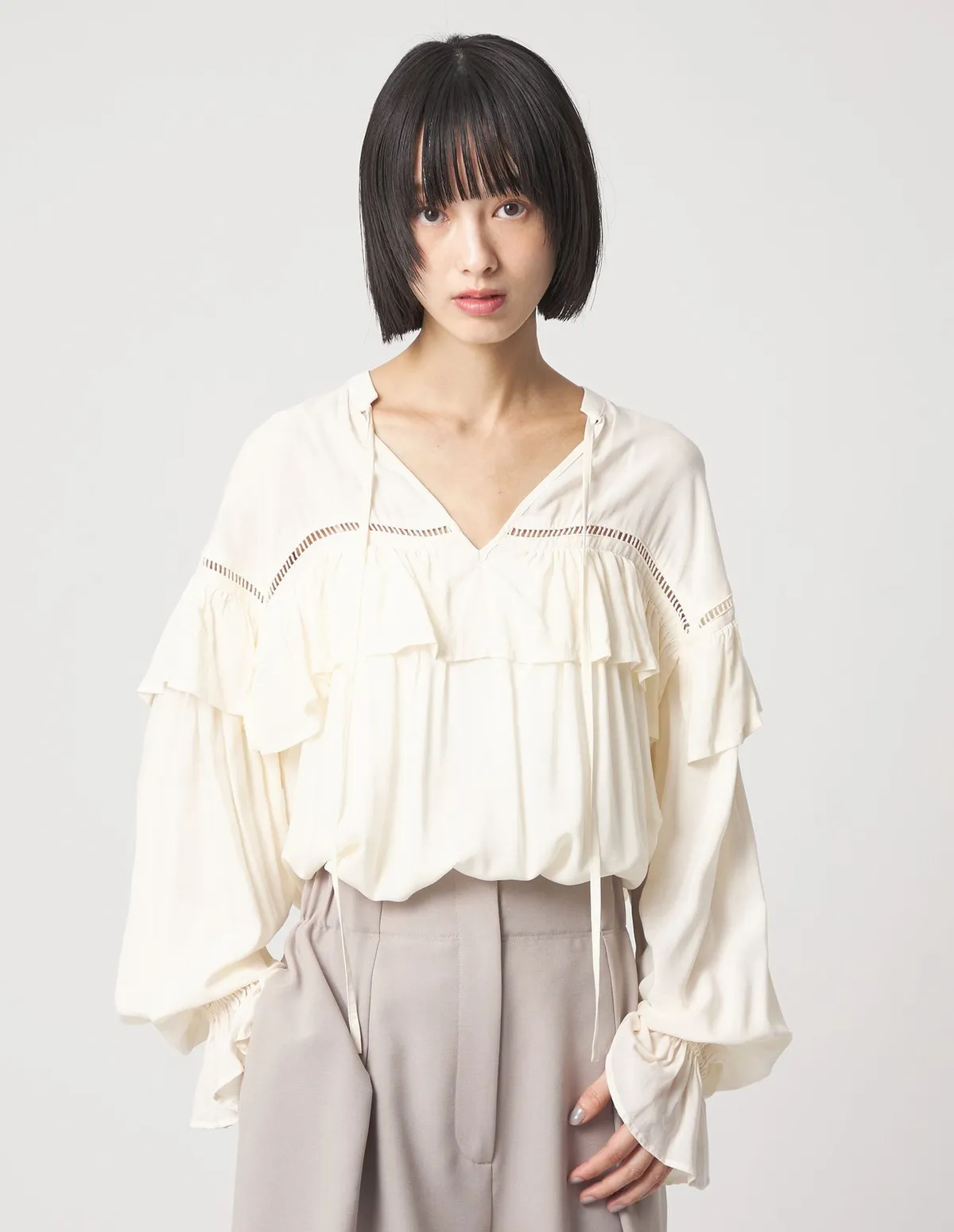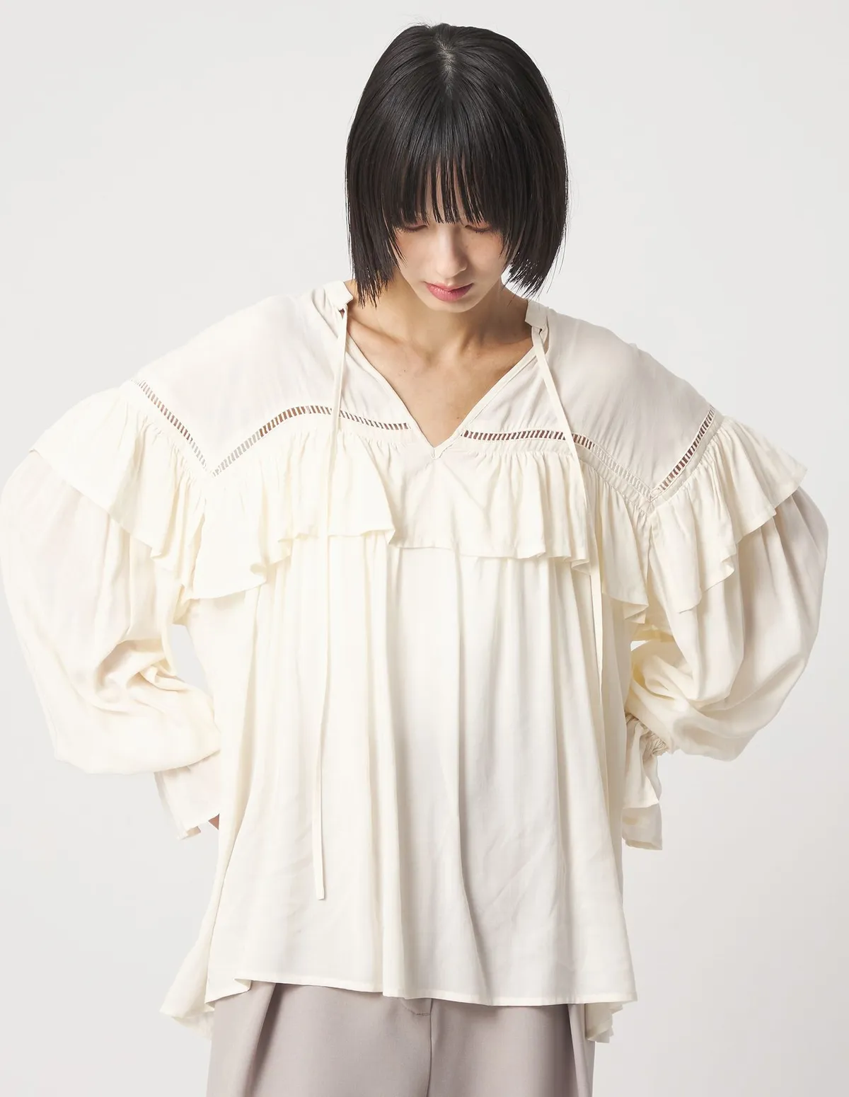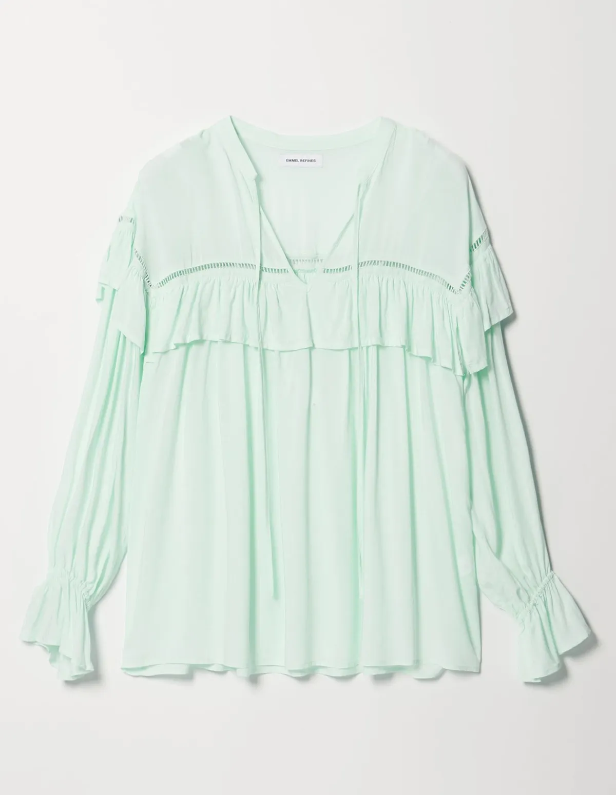 這款襯衫飾有梯形蕾絲和荷葉邊肩部線條簡潔,從胸部到下擺逐漸展開打造出迷人的造型採用柔軟飄逸的布料,穿著舒適自在設計中加入了大量的褶襉設計但布料本身的垂墜感使其不會顯得臃腫穿起來非常輕鬆又很自在材質:100% 人造絲蕾絲:100% 棉 此商品為預購商品 到貨時間需等待14~21個工作天 含假日及國定假日 ⚠️急件處理需自行負擔國際運費