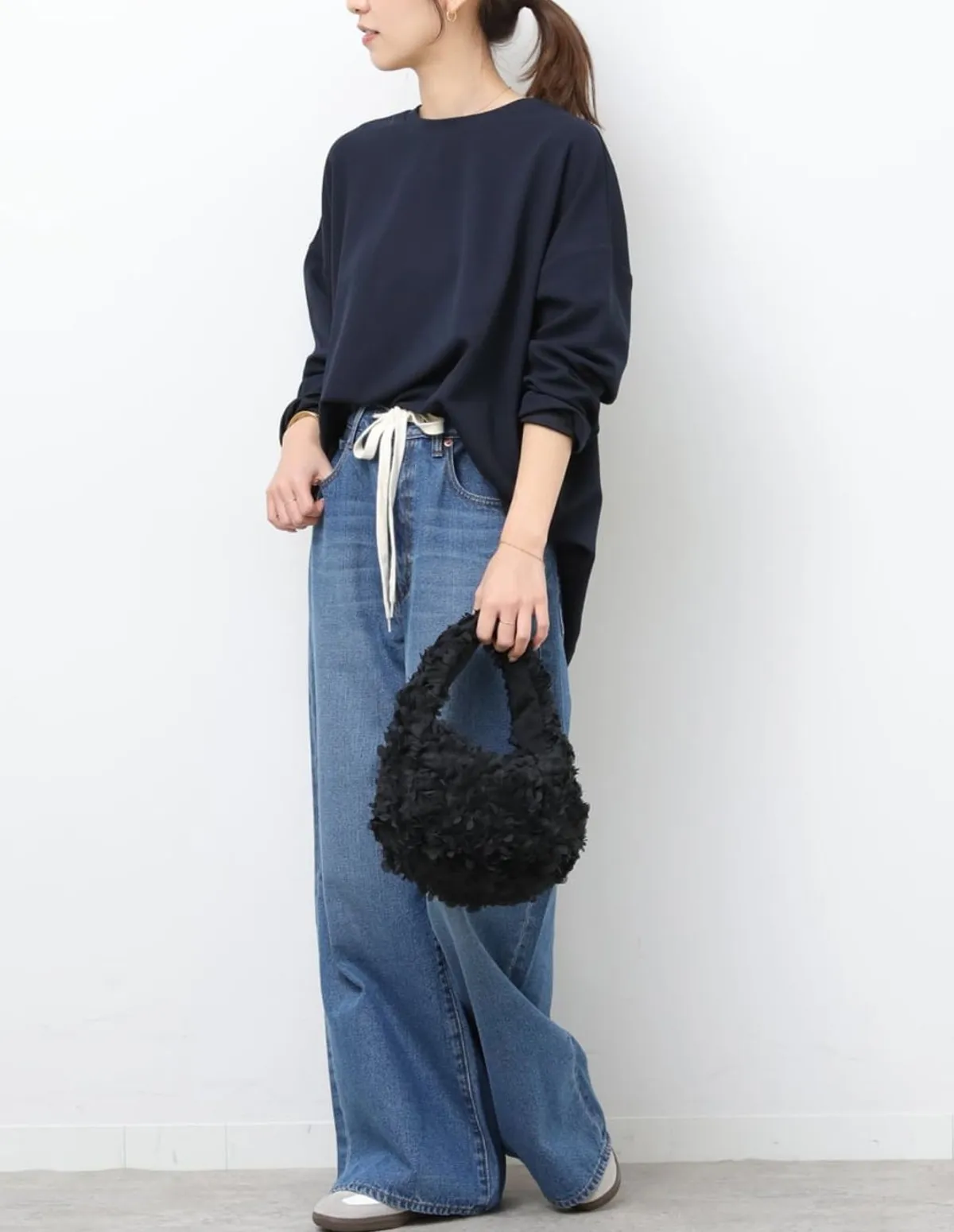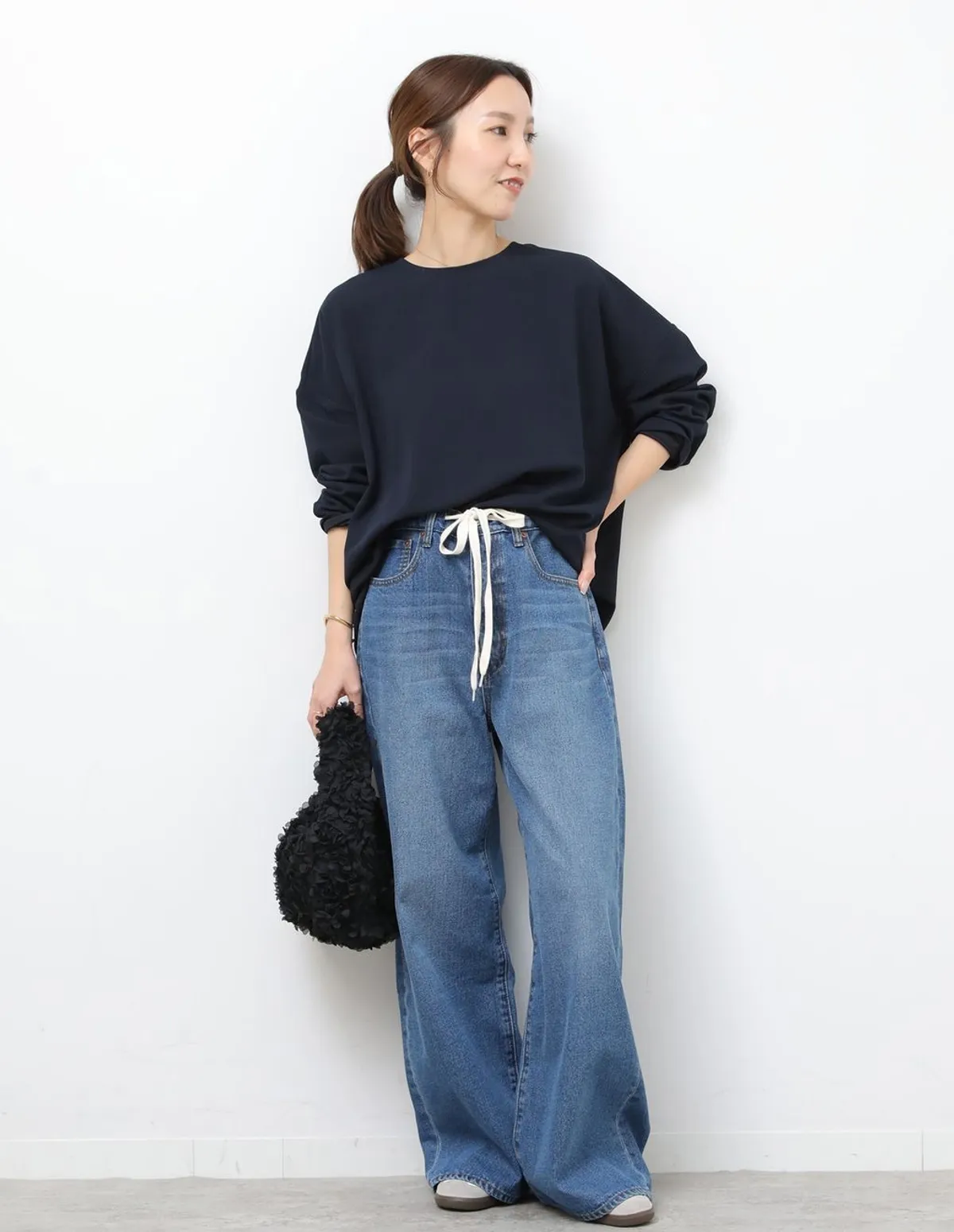 使用10.5oz柔軟又不易起皺的布料材質 雖然是可以隨意穿的寬鬆版型但腰部周圍線條流暢變得乾淨利落 透過加工完成的質感腰部的抽繩為搭配增添了點綴 是不挑上衣就能百搭的萬能牛仔褲材質:棉 100% 此商品為預購商品 到貨時間需等待14~21個工作天 含假日及國定假日 ⚠️急件處理需自行負擔國際運費
