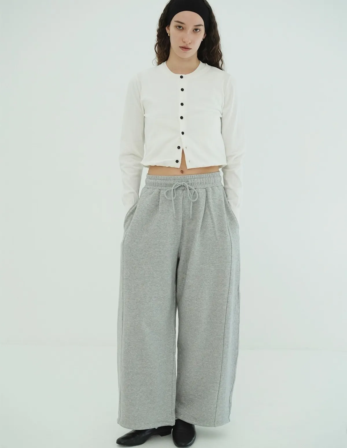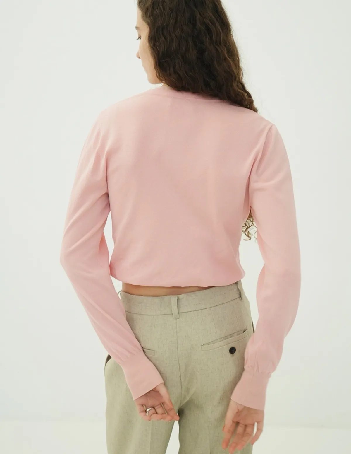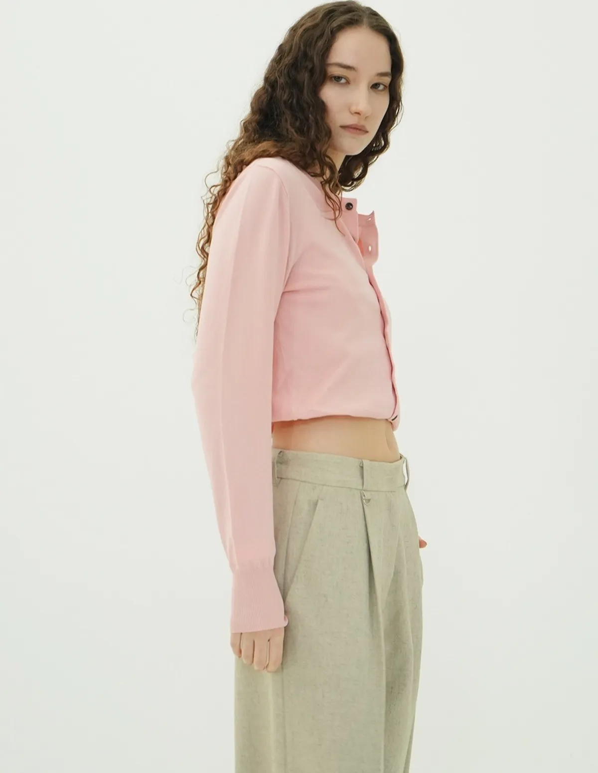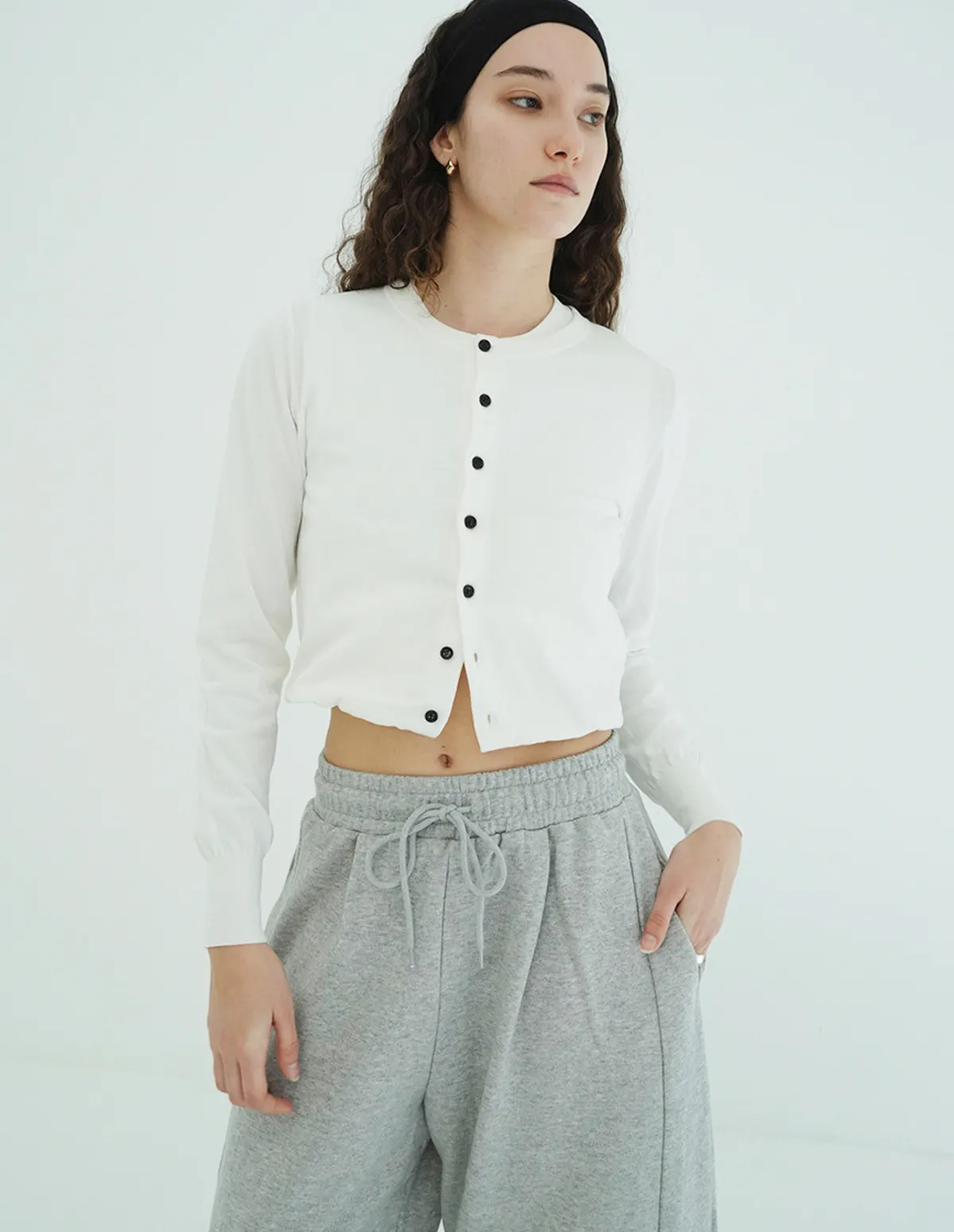 將針織外套繫在腰間,打造出無袖背心造型