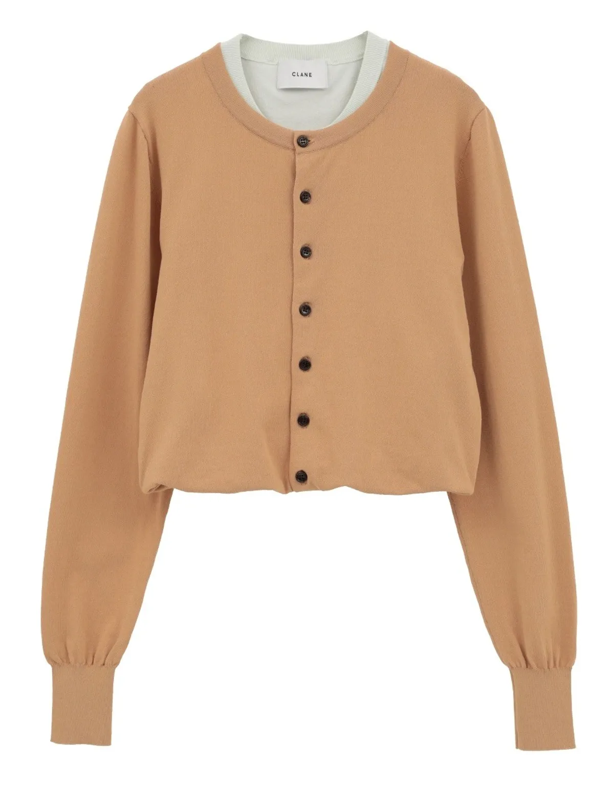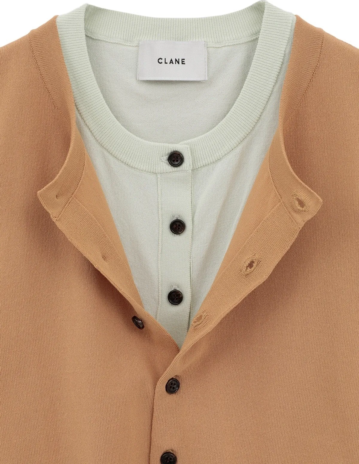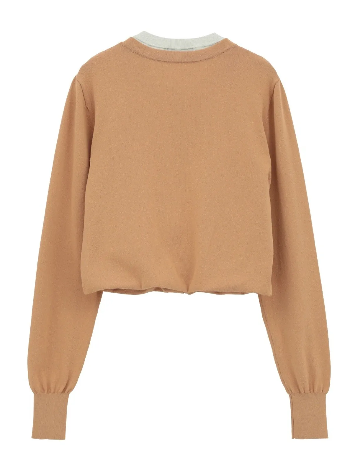 米色款式呈現大膽的雙色效果,突顯疊層感