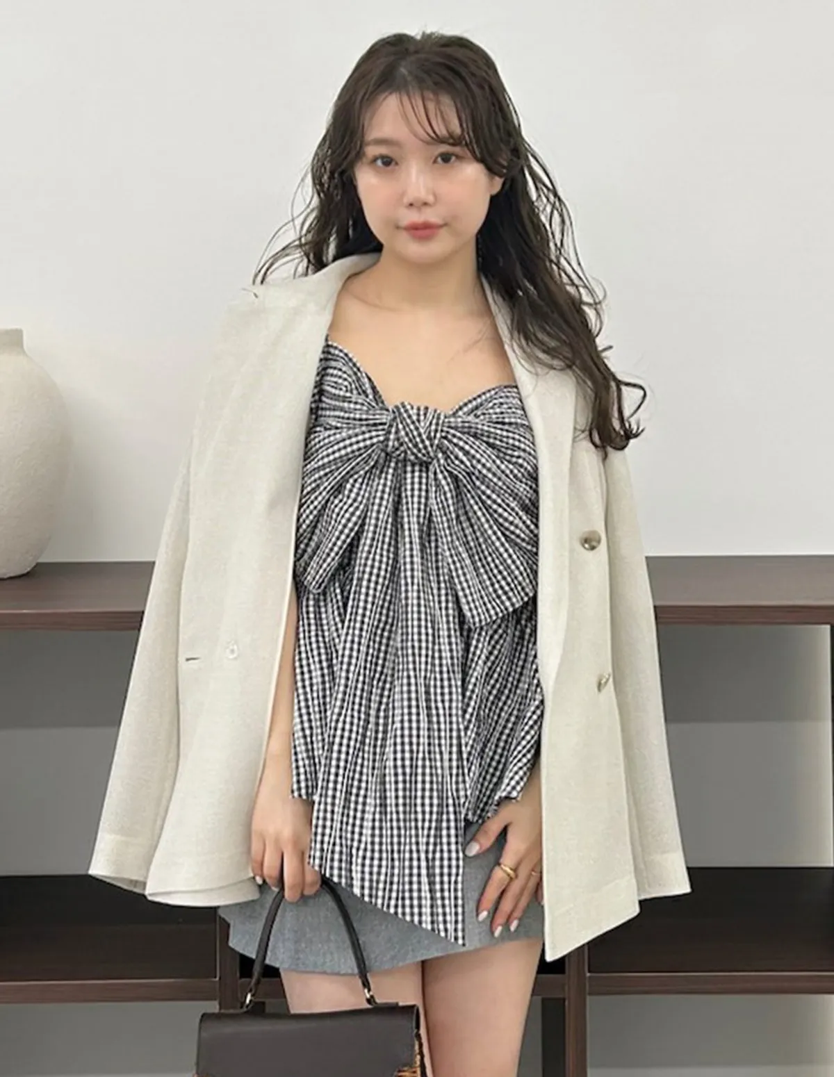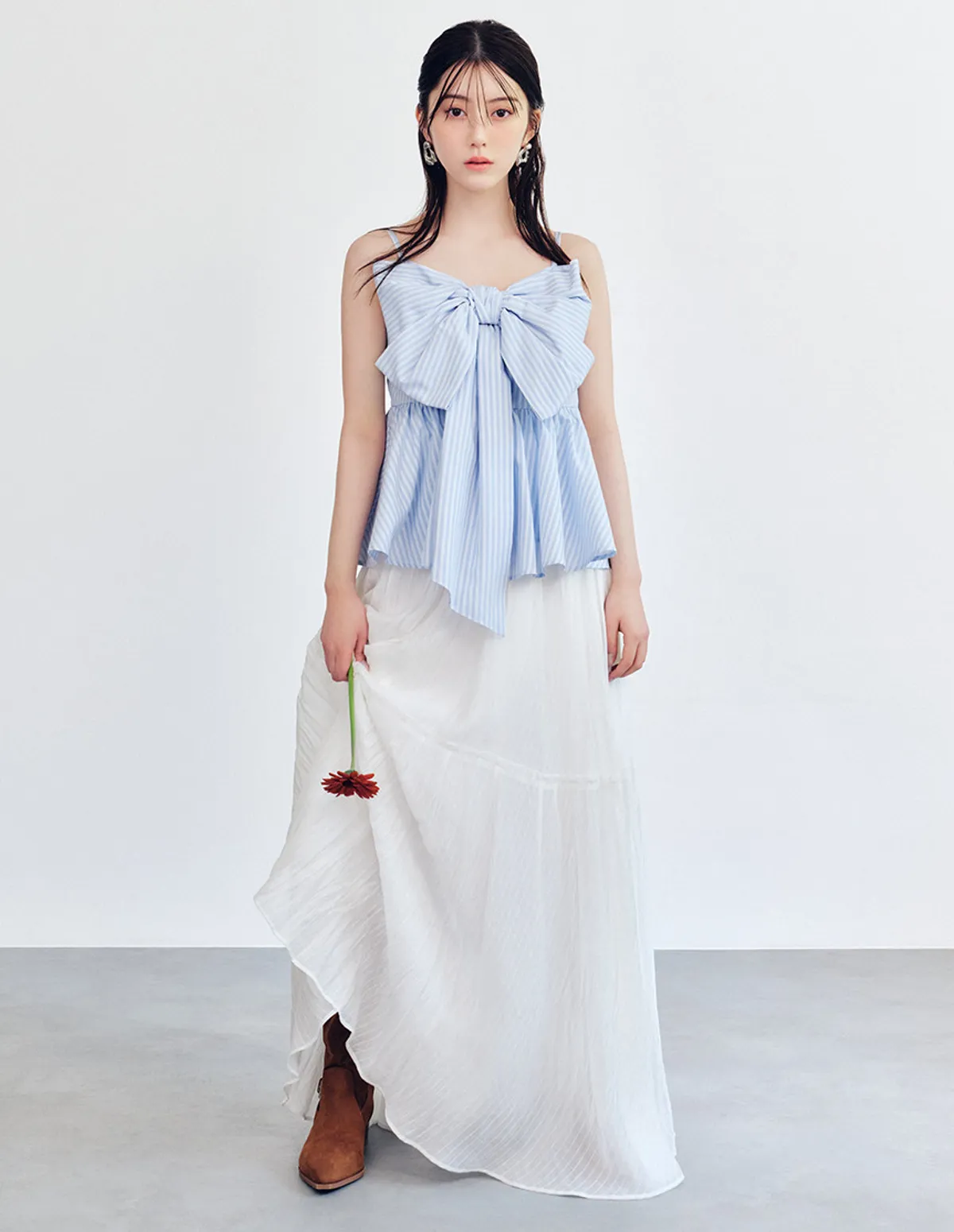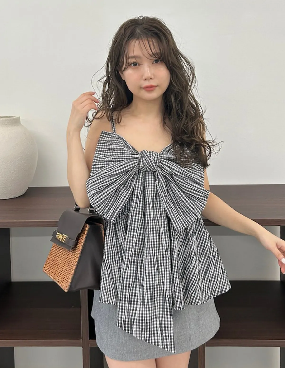 這款荷葉邊吊帶背心飾有華麗的超大緞帶緞帶採用扭結設計,打造挺括造型長長的垂墜緞帶末端增添了一絲現代甜美氣息背部採用彈性褶皺設計,穿著舒適肩帶是可調式設計,增加穿著的安全感材質[白/黑] 93% 滌綸,7% 尼龍[條紋] 48% 棉,40% 滌綸,12% 人造絲[格子] 65% 棉,33% 滌綸,2% 聚氨酯 此商品為預購商品 到貨時間需等待14~21個工作天 含假日及國定假日 ⚠️急件處理需自行負擔國際運費
