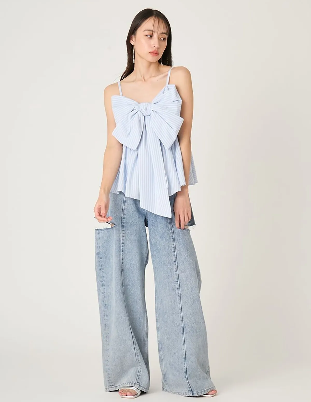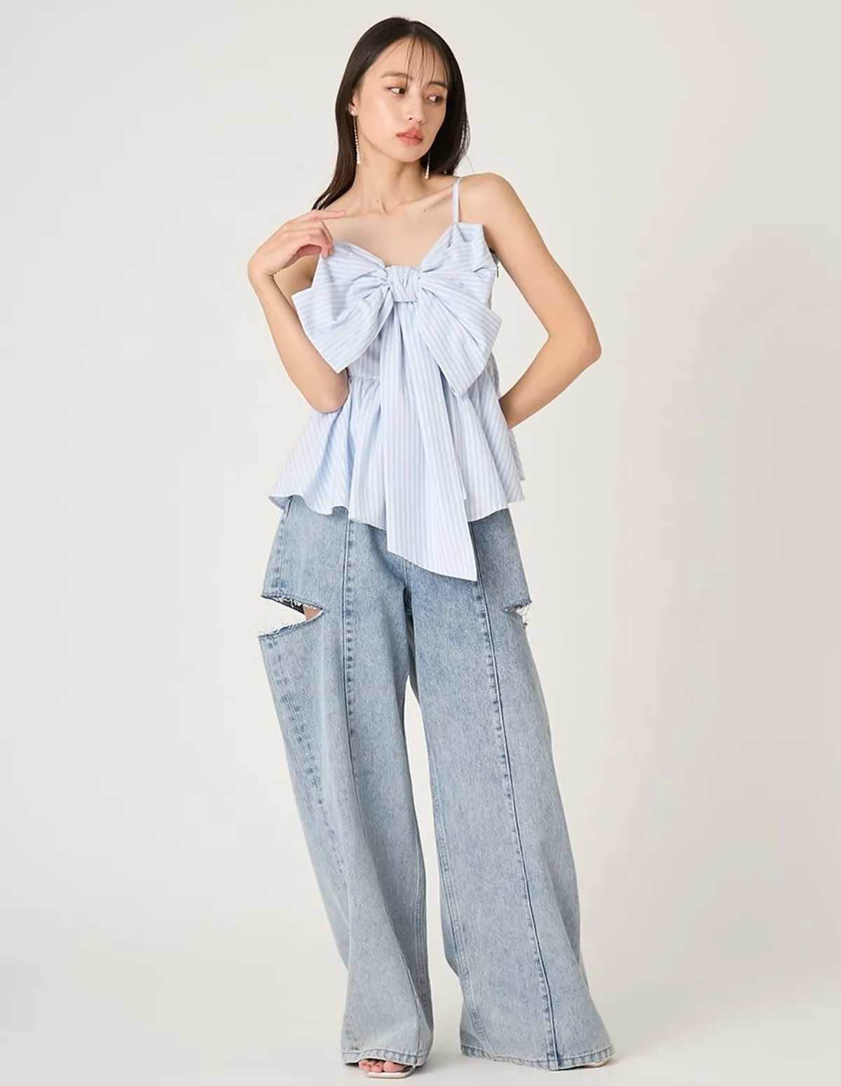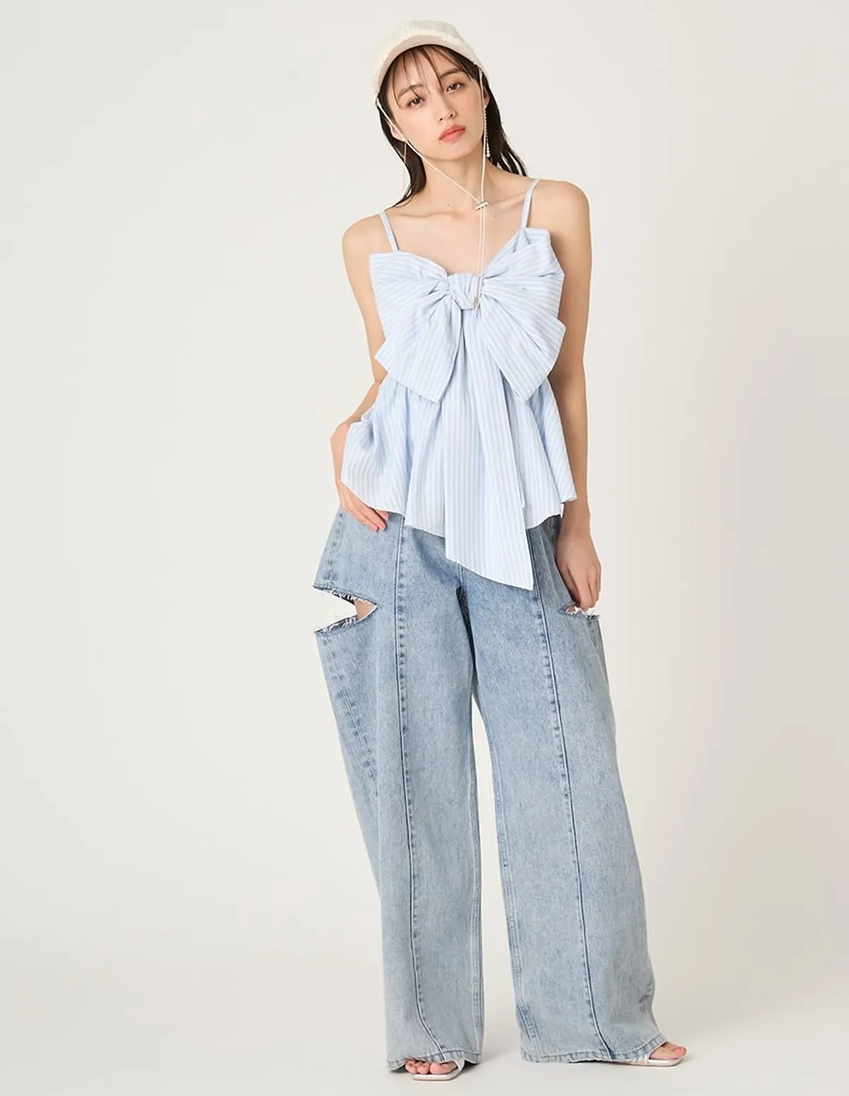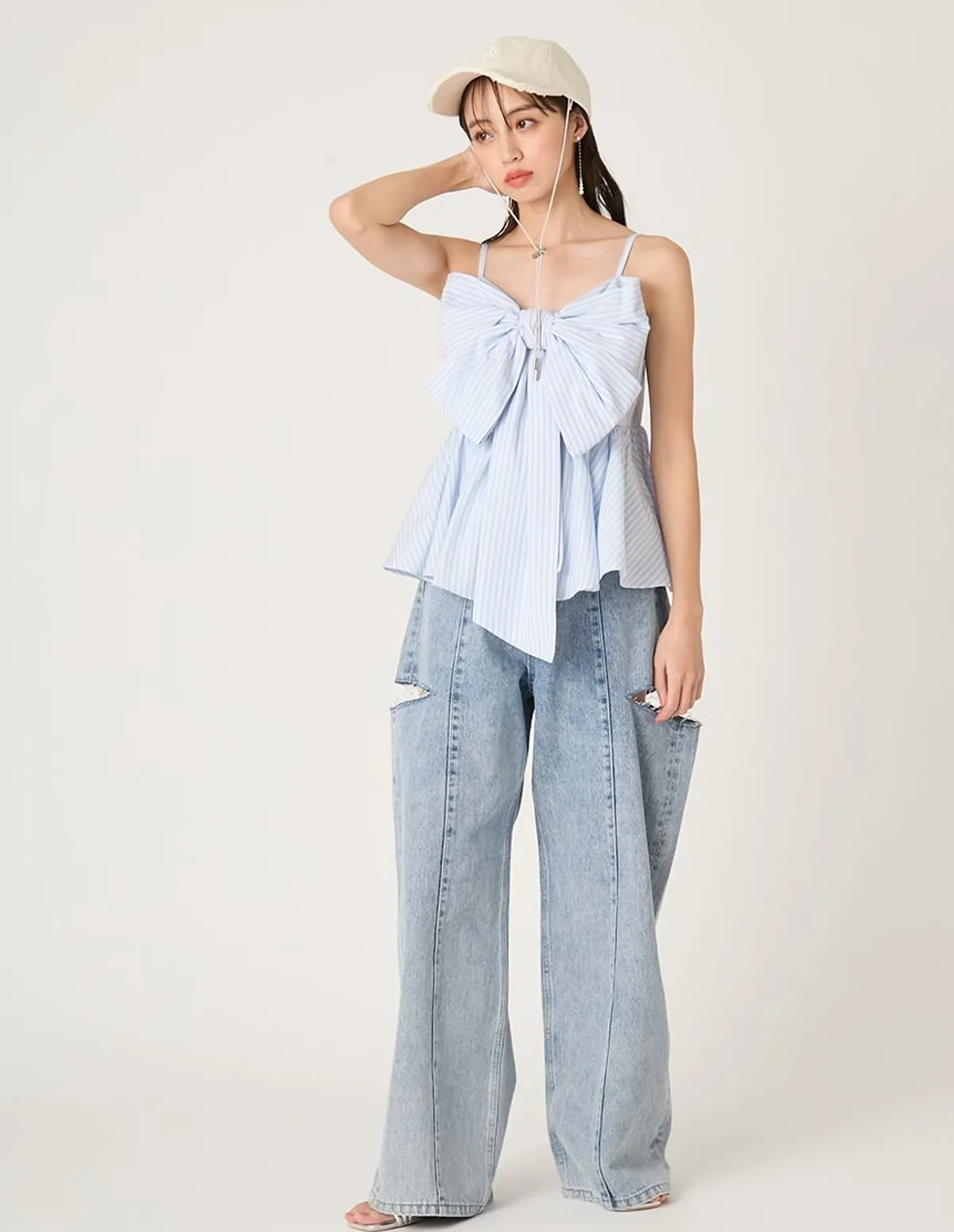 這款荷葉邊吊帶背心飾有華麗的超大緞帶緞帶採用扭結設計,打造挺括造型長長的垂墜緞帶末端增添了一絲現代甜美氣息背部採用彈性褶皺設計,穿著舒適肩帶是可調式設計,增加穿著的安全感材質[白/黑] 93% 滌綸,7% 尼龍[條紋] 48% 棉,40% 滌綸,12% 人造絲[格子] 65% 棉,33% 滌綸,2% 聚氨酯 此商品為預購商品 到貨時間需等待14~21個工作天 含假日及國定假日 ⚠️急件處理需自行負擔國際運費