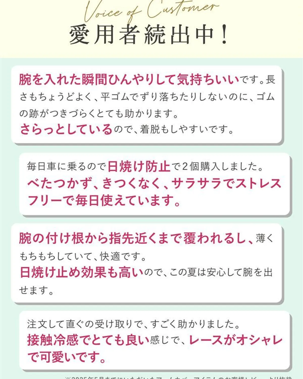 材質手感柔軟具有防紫外線功能,非常適合炎熱的季節採用觸感清涼的觸感布料,讓您保持涼爽舒適採用高吸水性速乾紗線,有效減少汗水和悶熱感[材質]聚酯纖維[尺寸]FREE SIZE / 50cm 此商品為預購商品 到貨時間需等待10~21個工作天 不含假日及國定假日 ⚠️急件處理需自行負擔國際運費