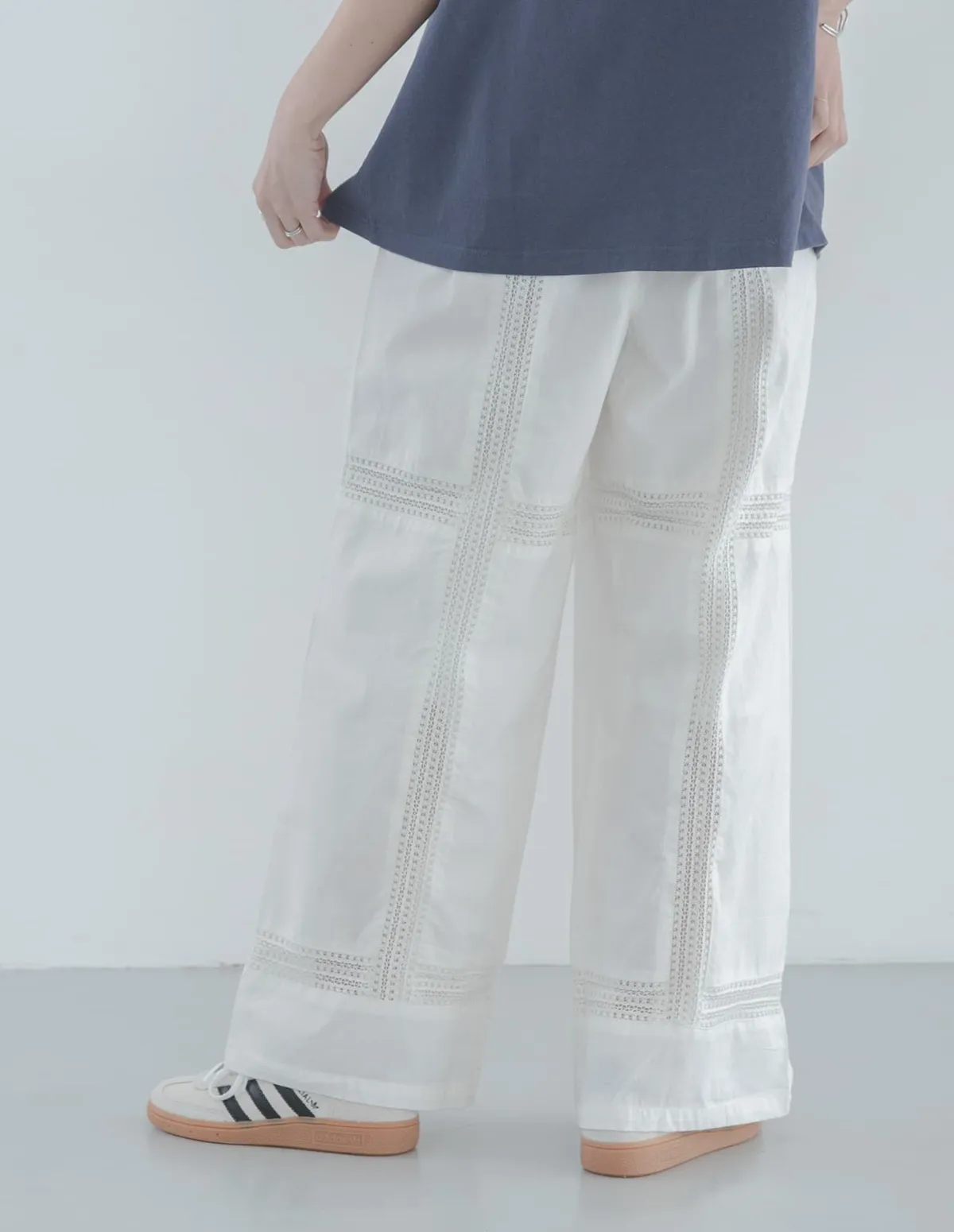 這款棉質長褲採用印度特有的柔軟親膚棉質布料飾以吸睛的蕾絲細節和天然質感設計亮點在於手工蕾絲細節蕾絲和布料的粗獷質感賦予長褲休閒時尚的風格棉質內襯觸感柔軟親膚腰圍鬆緊帶設計確保穿著舒適直筒寬褲型寬鬆適中,易於搭配各種上衣材質:100% 棉襯裡:86% 棉,14% 再生纖維蕾絲:99% 棉,1% 人造絲印度製 此商品為預購商品 到貨時間需等待14~21個工作天 含假日及國定假日 ⚠️急件處理需自行負擔國際運費