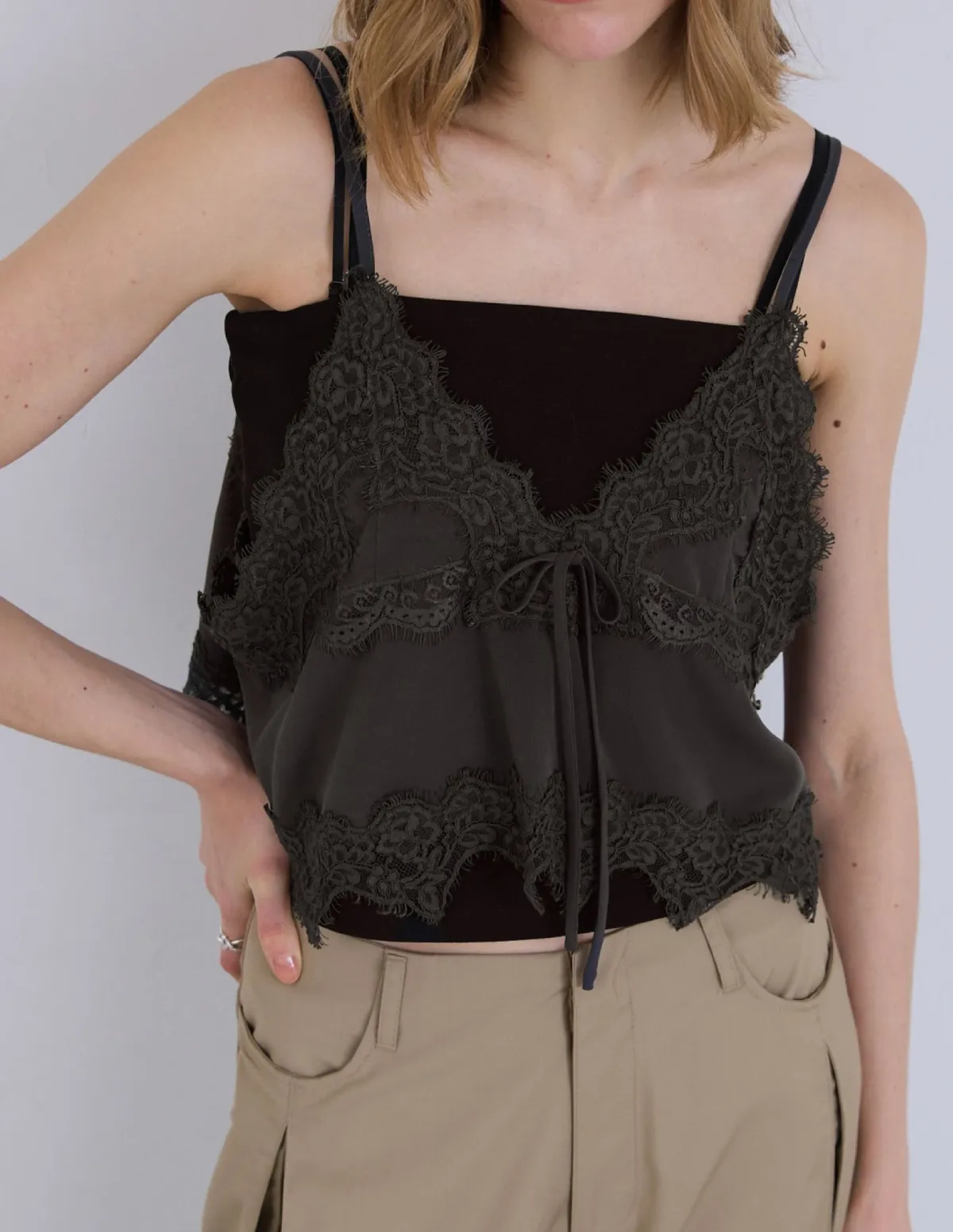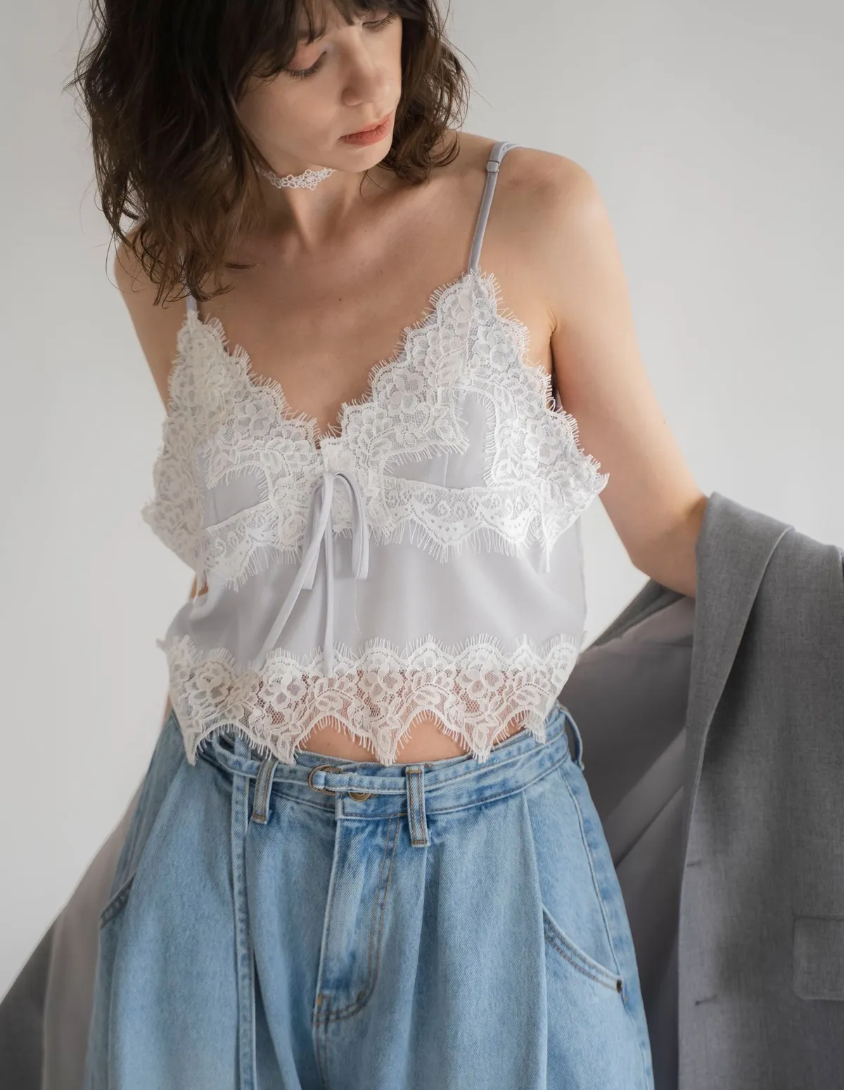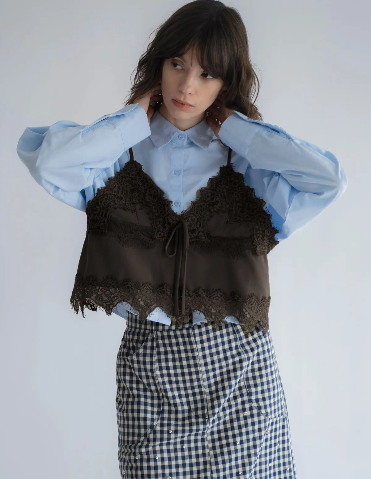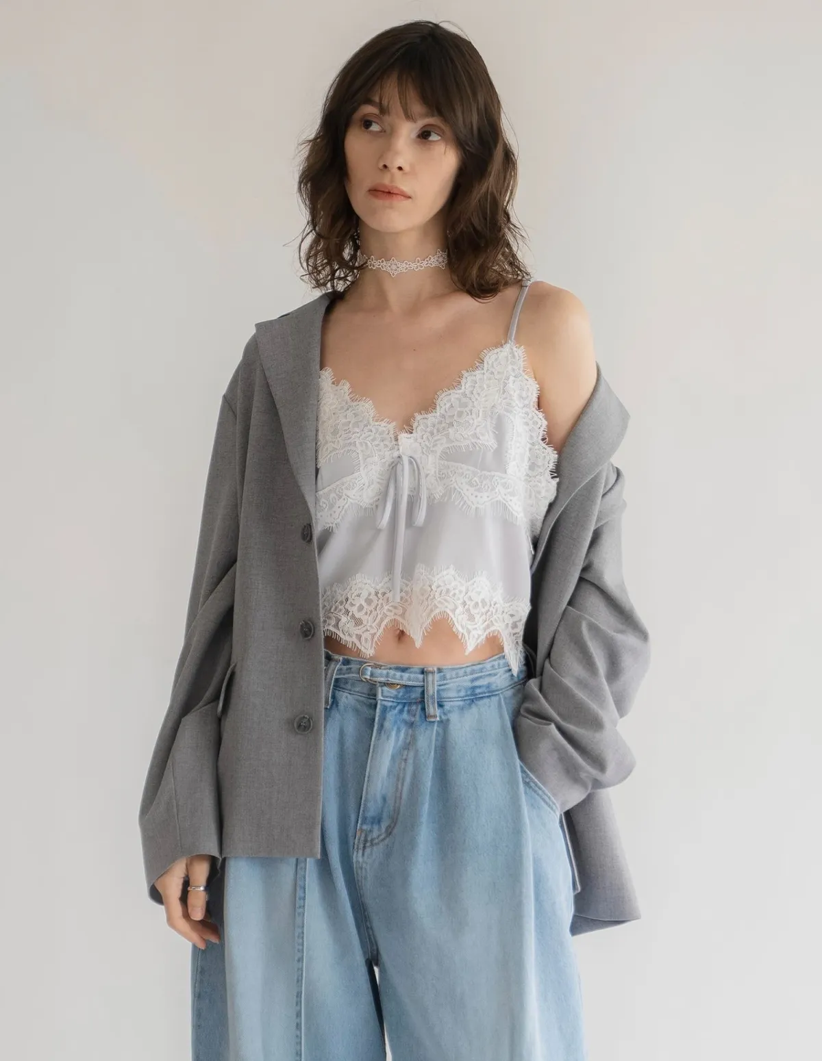 精緻的蕾絲設計盡顯女性柔美氣質為任何造型增添優雅點綴搭配【設計亮點】・廣受歡迎的蕾絲細肩帶風格・採用兩種不同材質的蕾絲拼接而成・短款設計,輕鬆打造百變造型材質外層布料:100% 聚酯纖維蕾絲:100% 尼龍 此商品為預購商品 到貨時間需等待14~21個工作天 含假日及國定假日 ⚠️急件處理需自行負擔國際運費