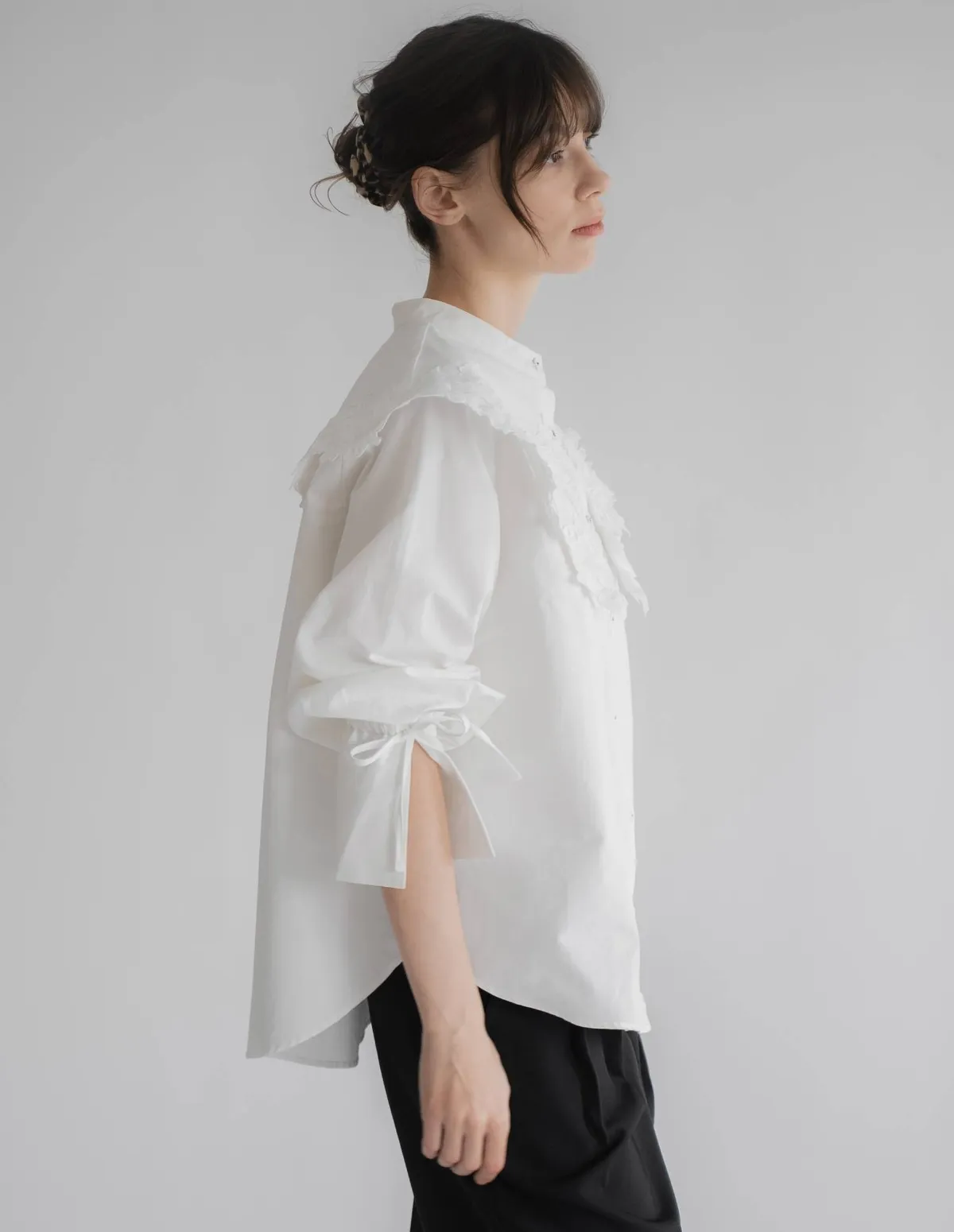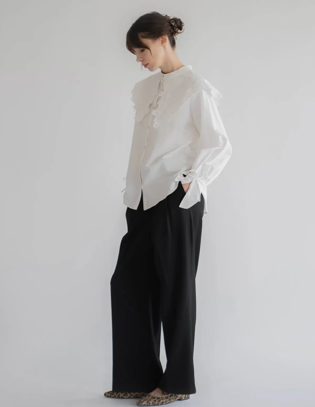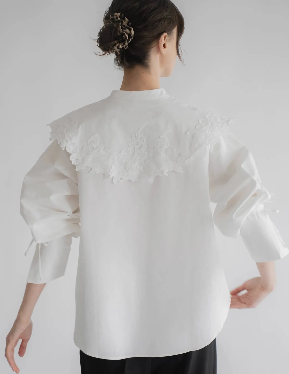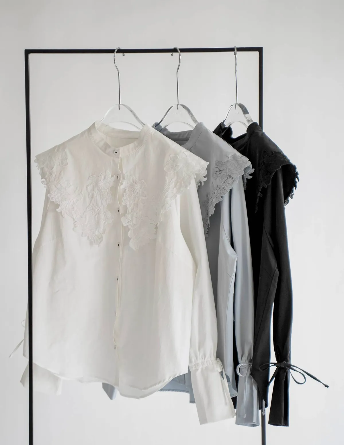 這款襯衫擁有引人注目的蕾絲領,領口設計別緻袖口處的緞帶增添了點綴,袖子可以捲起大領口使其成為整體造型的亮點推薦搭配西裝外套或西裝褲,打造正式又俐落的造型也可以將領口從外套或針織外套下露出來展現另外一種個性風格材質外層布料:58%尼龍,42%棉蕾絲:100%聚酯纖維 此商品為預購商品 到貨時間需等待14~21個工作天 含假日及國定假日 ⚠️急件處理需自行負擔國際運費