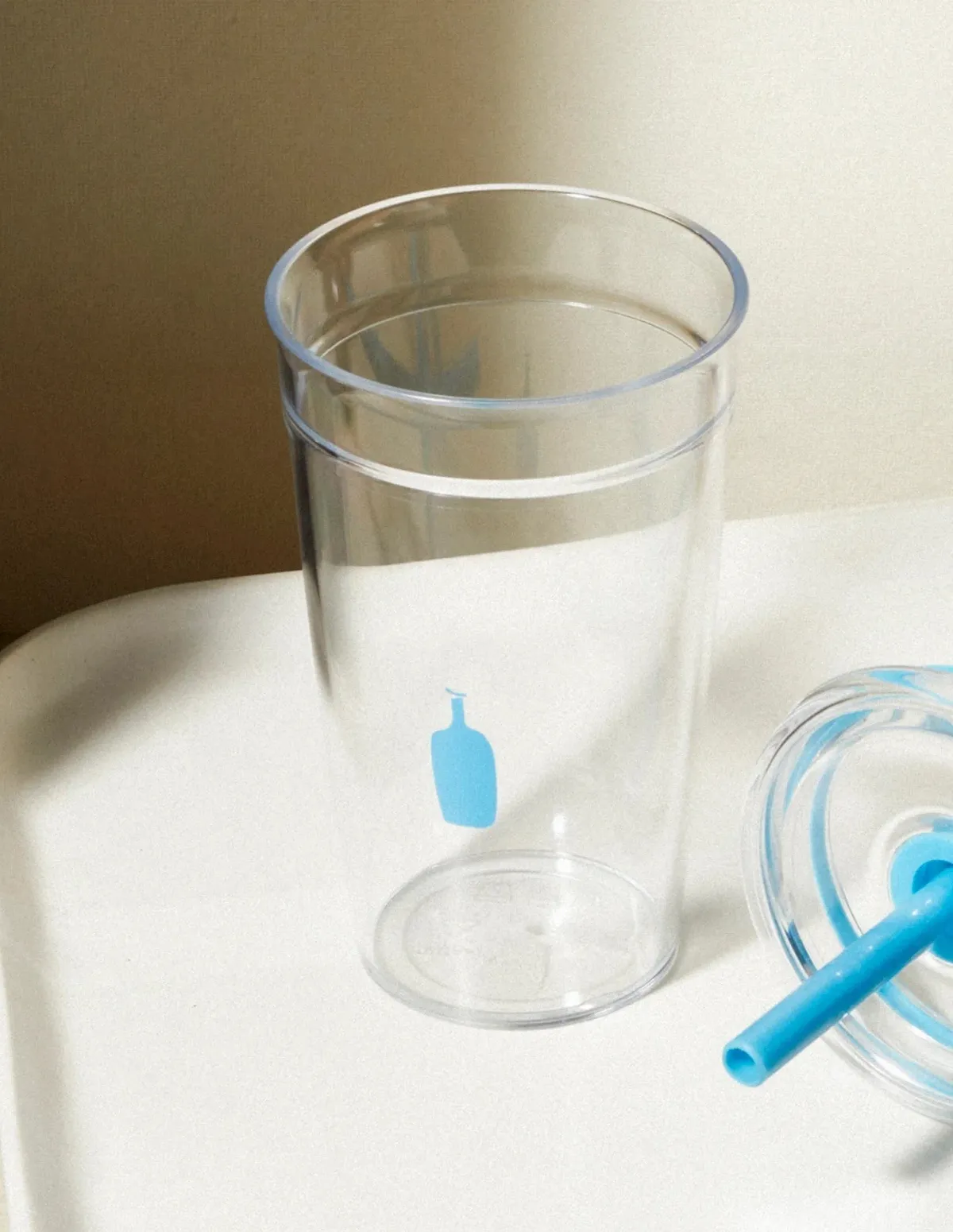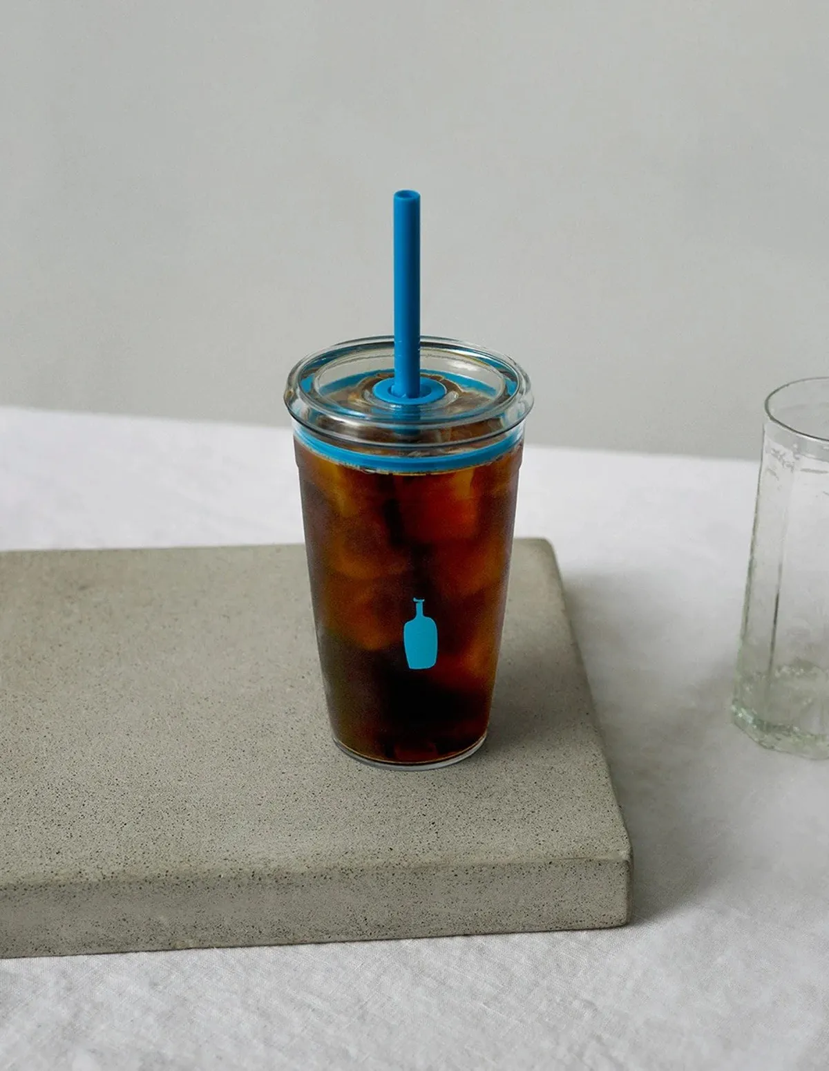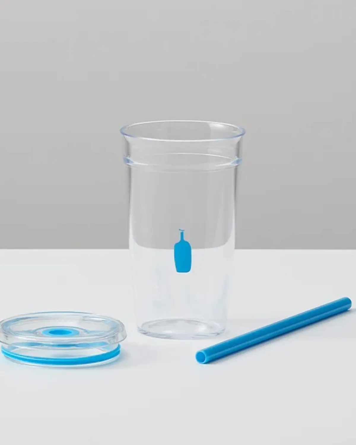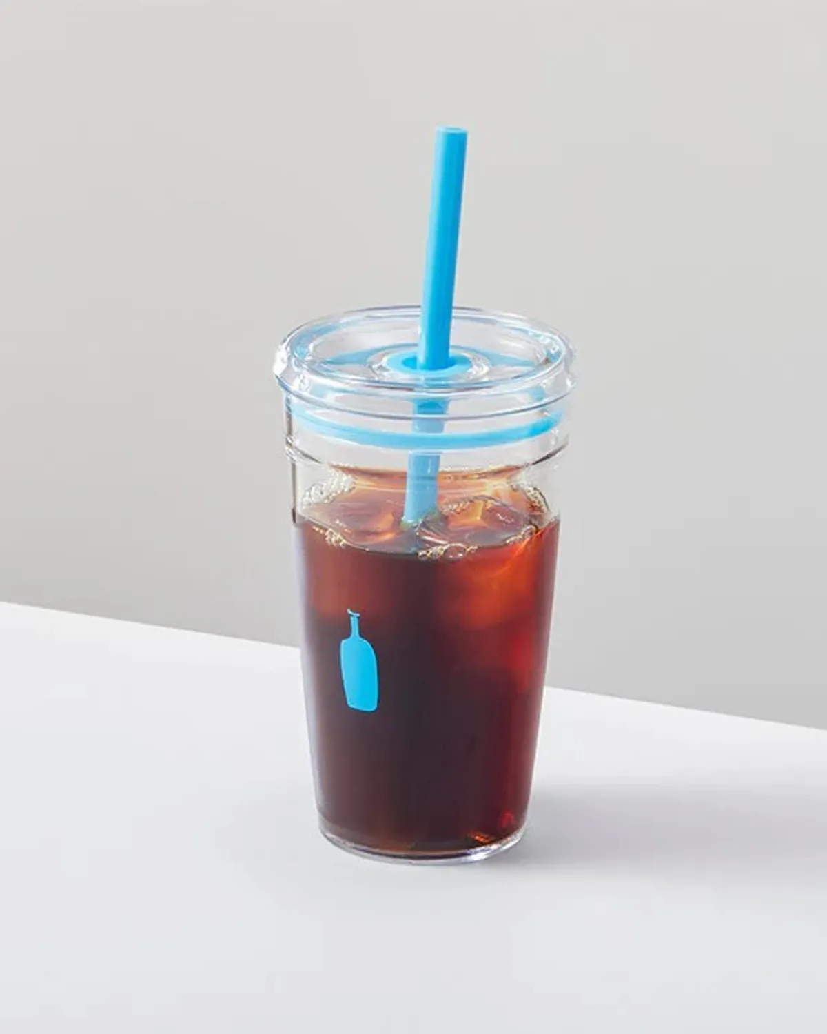 玻璃杯的設計元素來自於 Blue Bottle Coffee使用的外帶杯