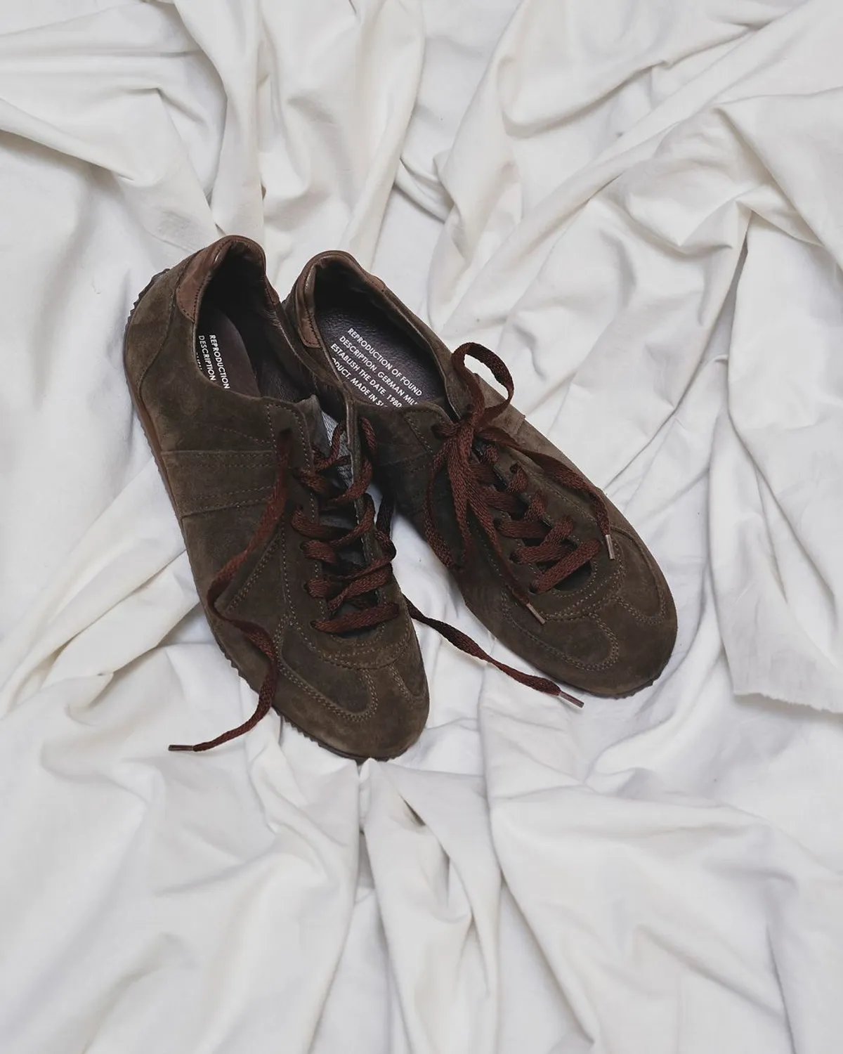 REPRODUCTION OF FOUND和TODAYFUL聯名鞋第二彈經典德訓鞋款加上薄鞋底設計簡約又很有魅力的款式因為在1970年~1980年代作為德國軍隊的訓練鞋使用所以鞋子本身含有功能性和輕便舒適的穿著感這款聯名採用TODAYFUL原創配色每一個都是手工精心製作鞋面使用高級義大利絨面革附有皮革和平繩兩種異素材鞋帶尺寸指南36:22.5cm~23cm37:23.5cm~24cm38:24.5cm~25cm※ TODAYFUL標籤和箱子的記載尺寸不一樣,但尺寸沒有問題喔! 此商品為預購商品 到貨時間需等待14~21個工作天 不含假日及國定假日 ⚠️急件處理需自行負擔國際運費