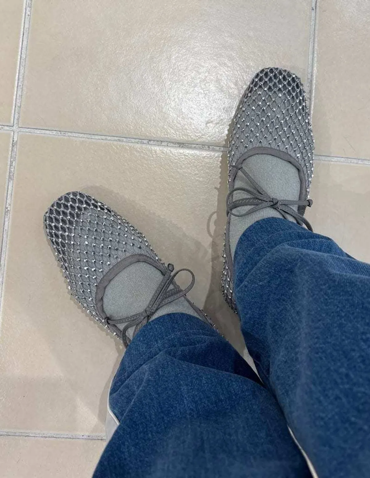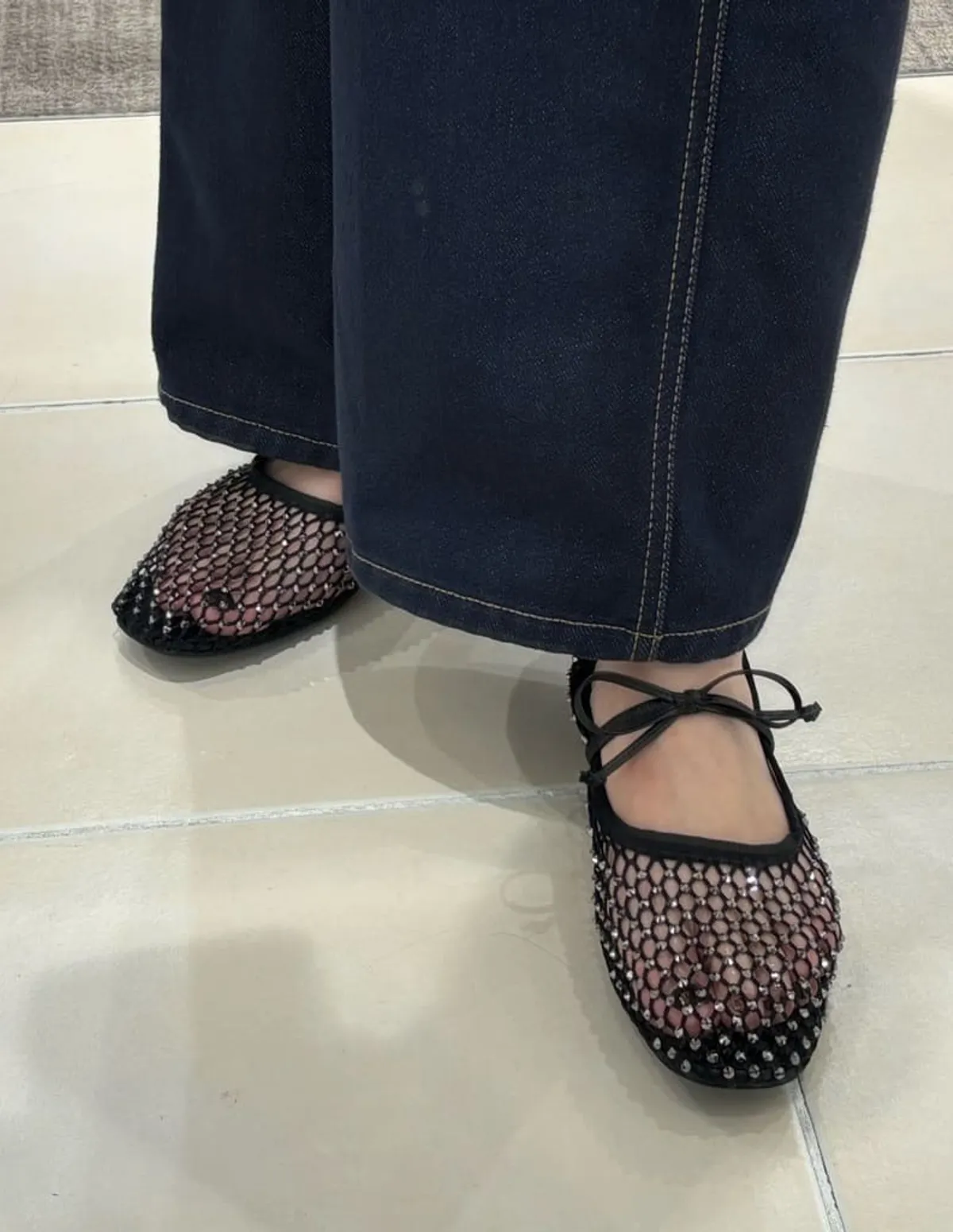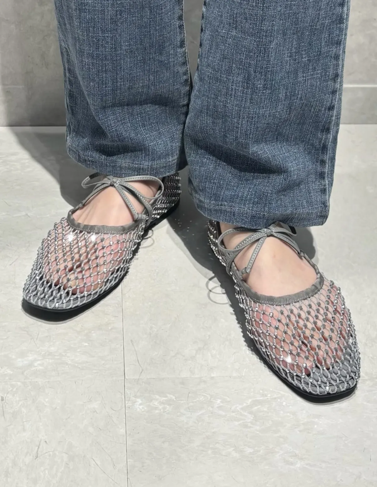 採用與流行的亮片芭蕾舞鞋相同的鞋楦,穿著舒適絲帶帶位於腳背而不是腳趾處使這雙鞋與普通的芭蕾舞鞋脫穎而出緞帶附在褶皺鬆緊帶上因此可以輕鬆穿上和脫下黑色與灰色水鑽搭配淺灰色與銀色水鑽搭配材質:織物 x 合成皮革尺寸:22cm~25cm版型偏大!建議拿小半號到一號 此商品為預購商品 到貨時間需等待10~21個工作天 不含假日及國定假日 ⚠️急件處理需自行負擔國際運費