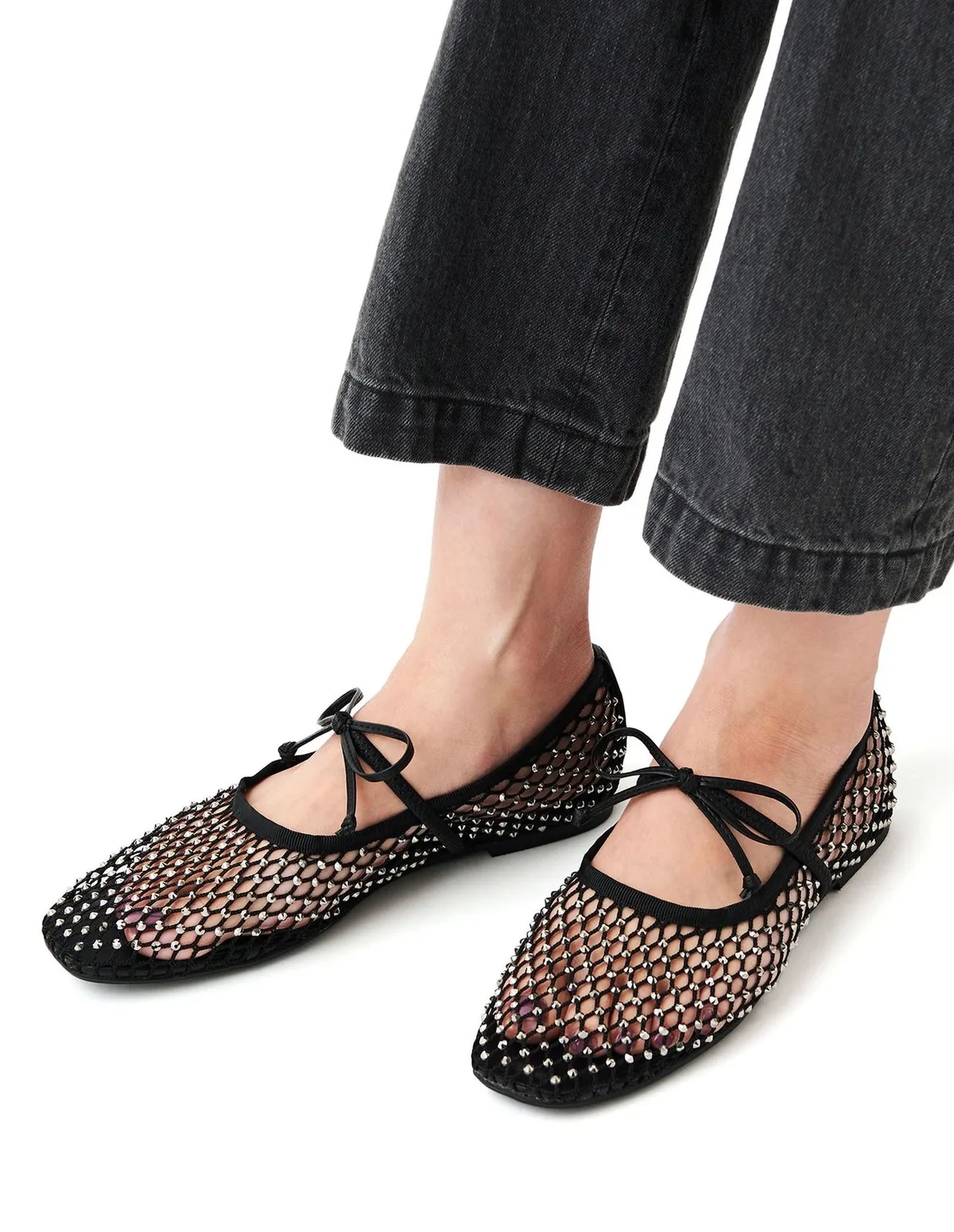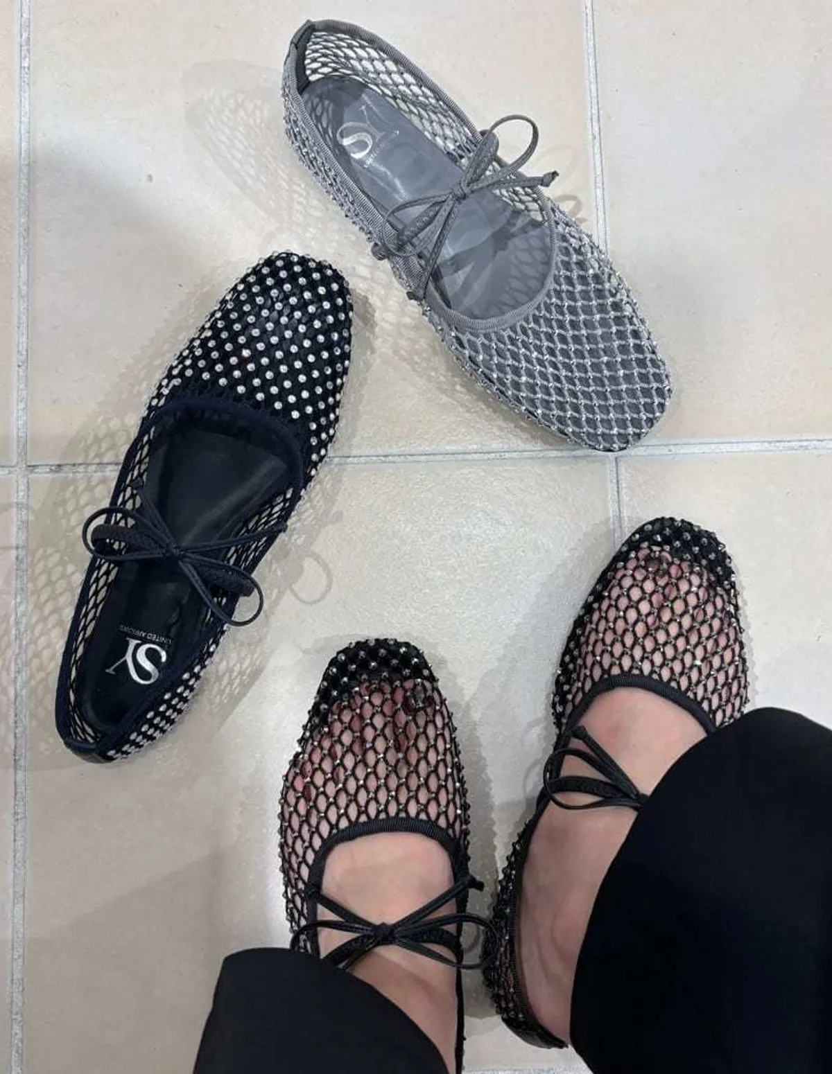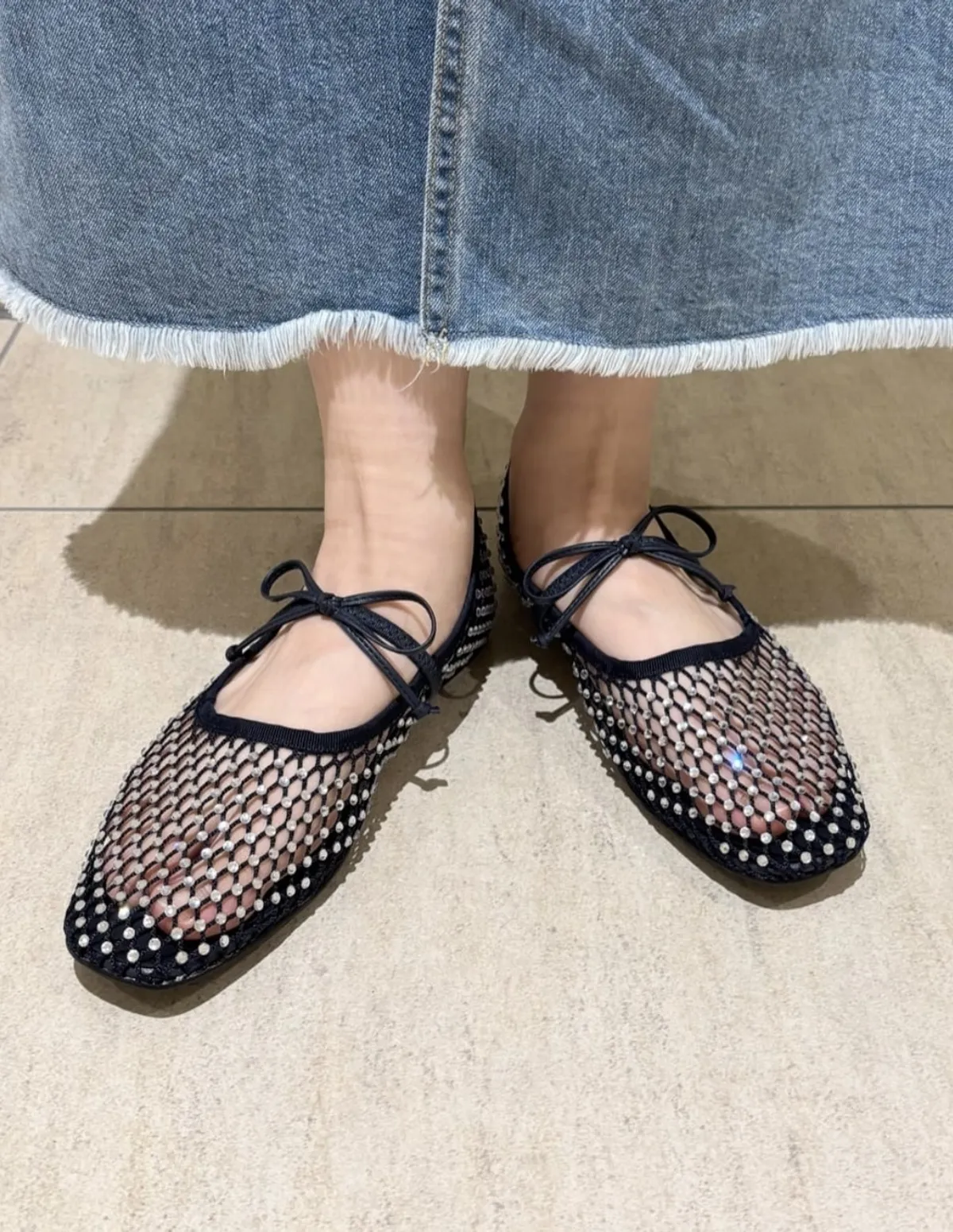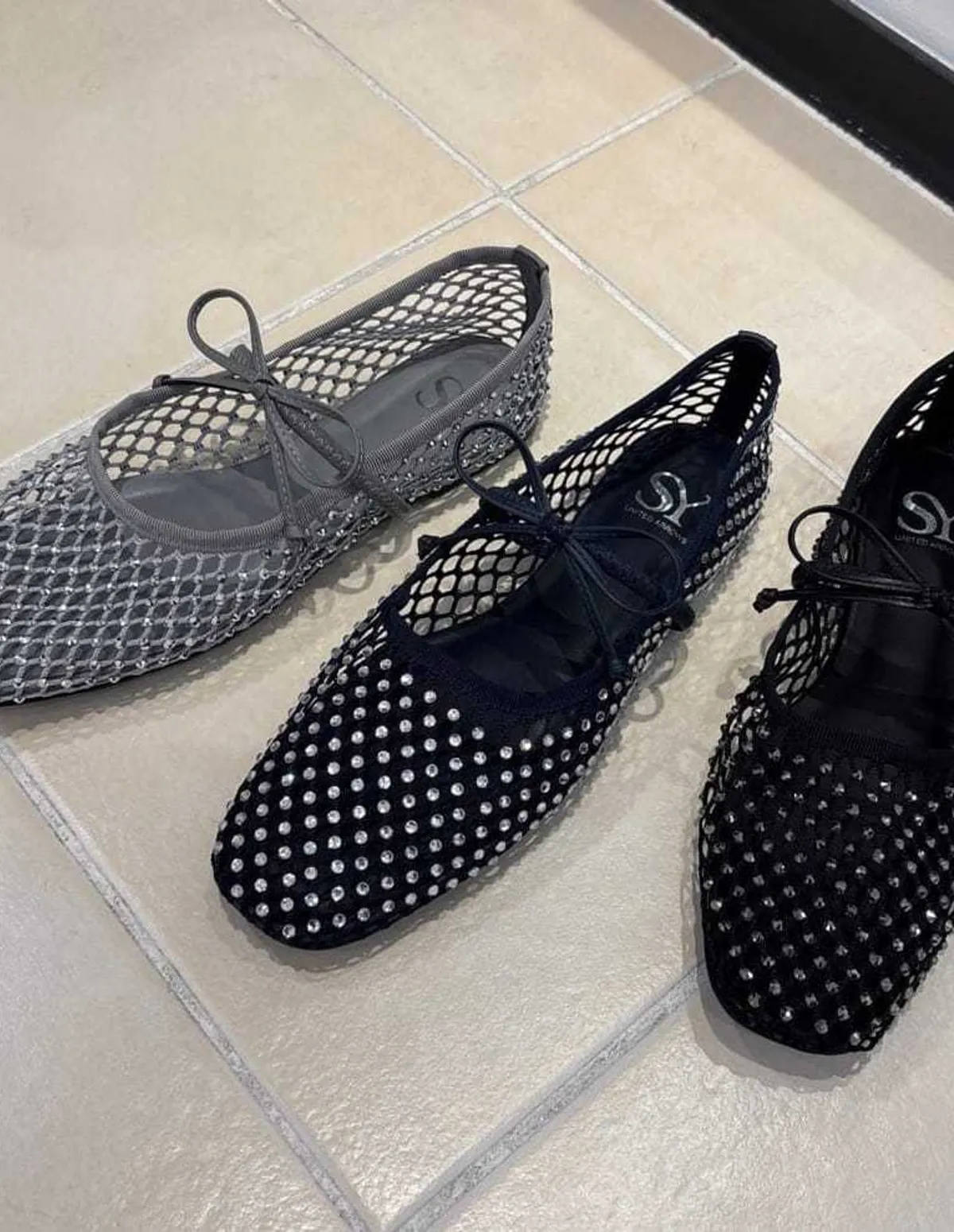 採用與流行的亮片芭蕾舞鞋相同的鞋楦,穿著舒適絲帶帶位於腳背而不是腳趾處使這雙鞋與普通的芭蕾舞鞋脫穎而出緞帶附在褶皺鬆緊帶上因此可以輕鬆穿上和脫下黑色與灰色水鑽搭配淺灰色與銀色水鑽搭配材質:織物 x 合成皮革尺寸:22cm~25cm版型偏大!建議拿小半號到一號 此商品為預購商品 到貨時間需等待10~21個工作天 不含假日及國定假日 ⚠️急件處理需自行負擔國際運費
