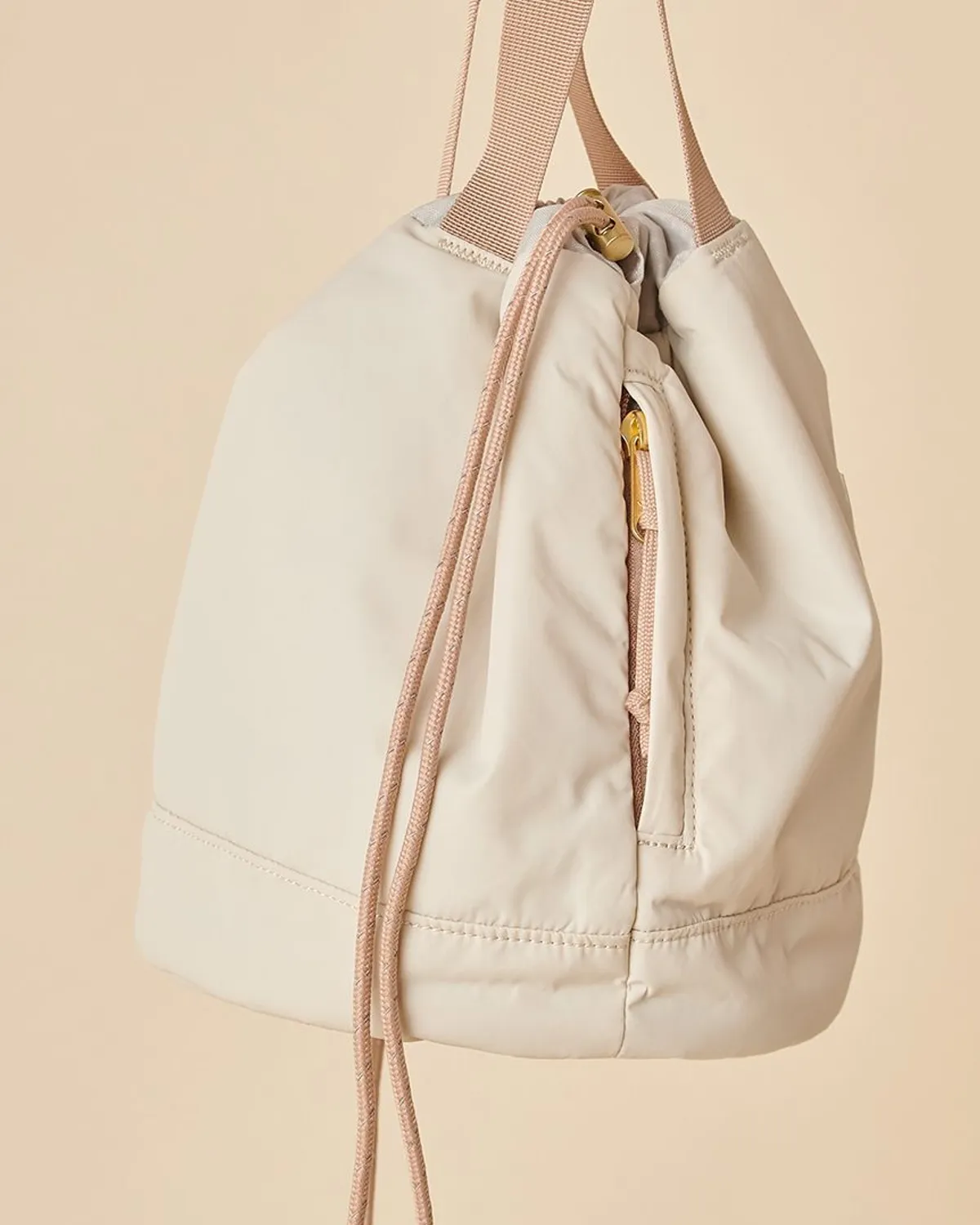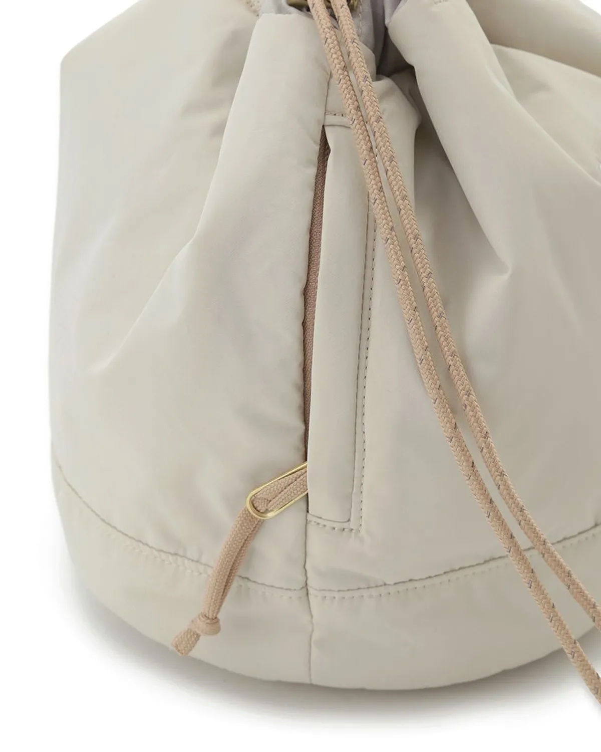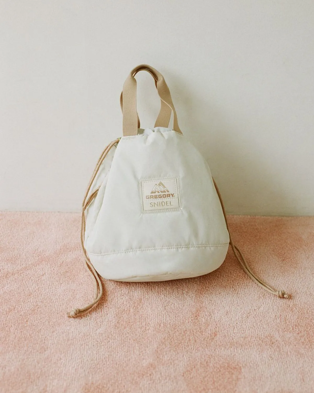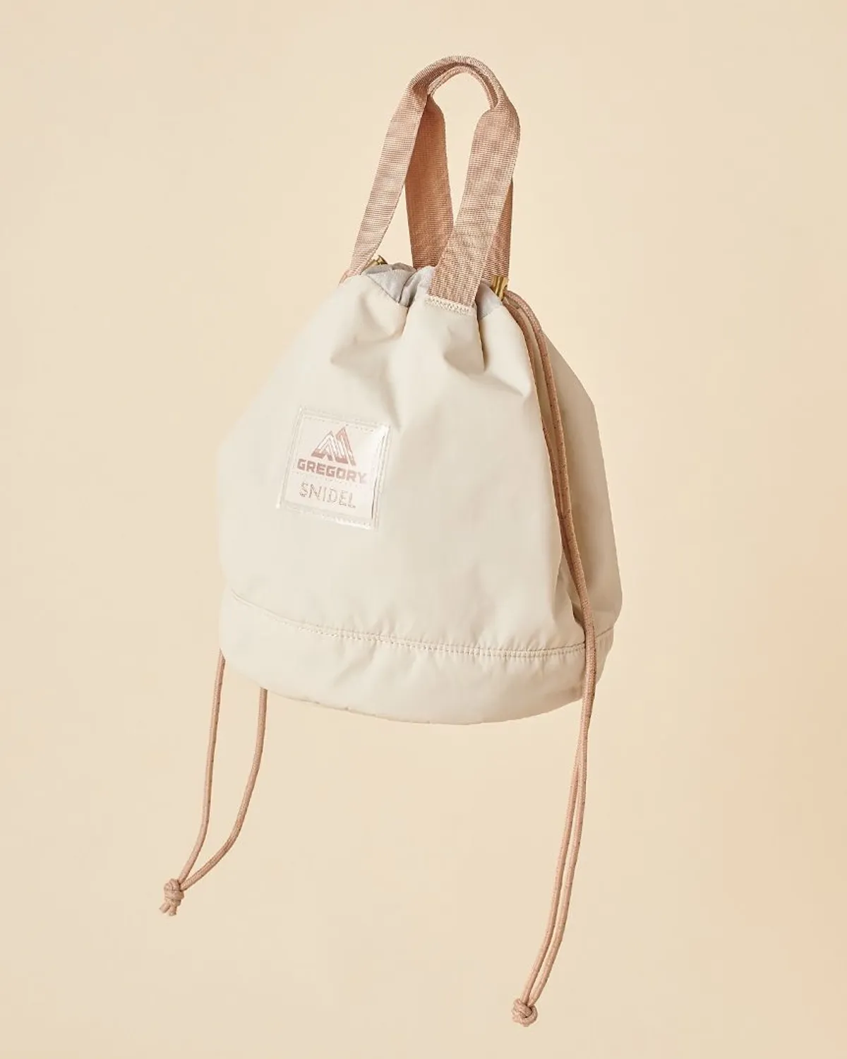 NIDEL x GREGORY 聯名款GREGORY Chinchi Bag M系列水桶包柔和象牙白 x 粉米色的配色跟SNIDEL家的服裝也很好搭配是一年四季都可以使用的單品材質外層:100%尼龍內襯:100%尼龍 此商品為預購商品 到貨時間需等待10~21個工作天 不含假日及國定假日 ⚠️急件處理需自行負擔國際運費