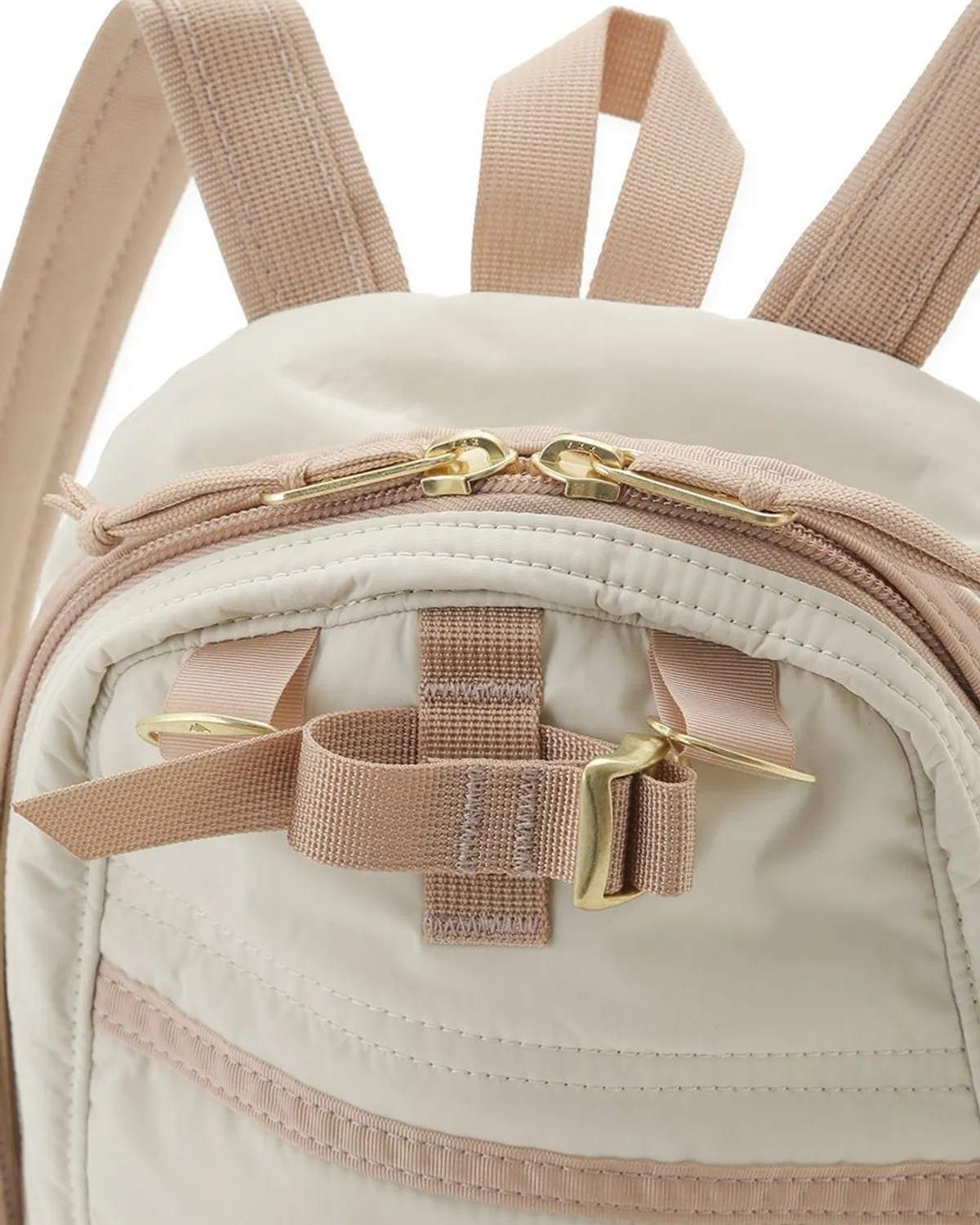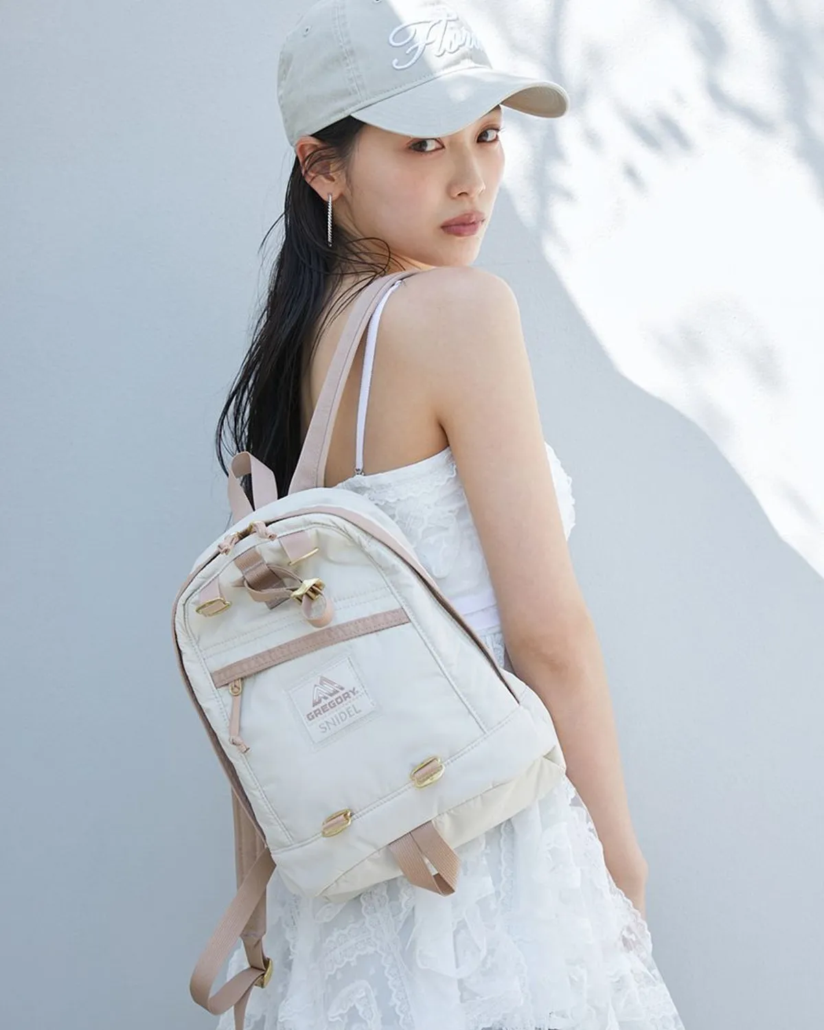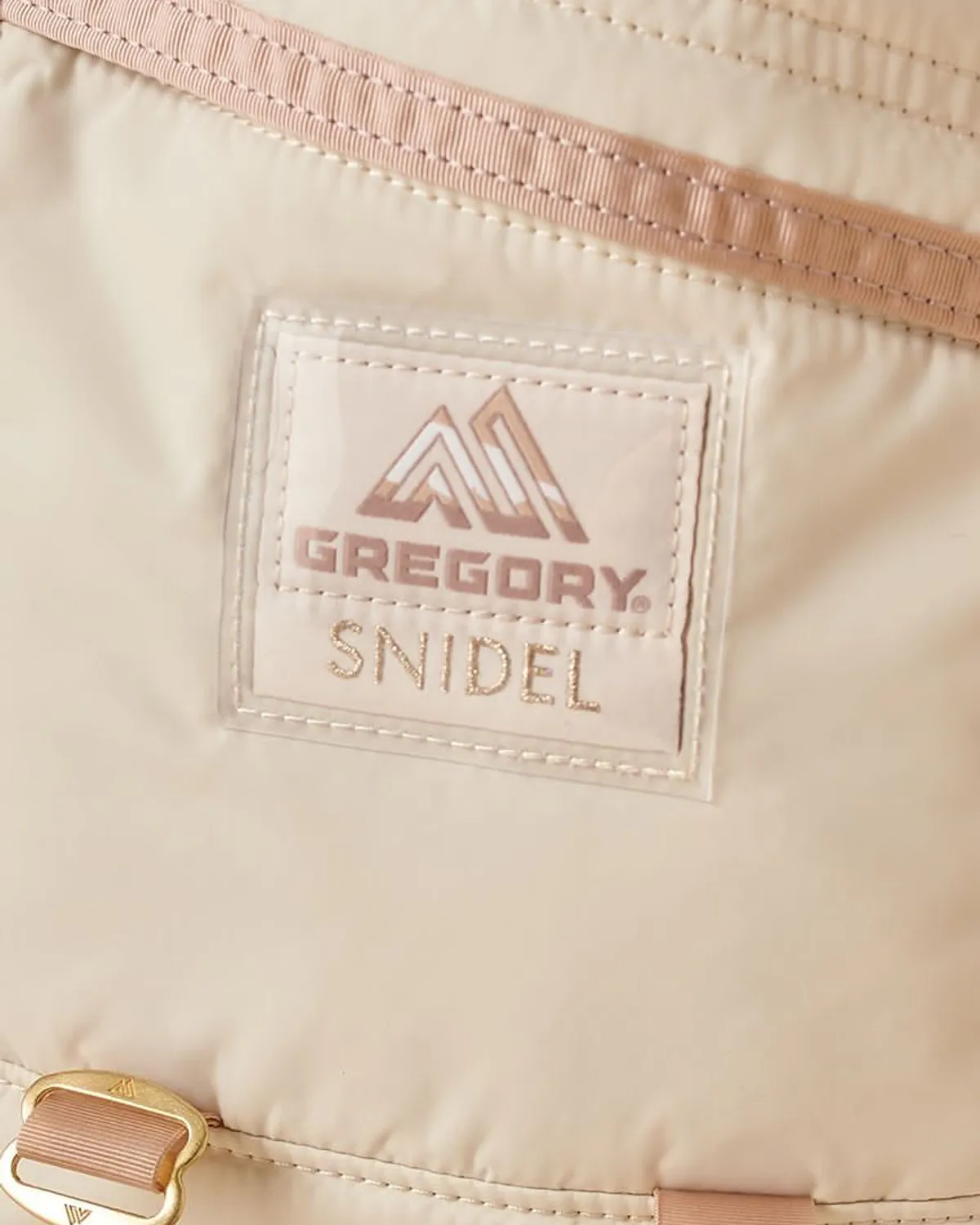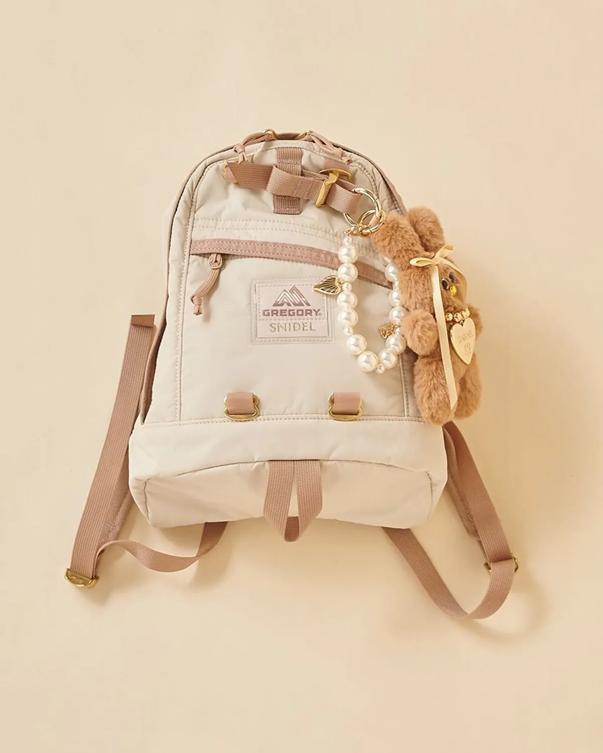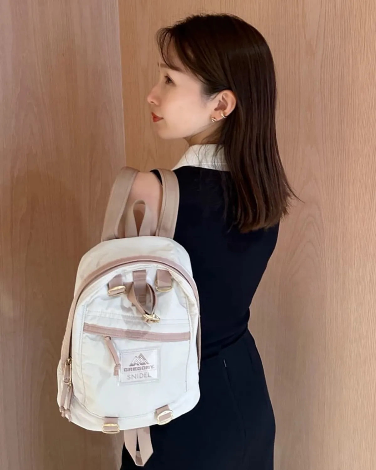 NIDEL x GREGORY 聯名款GREGORY Fine Day系列迷你後背包柔和象牙白 x 粉米色的配色跟SNIDEL家的服裝也很好搭配是一年四季都可以使用的單品這款迷你後背包兼具功能性和舒適性揹起來的舒適度極佳包包點綴著閃粉線製成的 SNIDEL LOGO和金色金屬配件等可愛配件雖然是迷你尺寸但收納容量很足夠非常實用材質外層:100%尼龍內襯:100%尼龍 此商品為預購商品 到貨時間需等待10~21個工作天 不含假日及國定假日 ⚠️急件處理需自行負擔國際運費