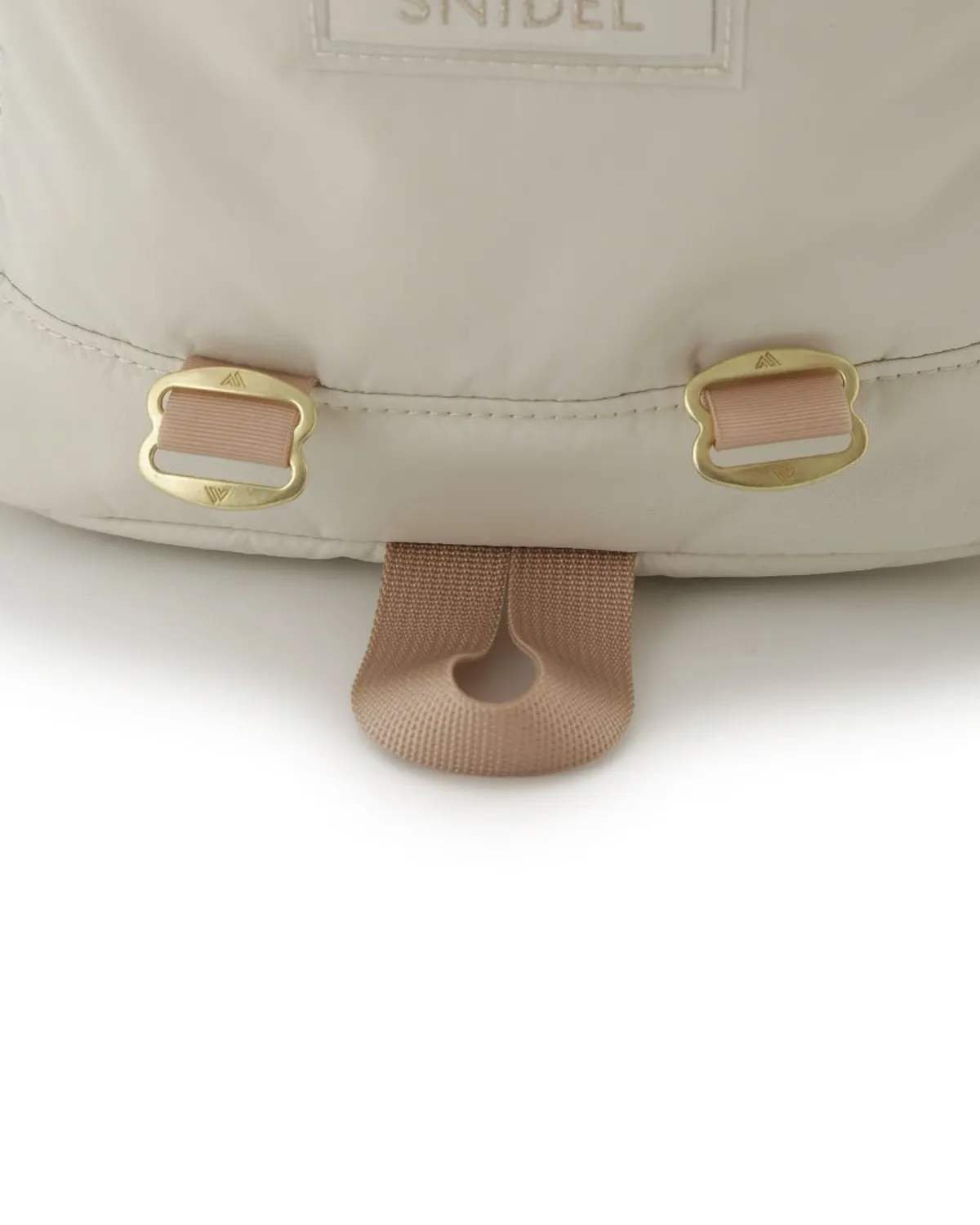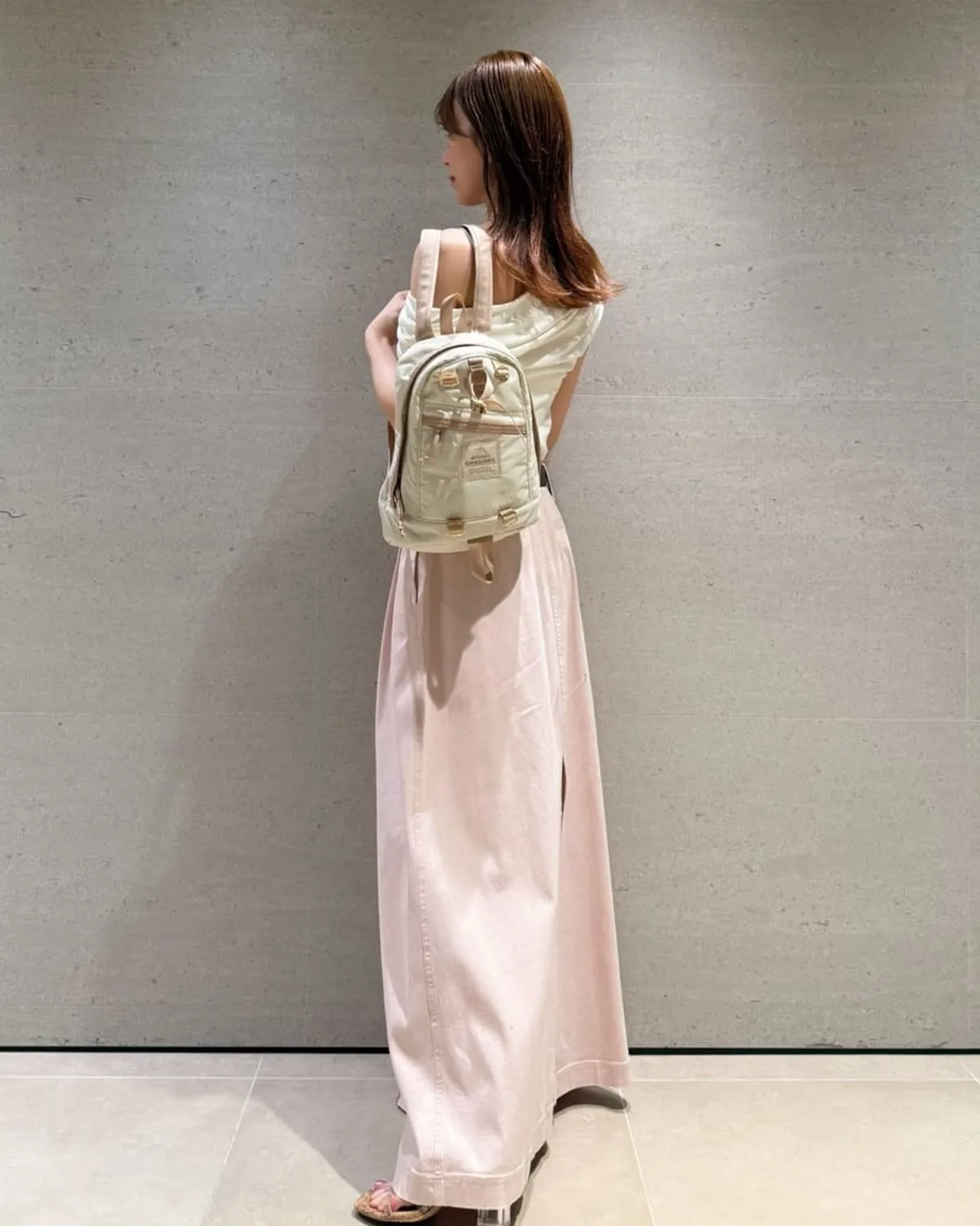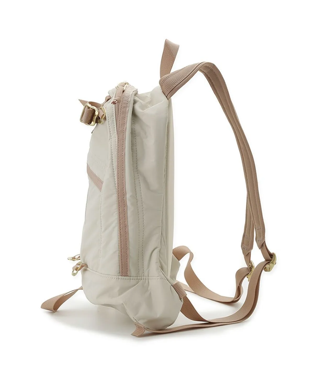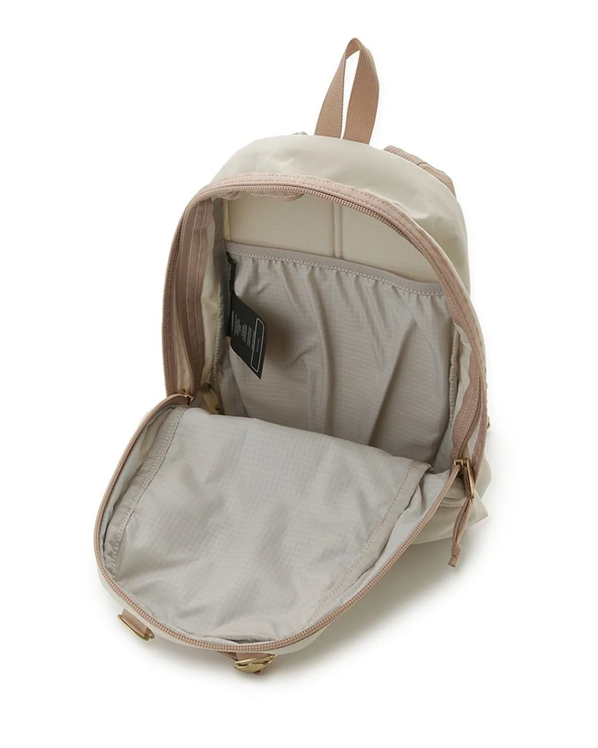 NIDEL x GREGORY 聯名款GREGORY Fine Day系列迷你後背包柔和象牙白 x 粉米色的配色跟SNIDEL家的服裝也很好搭配是一年四季都可以使用的單品這款迷你後背包兼具功能性和舒適性揹起來的舒適度極佳包包點綴著閃粉線製成的 SNIDEL LOGO和金色金屬配件等可愛配件雖然是迷你尺寸但收納容量很足夠非常實用材質外層:100%尼龍內襯:100%尼龍 此商品為預購商品 到貨時間需等待10~21個工作天 不含假日及國定假日 ⚠️急件處理需自行負擔國際運費