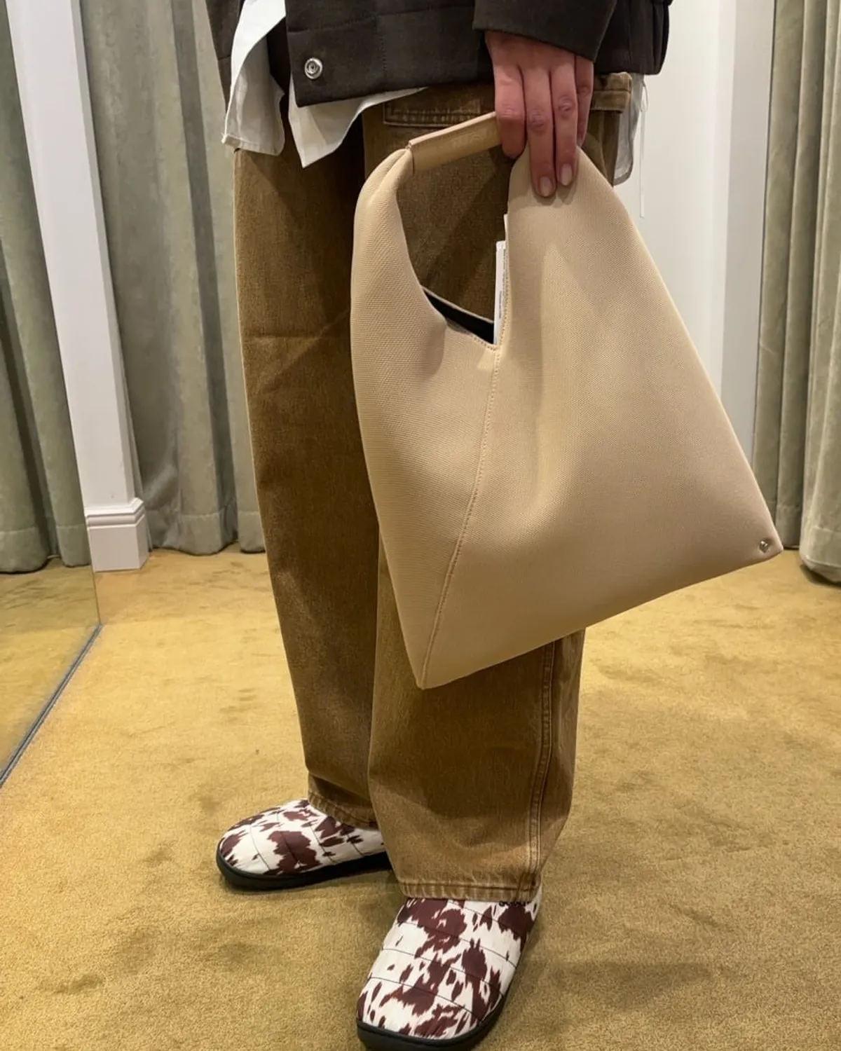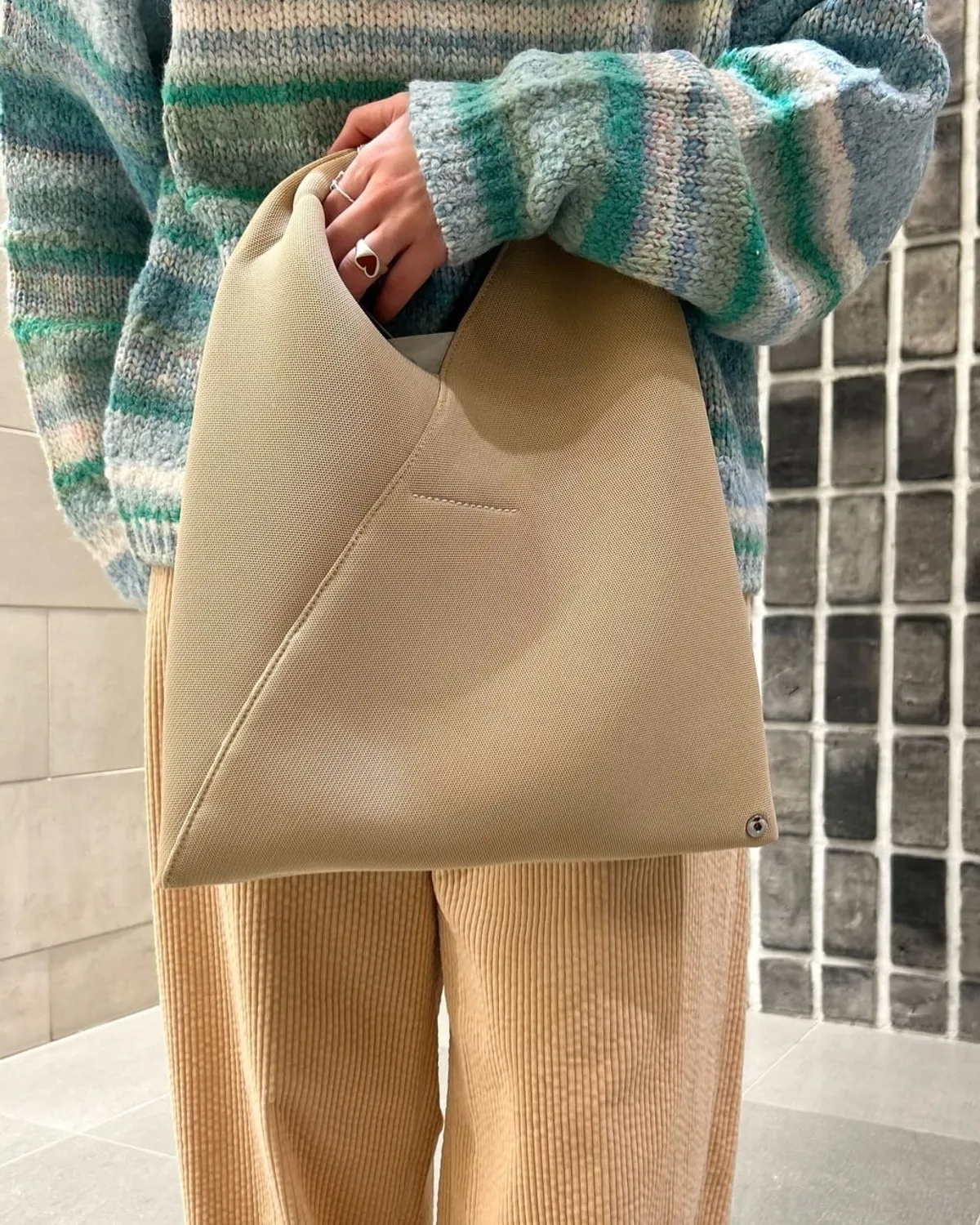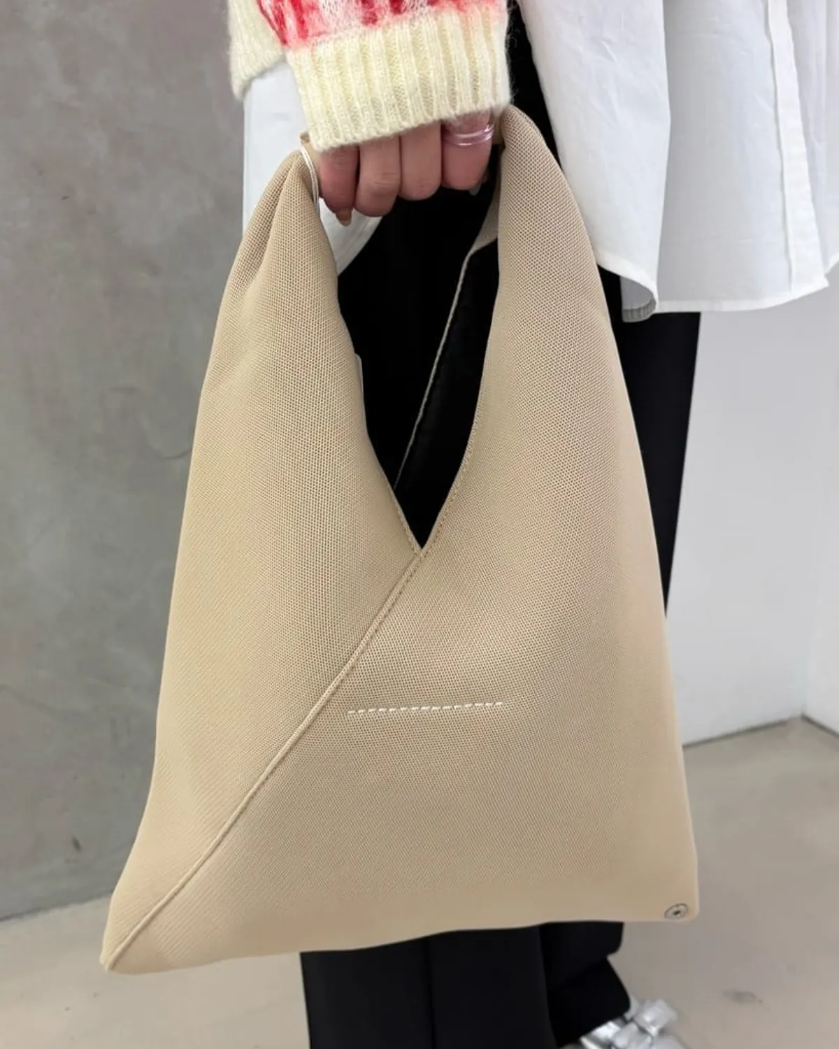 MM6 Maison Margiela Japanese 選品店限定2025年秋冬限定 米色✨這款Japanese採用獨特的三角形造型靈感源自日本傳統摺紙藝術包身邊緣飾有按扣,可透過折疊改變形狀這種時尚又不失經典的顏色能夠完美搭配任何造型包包的尺寸適中,非常適合日常使用無論是送給自己還是送給特別的人都是絕佳的禮物🎁尺寸:33cm x 26cm x 8cm材質:聚酯纖維、牛皮 此商品為預購商品 到貨時間需等待14~21個工作天 不含假日及國定假日 ⚠️急件處理需自行負擔國際運費