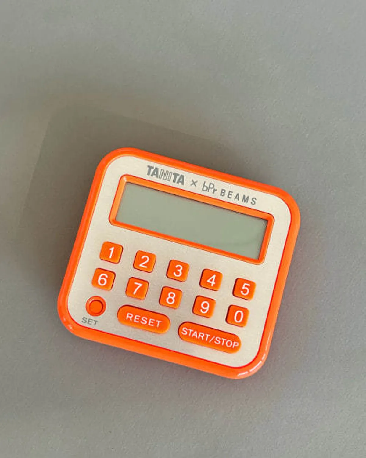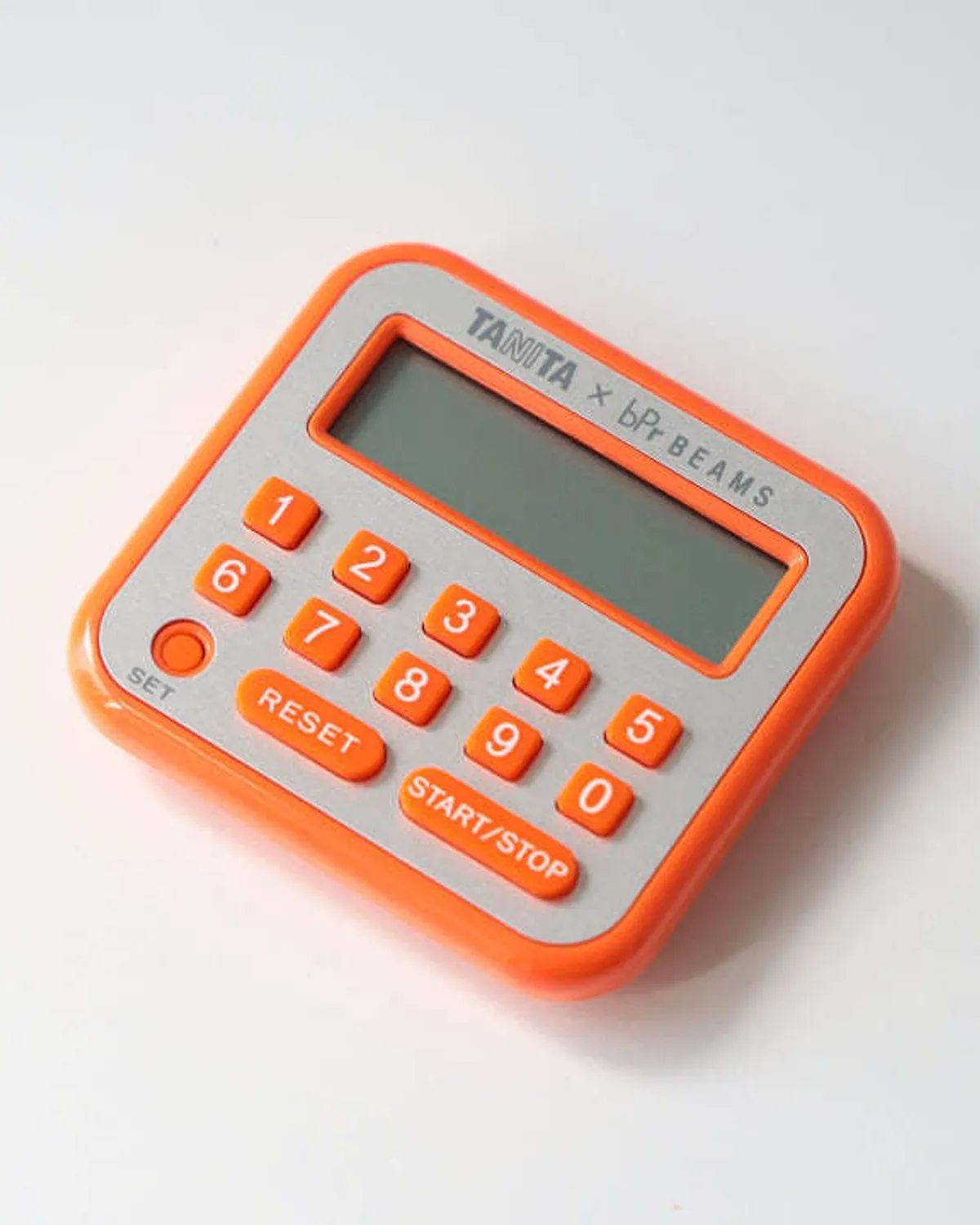 BEAMS與日本綜合健康企業Tanita初聯名!全系列使用BEAMS的品牌代表色亮橘色整體帶點復古氛圍感定時器功能:倒數計時方式(最小1秒,最大99小時99分99秒)鬧鐘:電子蜂鳴器聲音,約60秒70dB以上電源:1.5VDC(LR44鹼性電池x1)・電池壽命:約 1 年・使用溫度範圍:0 至 40℃・時鐘功能:24 小時顯示・時鐘精度:每月 ±30 秒(23℃±5℃)・秒錶功能:計數方式(最小1秒,最長 99 小時 99 分 99 秒)數量限定品!售完為止