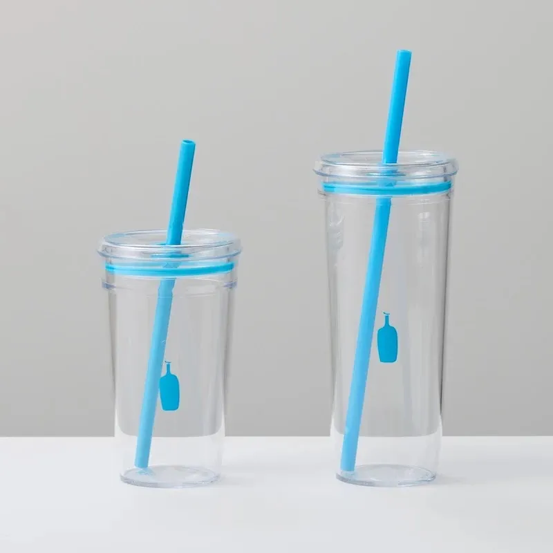 玻璃杯的設計元素來自於 Blue Bottle Coffee使用的外帶杯