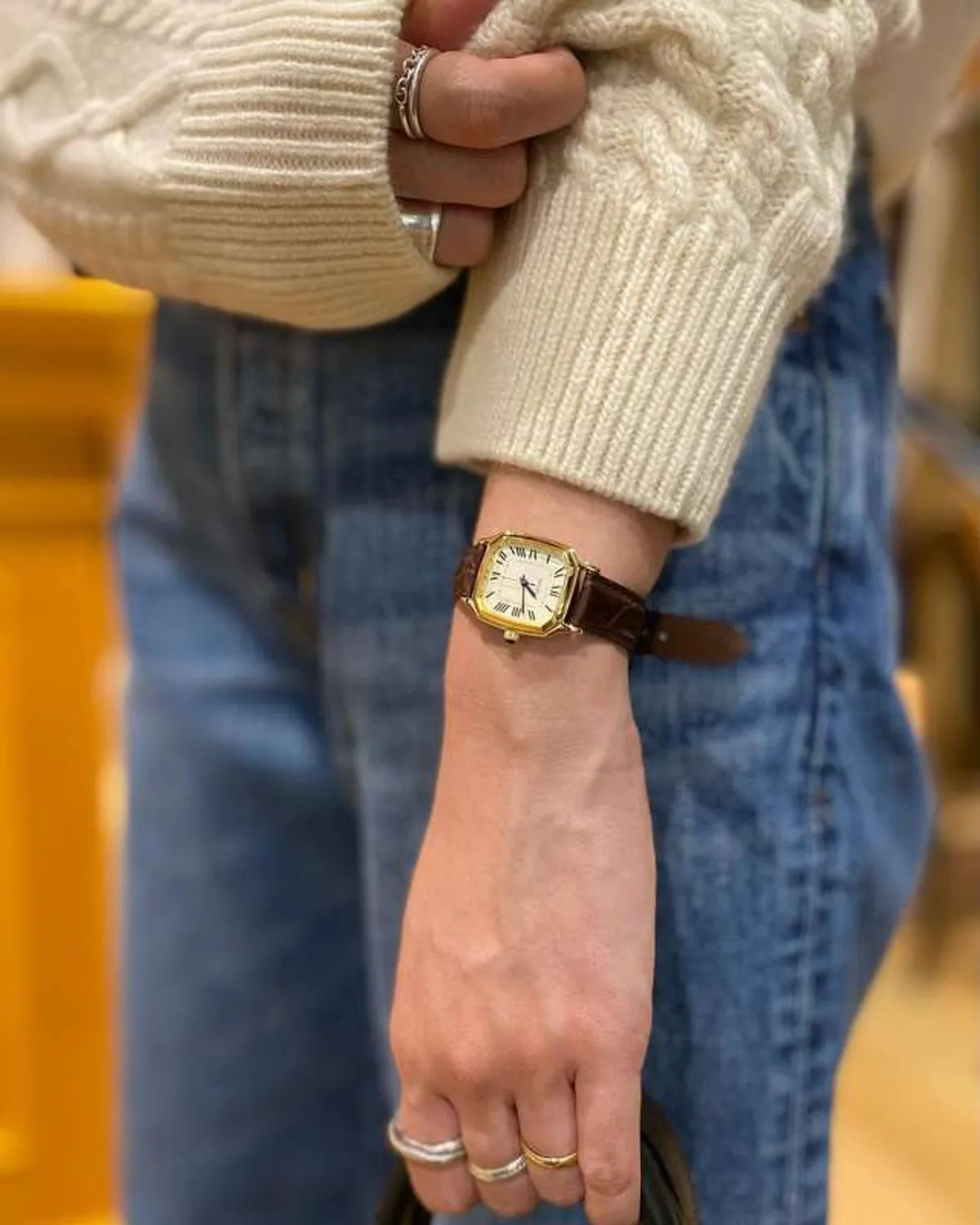SEIKO x Shinzone 聯名手錶再入荷✨ 復古感的方錶金邊設計 配上咖啡色的鱷魚皮紋錶帶 跟高級精品錶一樣好有質感 好美啊😍 而且這款是從零件到加工全都是日本製 也是可以戴很久也不會退流行的款式 真的勸敗指數⭐️⭐️⭐️⭐️⭐️😂
