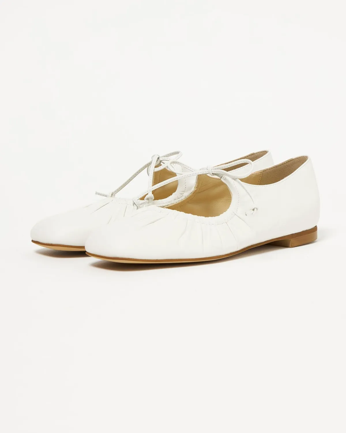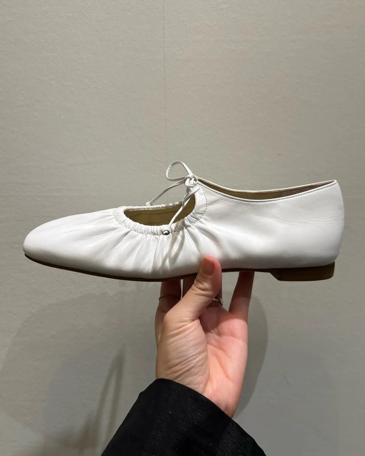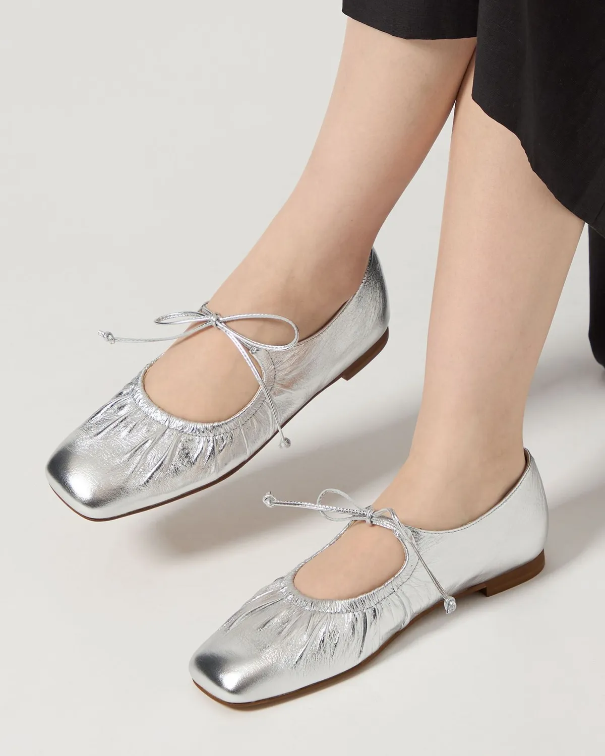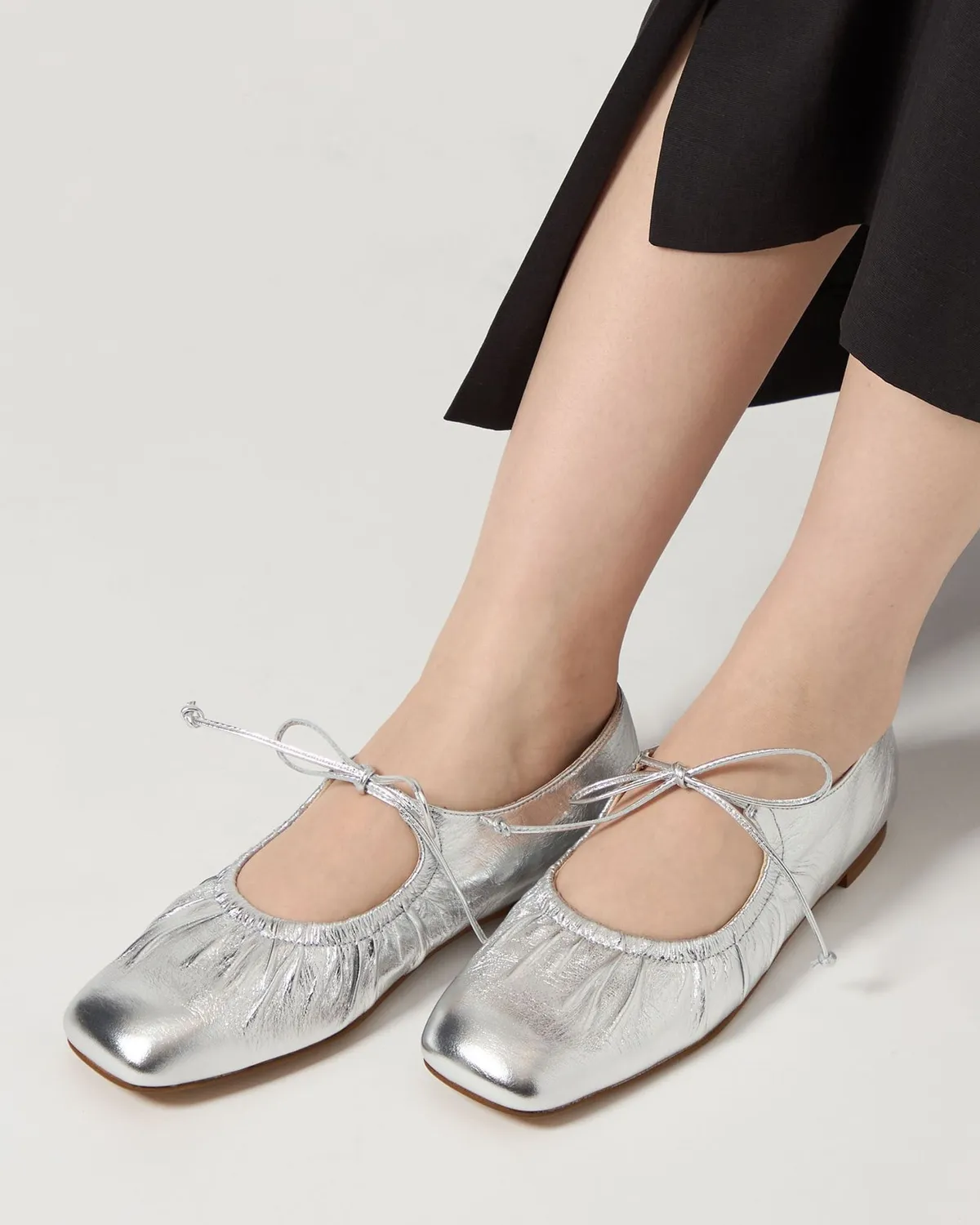 這雙芭蕾舞鞋採用細繩的綁帶設計带有皺摺的鞋面演展現出高雅質感和休閒感腳尖採用具有厚度的軟方形不會太甜給人以清爽的印象柔軟的腳感和輕便的穿着感也是魅力所在日本製尺寸 22cm~25cm材質黑色:光滑感皮革 / 真皮白色:光滑感皮革 / 真皮銀色:鋁箔感皮革 / 真皮 此商品為預購商品 到貨時間需等待10~21個工作天 不含假日及國定假日 ⚠️急件處理需自行負擔國際運費