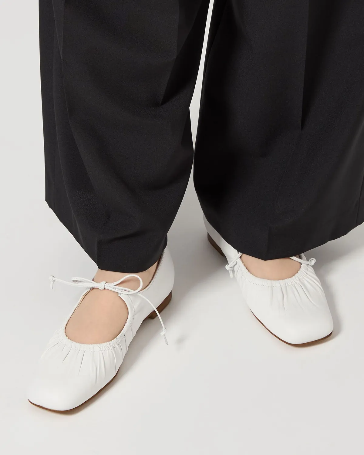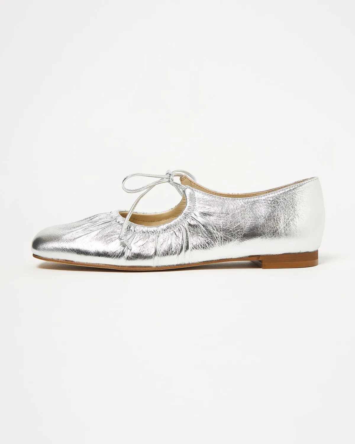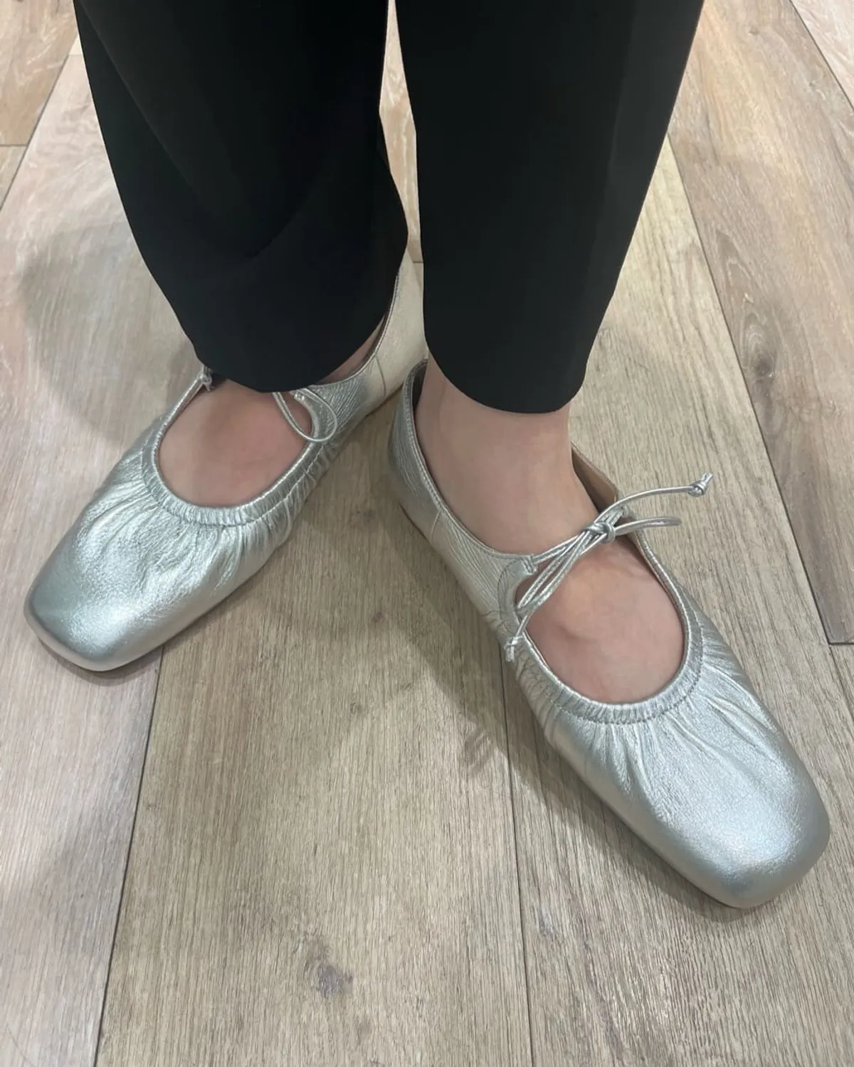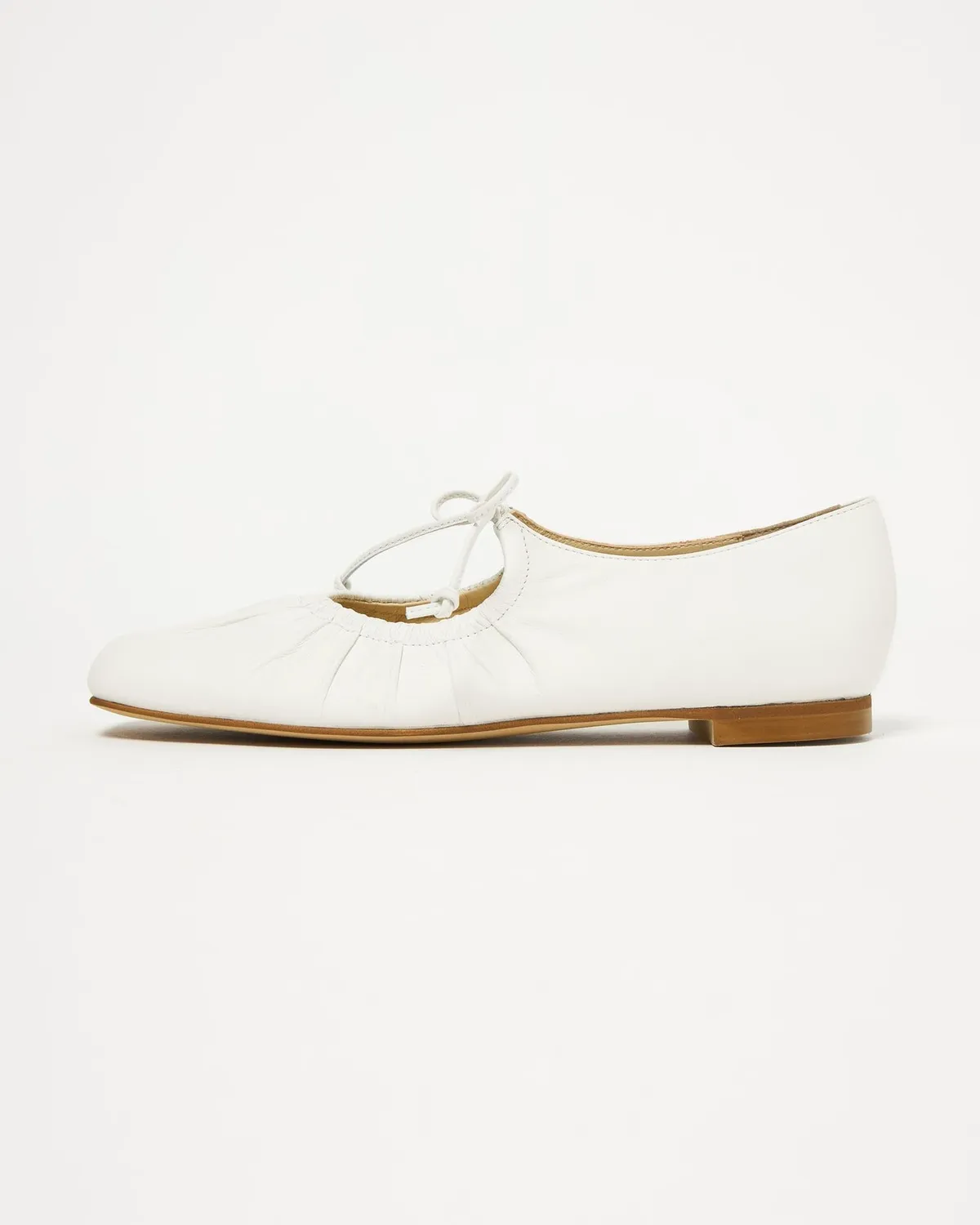 這雙芭蕾舞鞋採用細繩的綁帶設計带有皺摺的鞋面演展現出高雅質感和休閒感腳尖採用具有厚度的軟方形不會太甜給人以清爽的印象柔軟的腳感和輕便的穿着感也是魅力所在日本製尺寸 22cm~25cm材質黑色:光滑感皮革 / 真皮白色:光滑感皮革 / 真皮銀色:鋁箔感皮革 / 真皮 此商品為預購商品 到貨時間需等待10~21個工作天 不含假日及國定假日 ⚠️急件處理需自行負擔國際運費