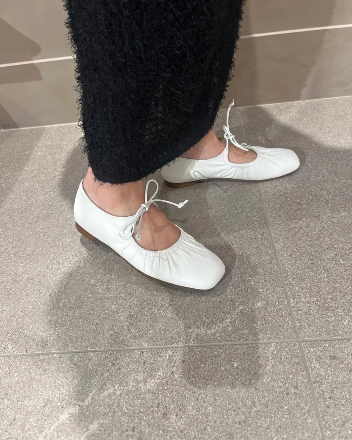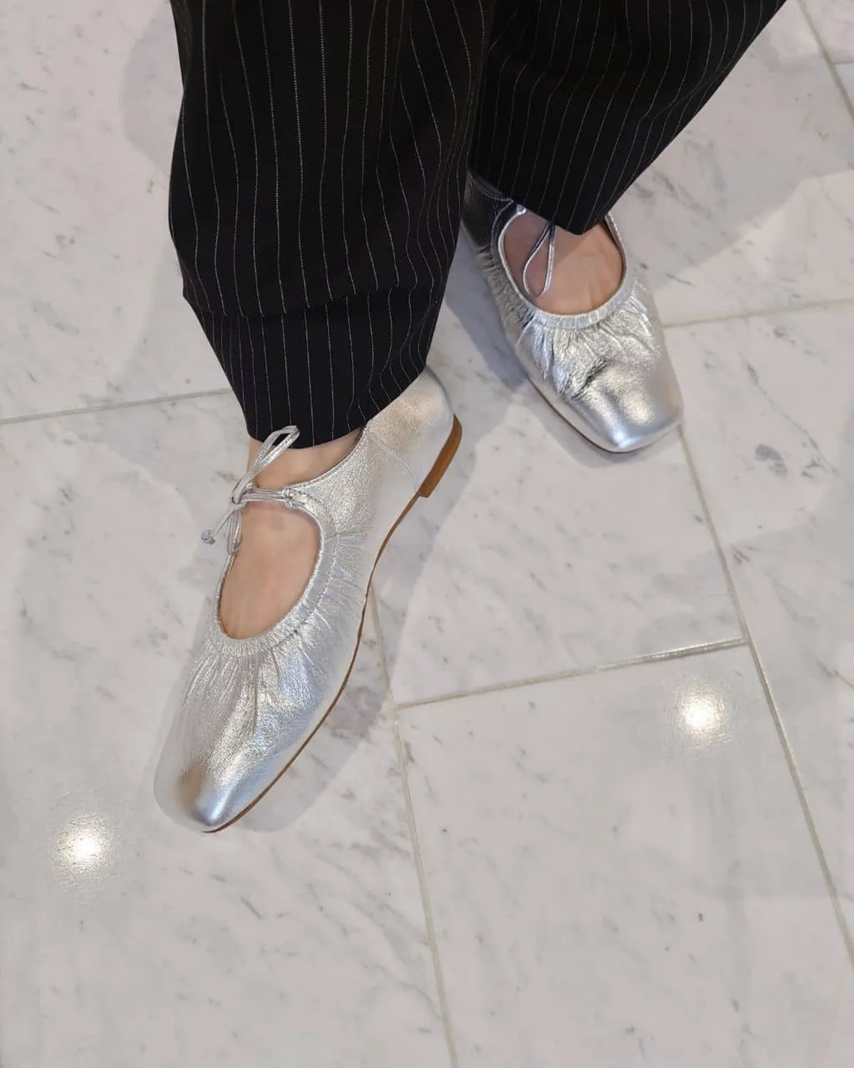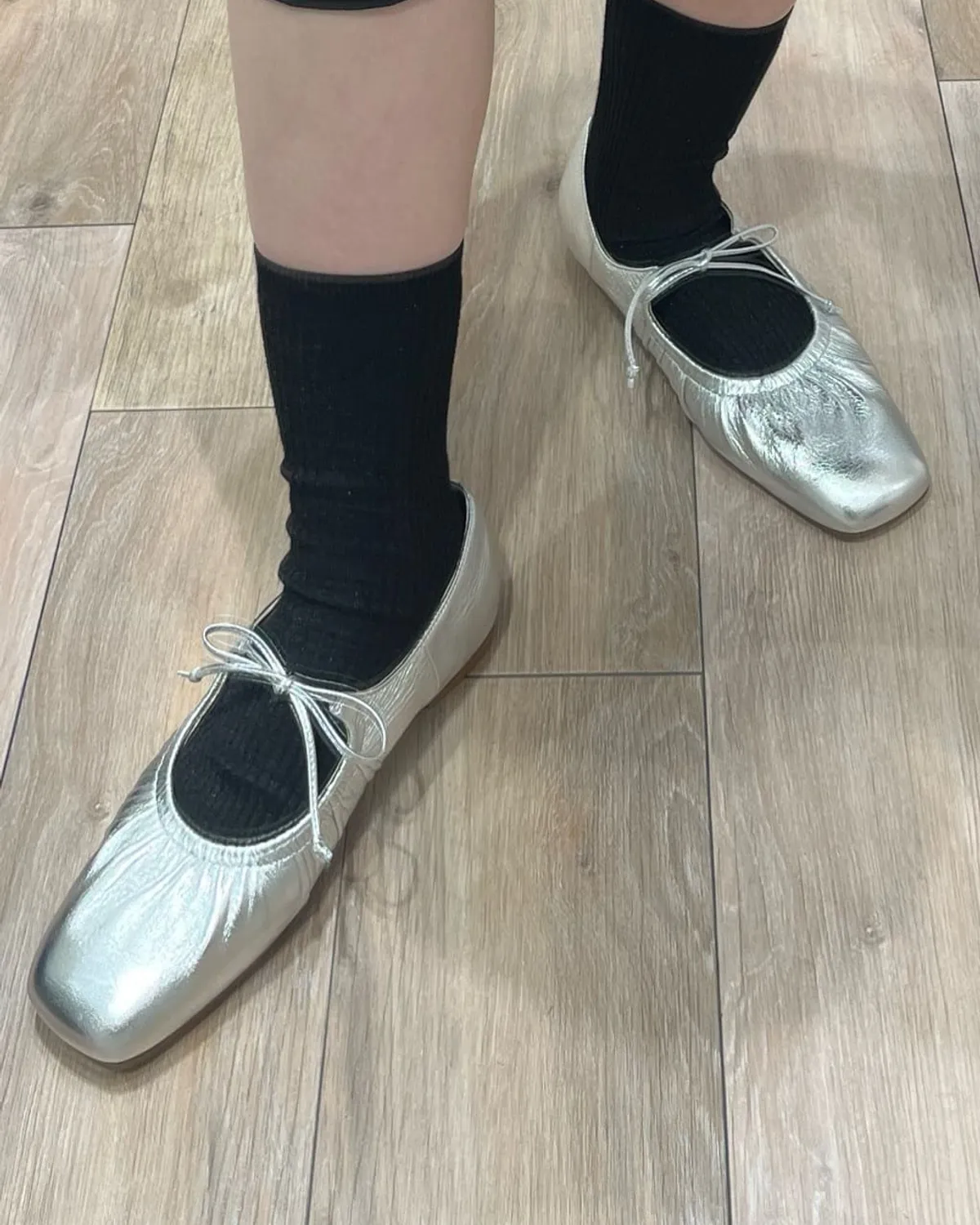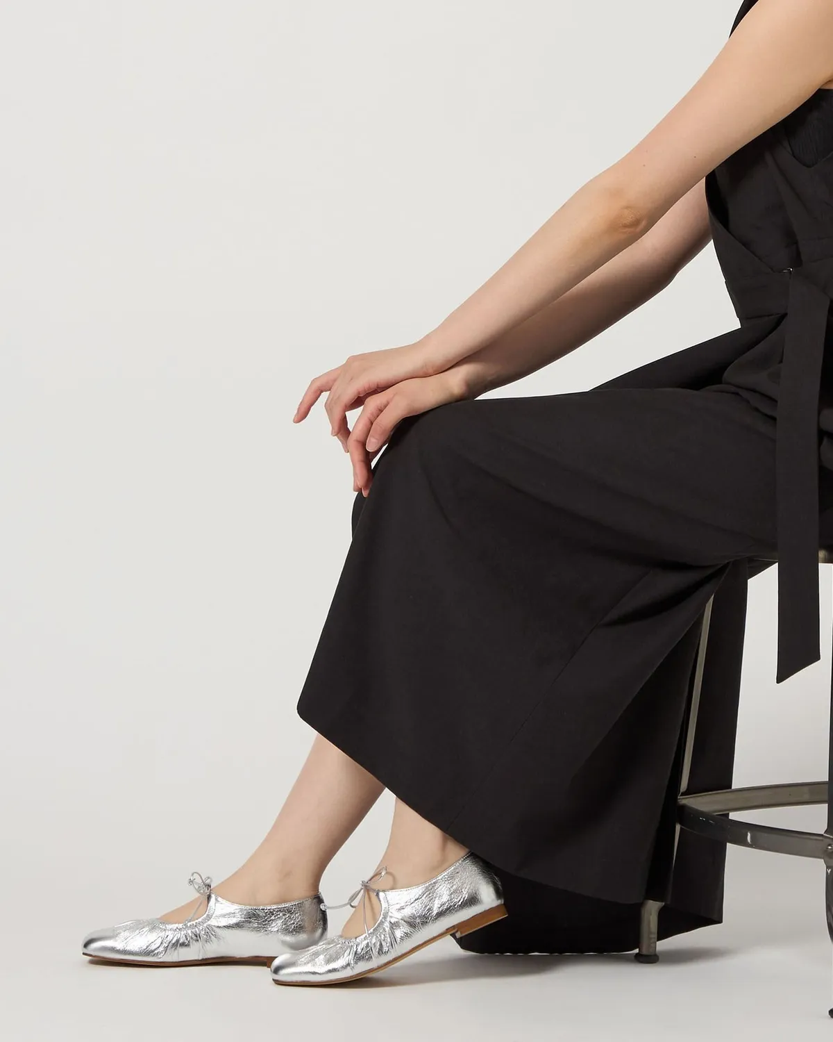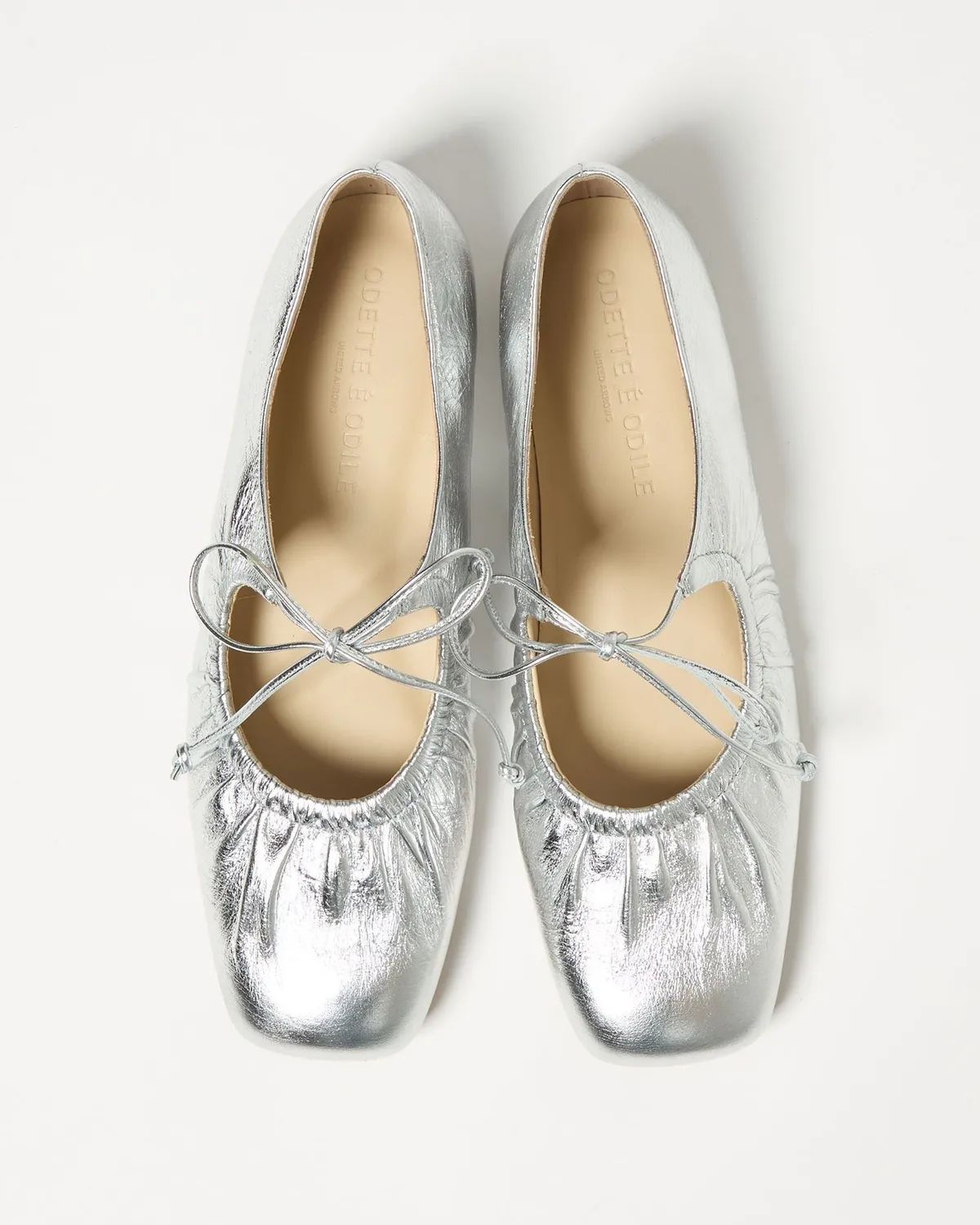 這雙芭蕾舞鞋採用細繩的綁帶設計带有皺摺的鞋面演展現出高雅質感和休閒感腳尖採用具有厚度的軟方形不會太甜給人以清爽的印象柔軟的腳感和輕便的穿着感也是魅力所在日本製尺寸 22cm~25cm材質黑色:光滑感皮革 / 真皮白色:光滑感皮革 / 真皮銀色:鋁箔感皮革 / 真皮 此商品為預購商品 到貨時間需等待10~21個工作天 不含假日及國定假日 ⚠️急件處理需自行負擔國際運費