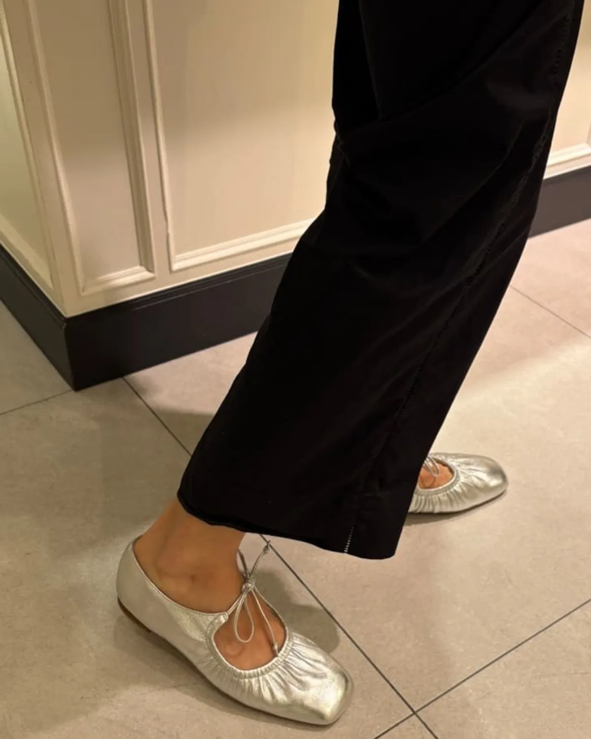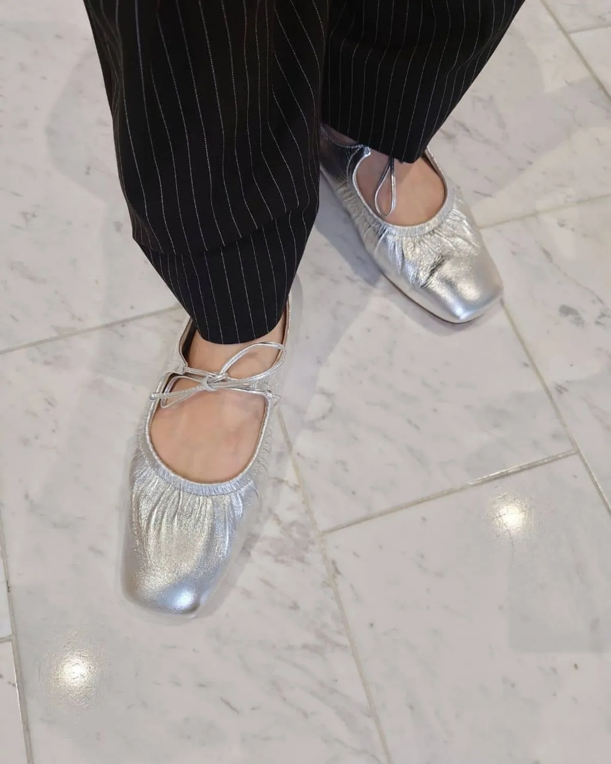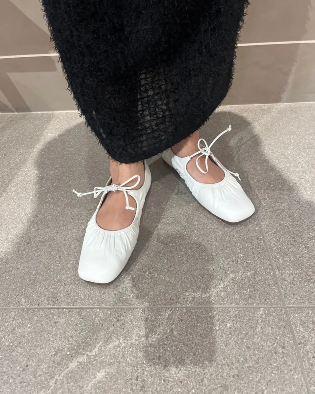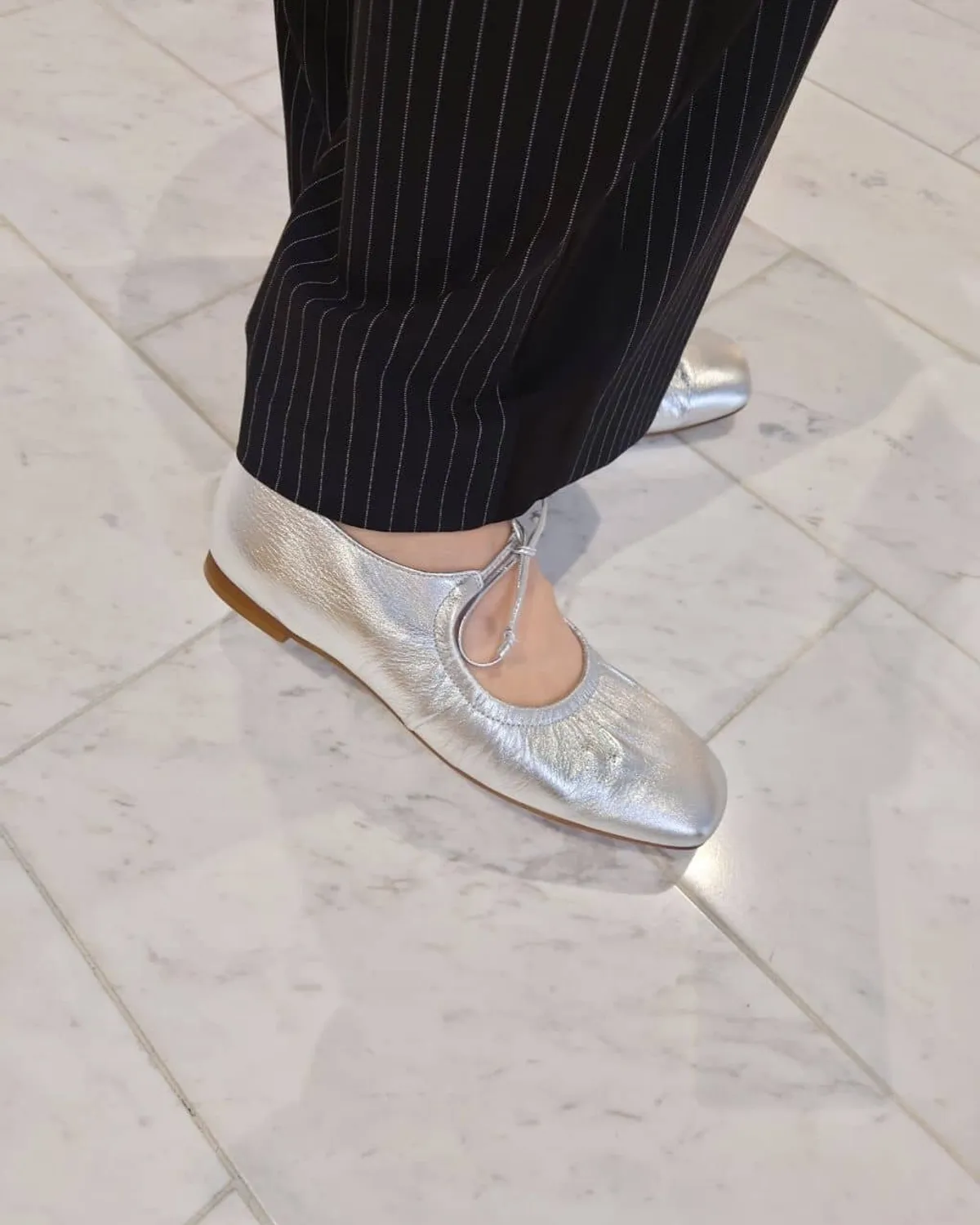 這雙芭蕾舞鞋採用細繩的綁帶設計带有皺摺的鞋面演展現出高雅質感和休閒感腳尖採用具有厚度的軟方形不會太甜給人以清爽的印象柔軟的腳感和輕便的穿着感也是魅力所在日本製尺寸 22cm~25cm材質黑色:光滑感皮革 / 真皮白色:光滑感皮革 / 真皮銀色:鋁箔感皮革 / 真皮 此商品為預購商品 到貨時間需等待10~21個工作天 不含假日及國定假日 ⚠️急件處理需自行負擔國際運費