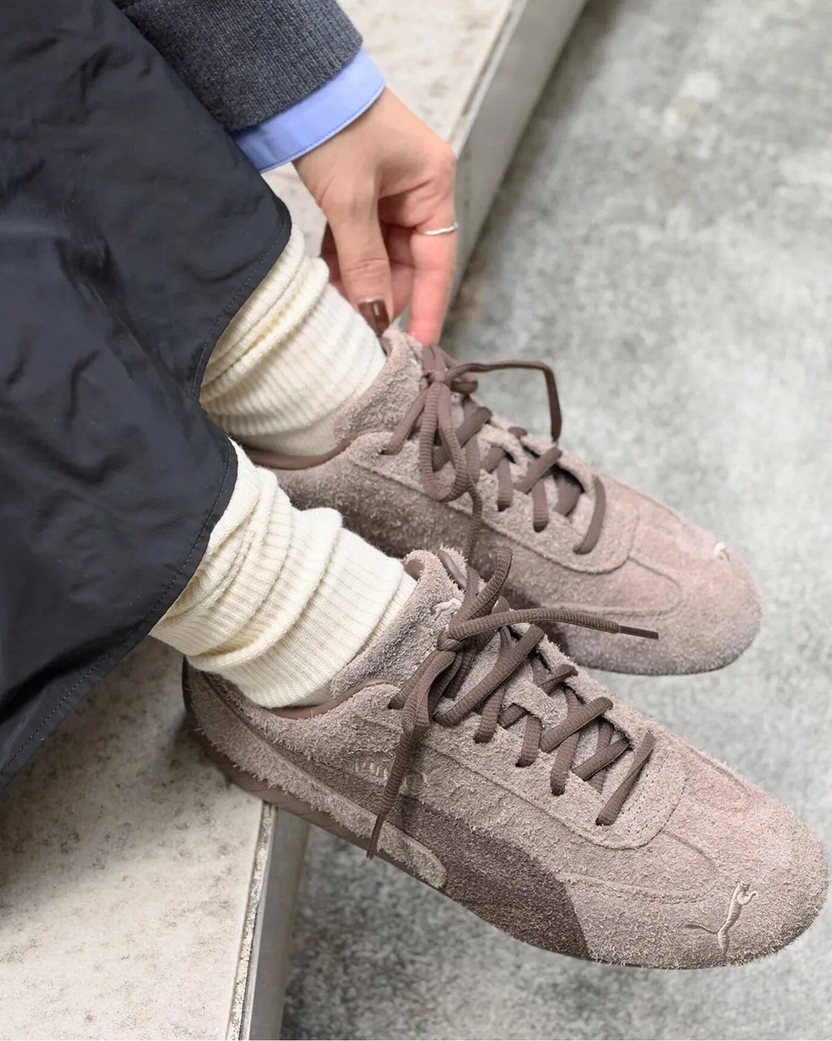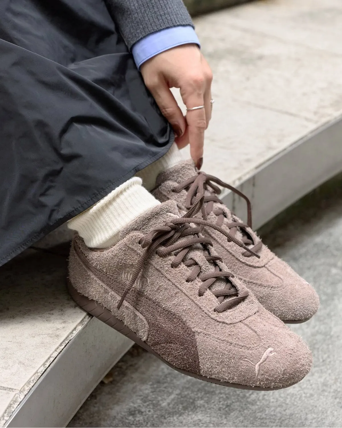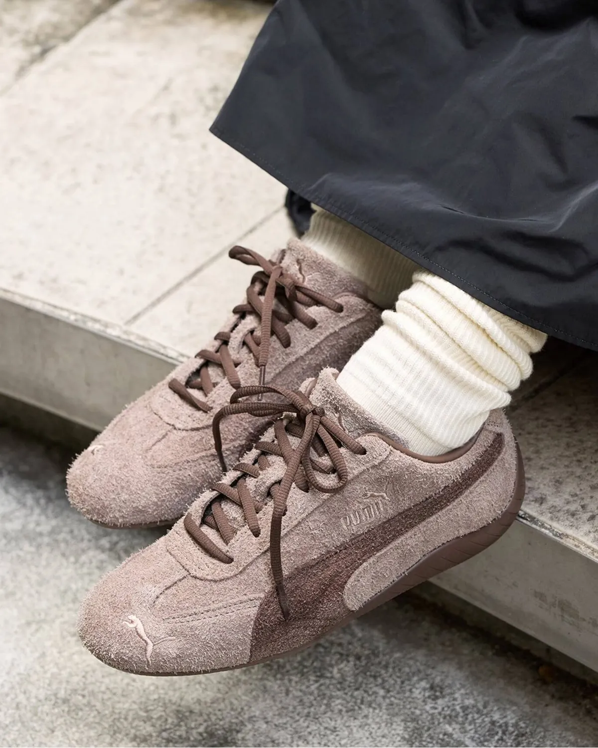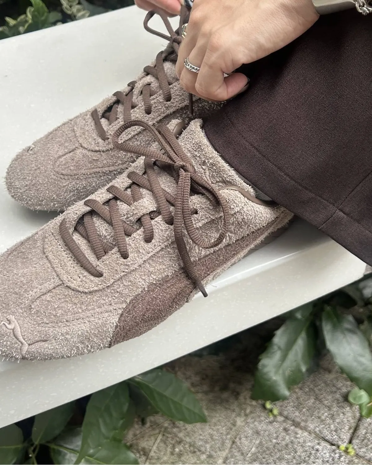 PUMA SPEED CAT 選品店限定款鞋面採用灰褐色的絨布材質LOGO採用略短毛的巧克力色絨布材質同色系卻又對比鮮明的配色與任何風格都能完美搭配鞋款採用仿舊處理,呈現復古外觀這款獨家款式還配有三種不同的鞋帶 此商品為預購商品 到貨時間需等待14~21個工作天 不含假日及國定假日 ⚠️急件處理需自行負擔國際運費