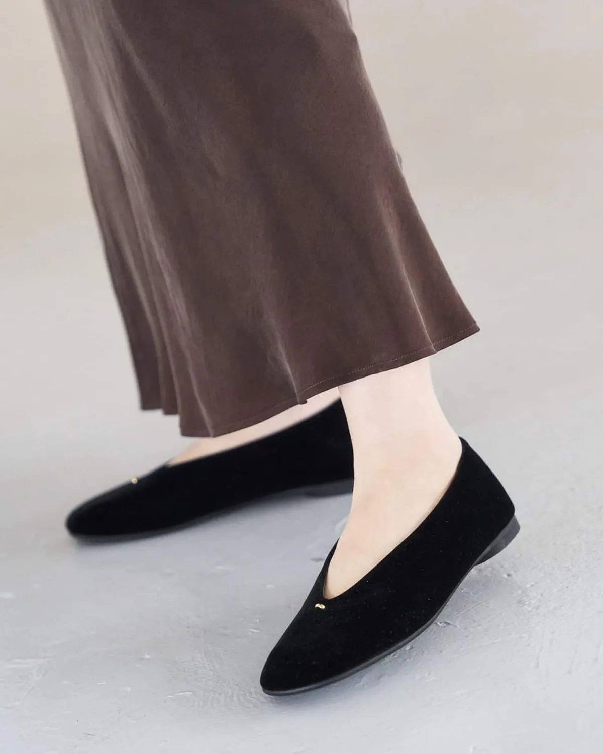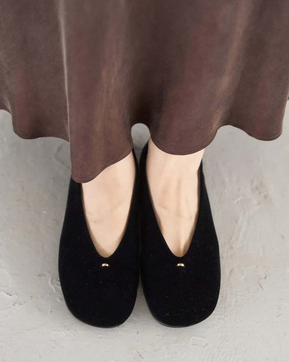 這款平底鞋採用秋冬氛圍感的天鵝絨材質打造出簡潔現代的外觀斜頭採用原廠木質鞋楦精心打造略呈方形寬頭,穿著舒適非常推薦給腳寬的朋友鞋芯最小化帶來柔軟舒適的穿著體驗日本製鞋面材質:合成纖維鞋底材質:合成鞋底 此商品為預購商品 到貨時間需等待14~21個工作天 不含假日及國定假日 ⚠️急件處理需自行負擔國際運費
