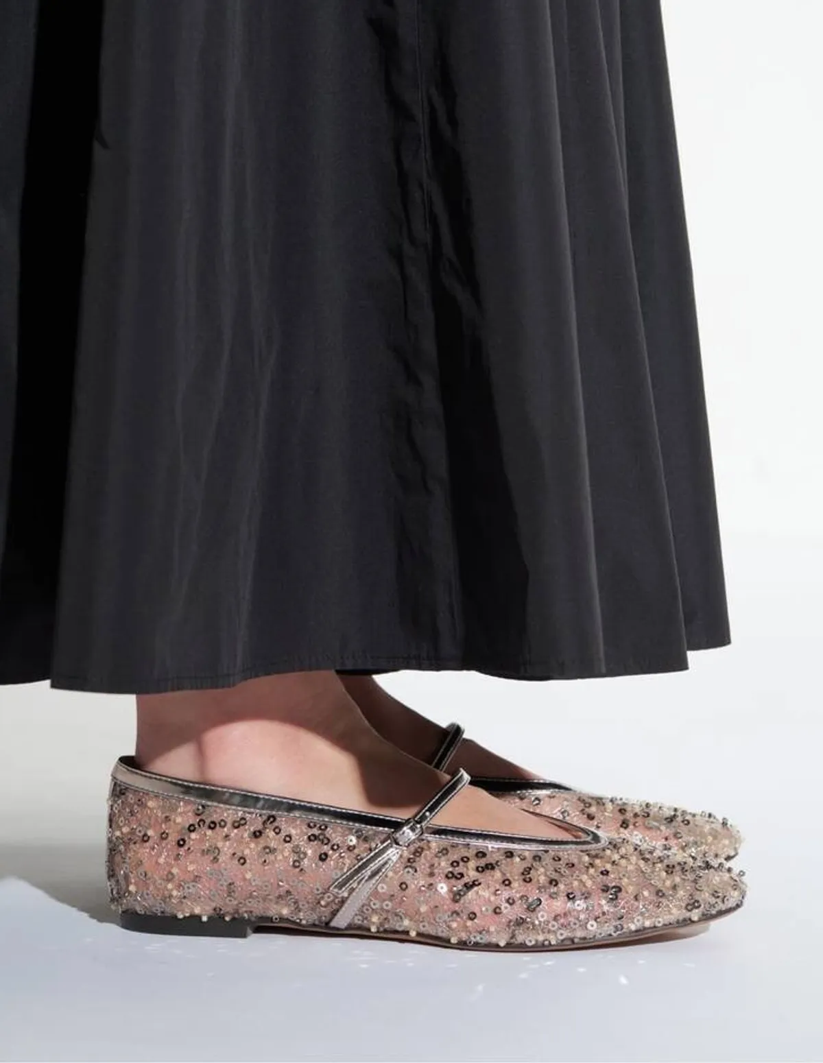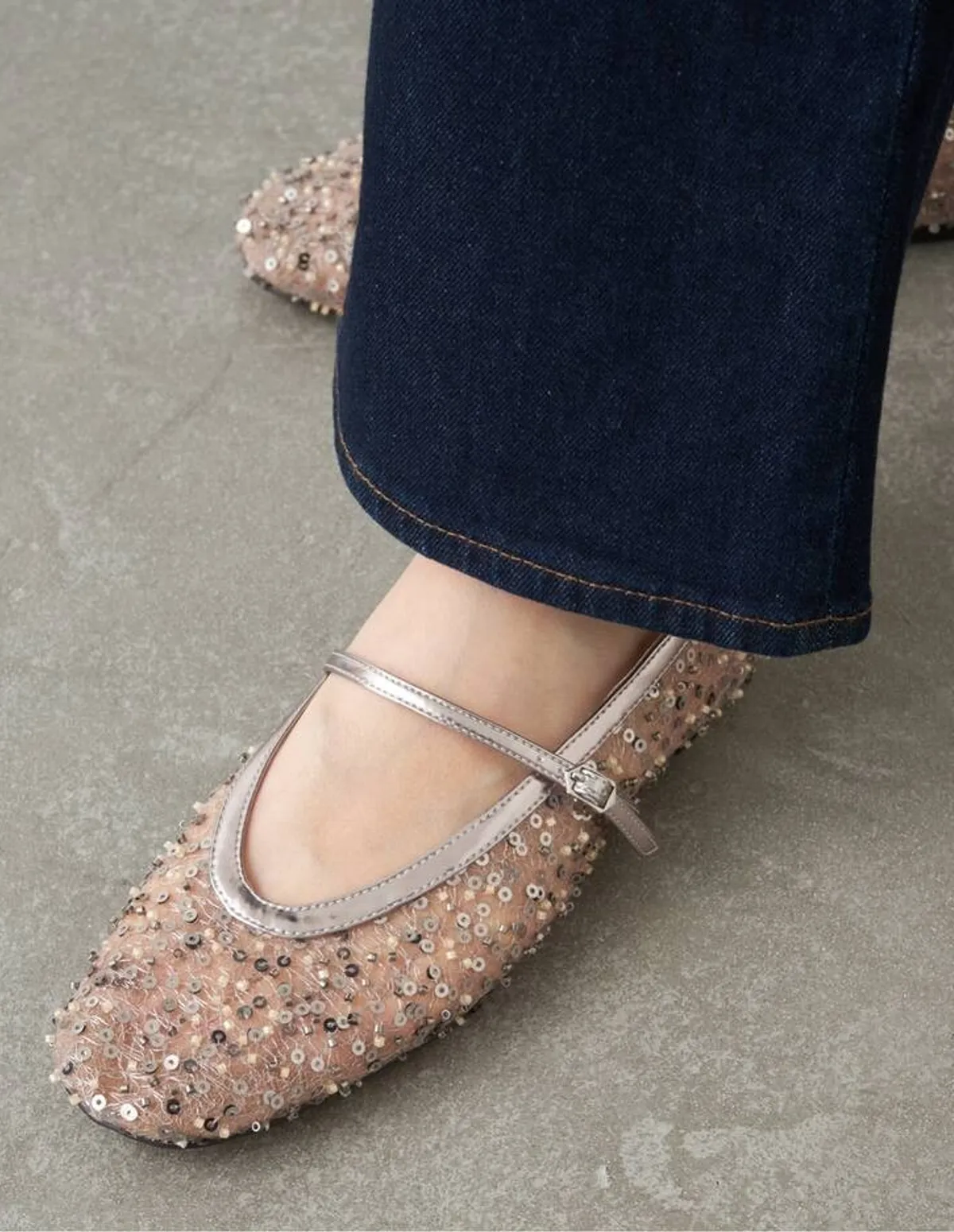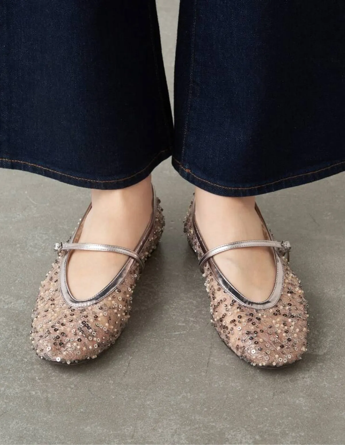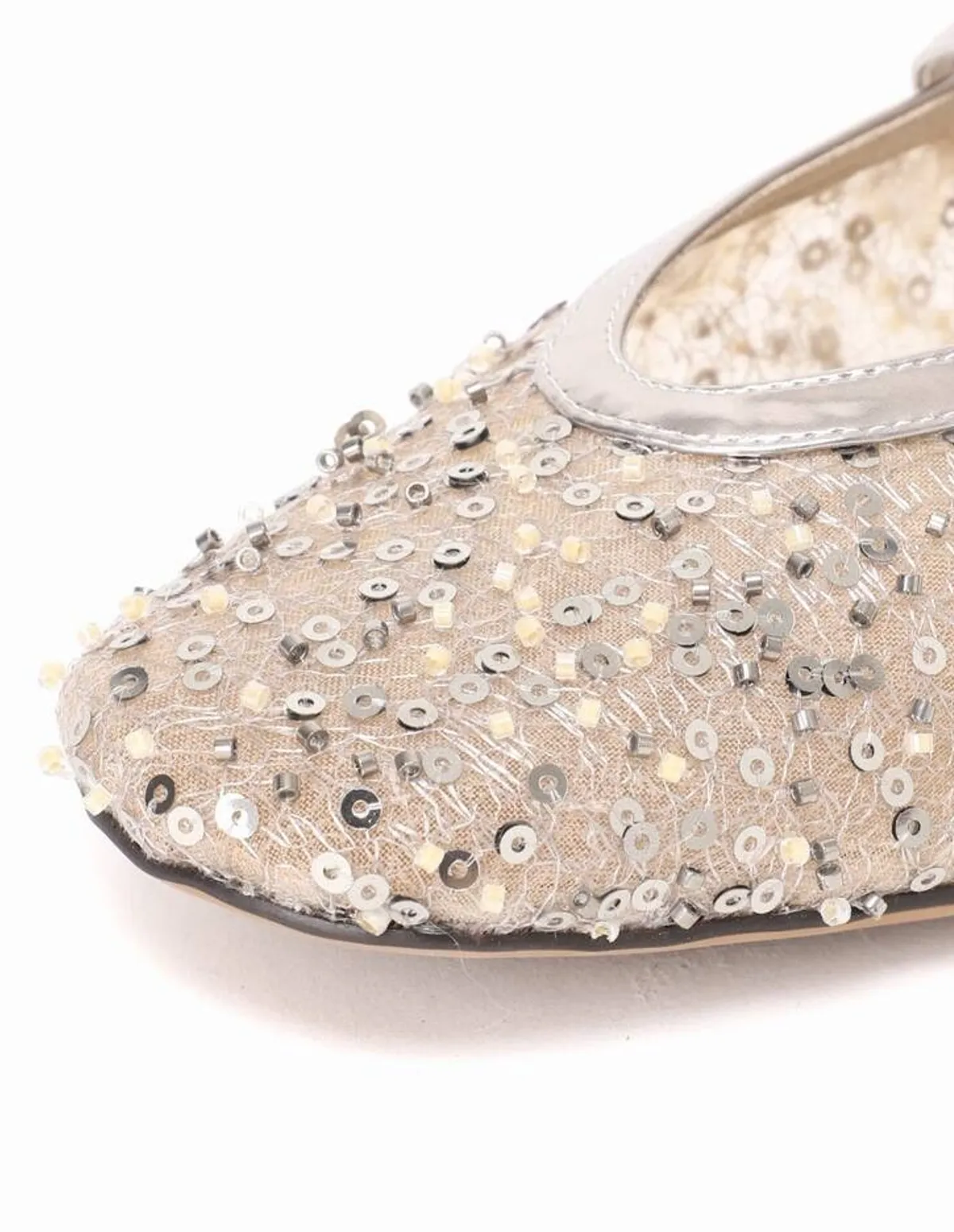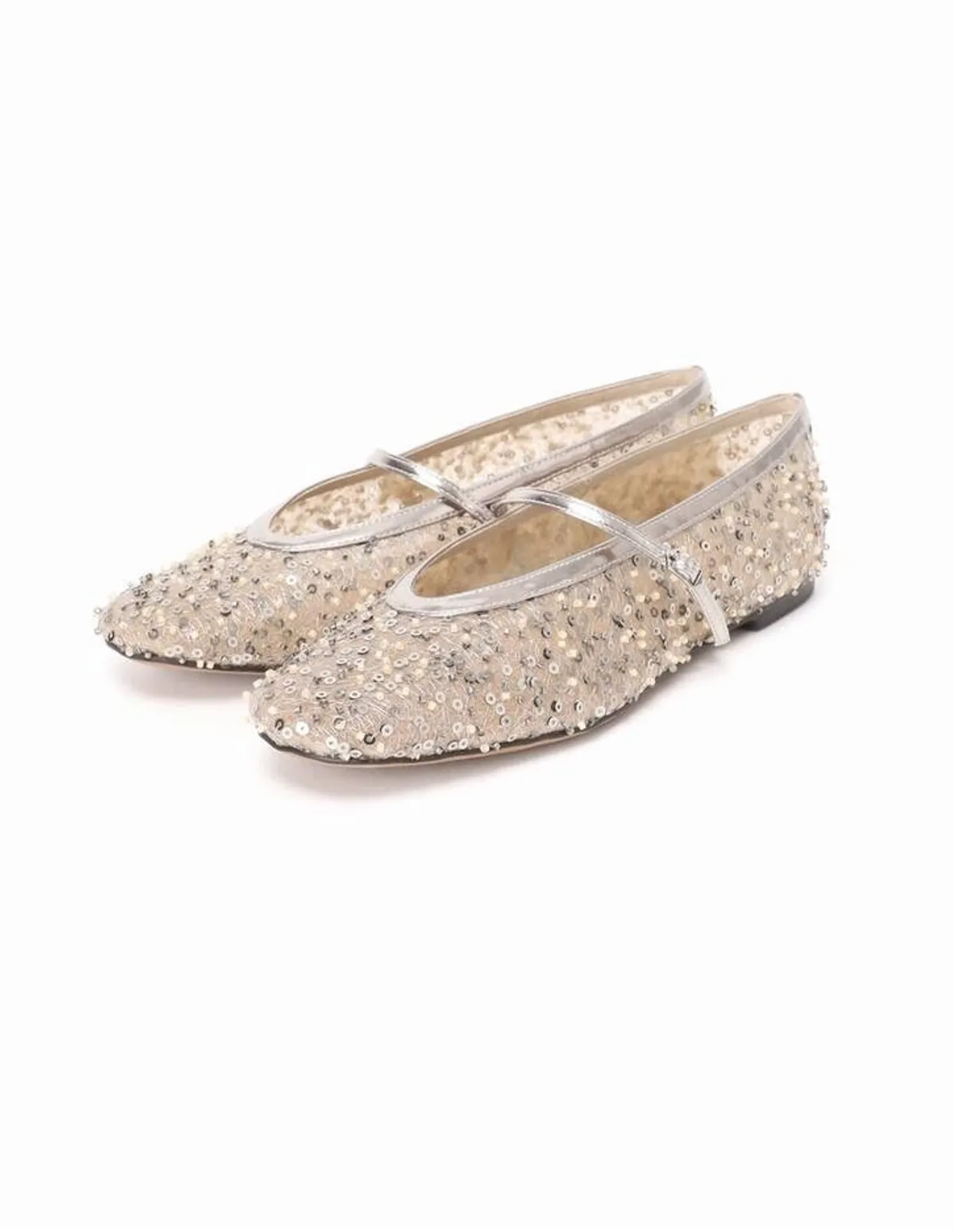 採用精緻的鋼珠、珍珠、蕾絲和薄紗拼接而成打造輕盈飄逸的視覺效果銀色串珠增添一絲低調的光澤輕盈的薄紗鞋底則帶來一絲輕盈感是休閒裝扮的完美選擇✨鞋面材質:合成纖維鞋底材質:合成材質 此商品為預購商品 到貨時間需等待14~21個工作天 不含假日及國定假日 ⚠️急件處理需自行負擔國際運費