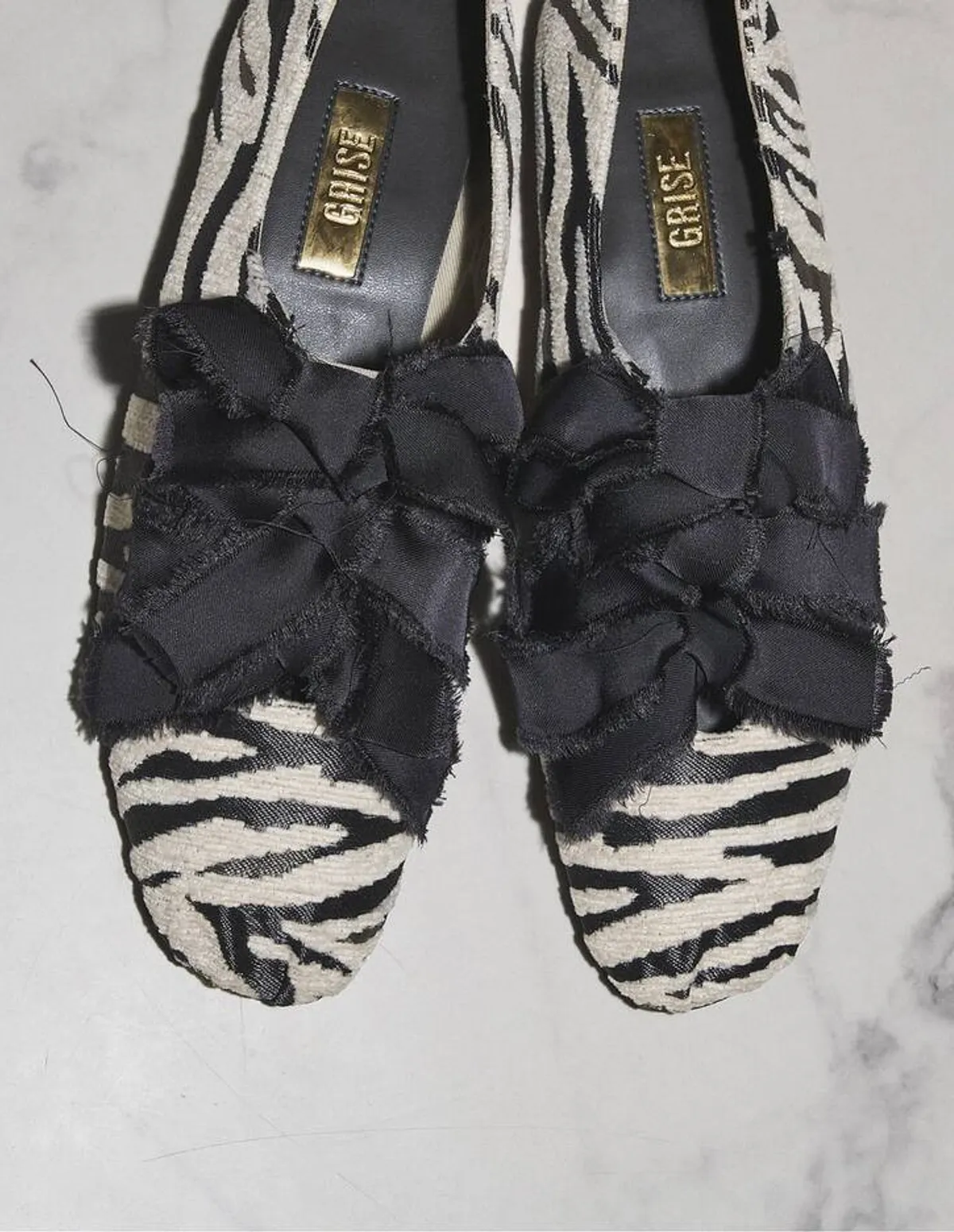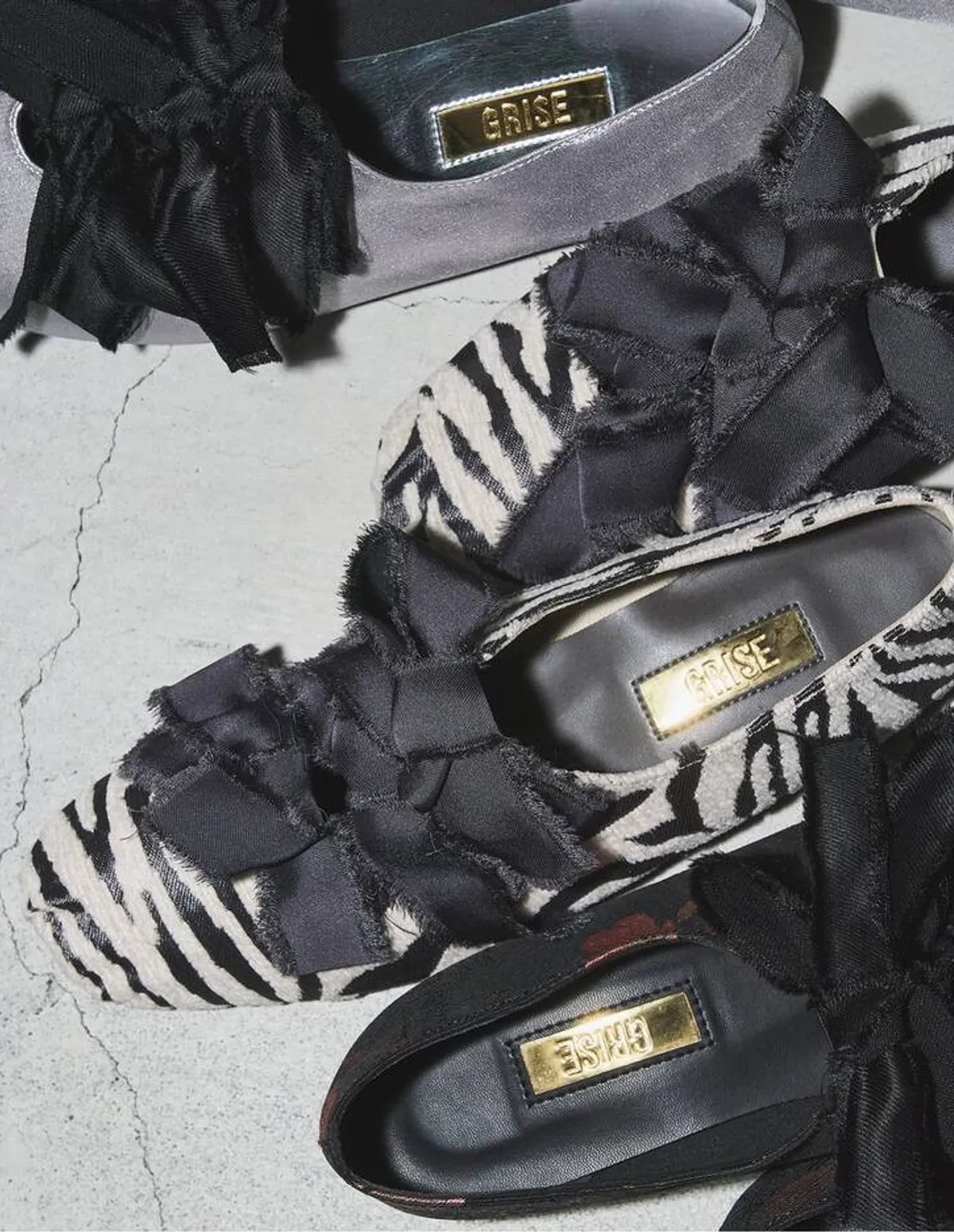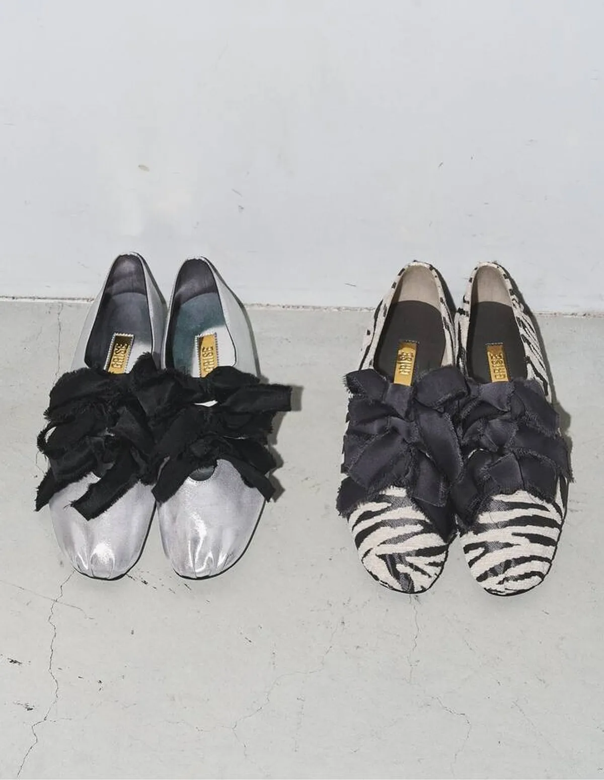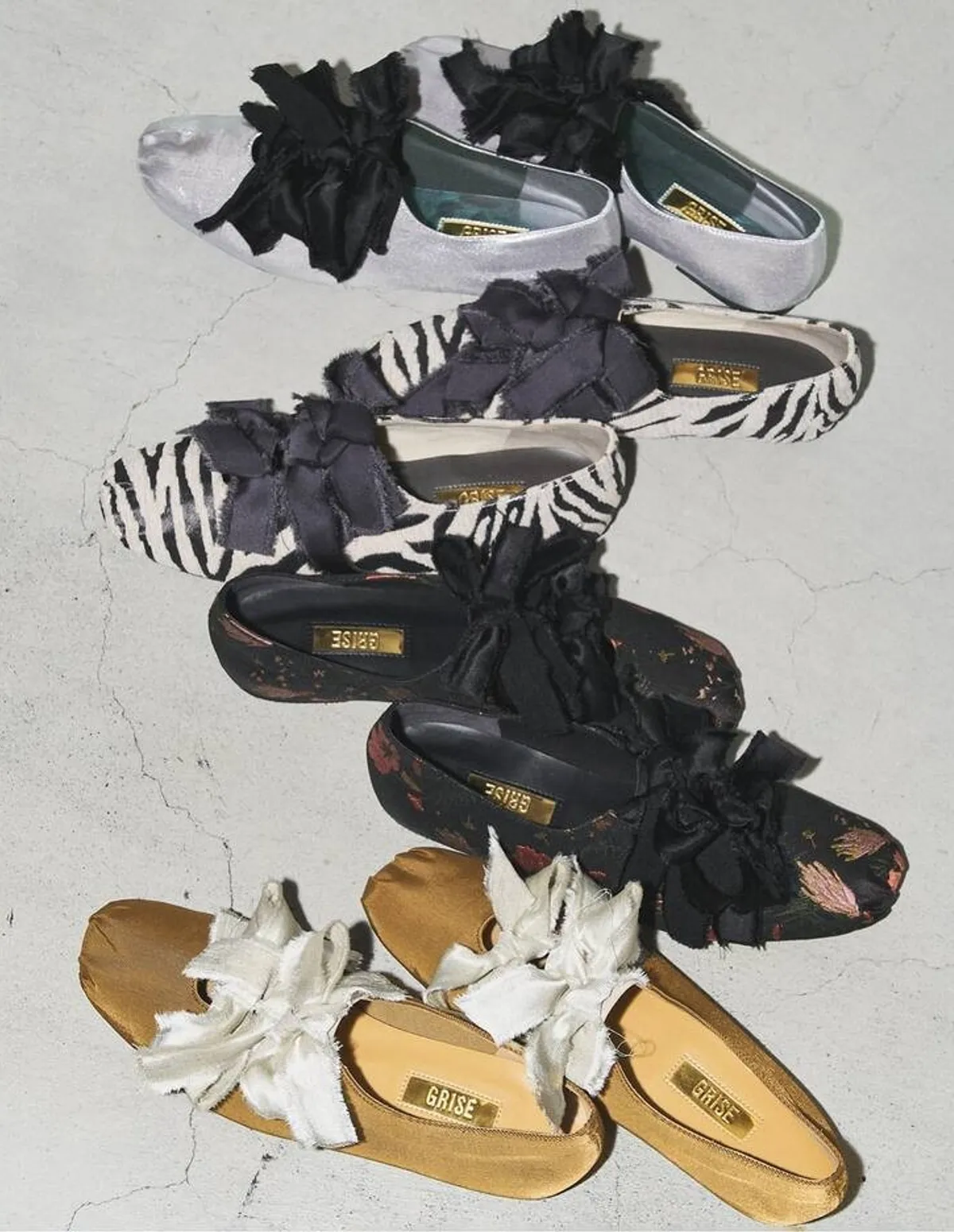 GRISE網路+門市限定款備受歡迎的米色和銀色回歸全新斑馬紋和植物印花也已上架為您的時尚造型增添亮點採用手工製作的緞帶散發出復古氣息腳跟和鞋尖可拆卸,鞋頭採用收攏設計帶來柔軟舒適的穿搭體驗,宛如真正的芭蕾舞鞋橡膠鞋面貼合腳背,穿著舒適鞋跟可折疊設計,可以拖鞋方式穿無論是赤腳穿著還是搭配褲裝都非常適合日本製鞋面材質:合成纖維鞋底材質:合成材質 此商品為預購商品 到貨時間需等待14~21個工作天 不含假日及國定假日 ⚠️急件處理需自行負擔國際運費