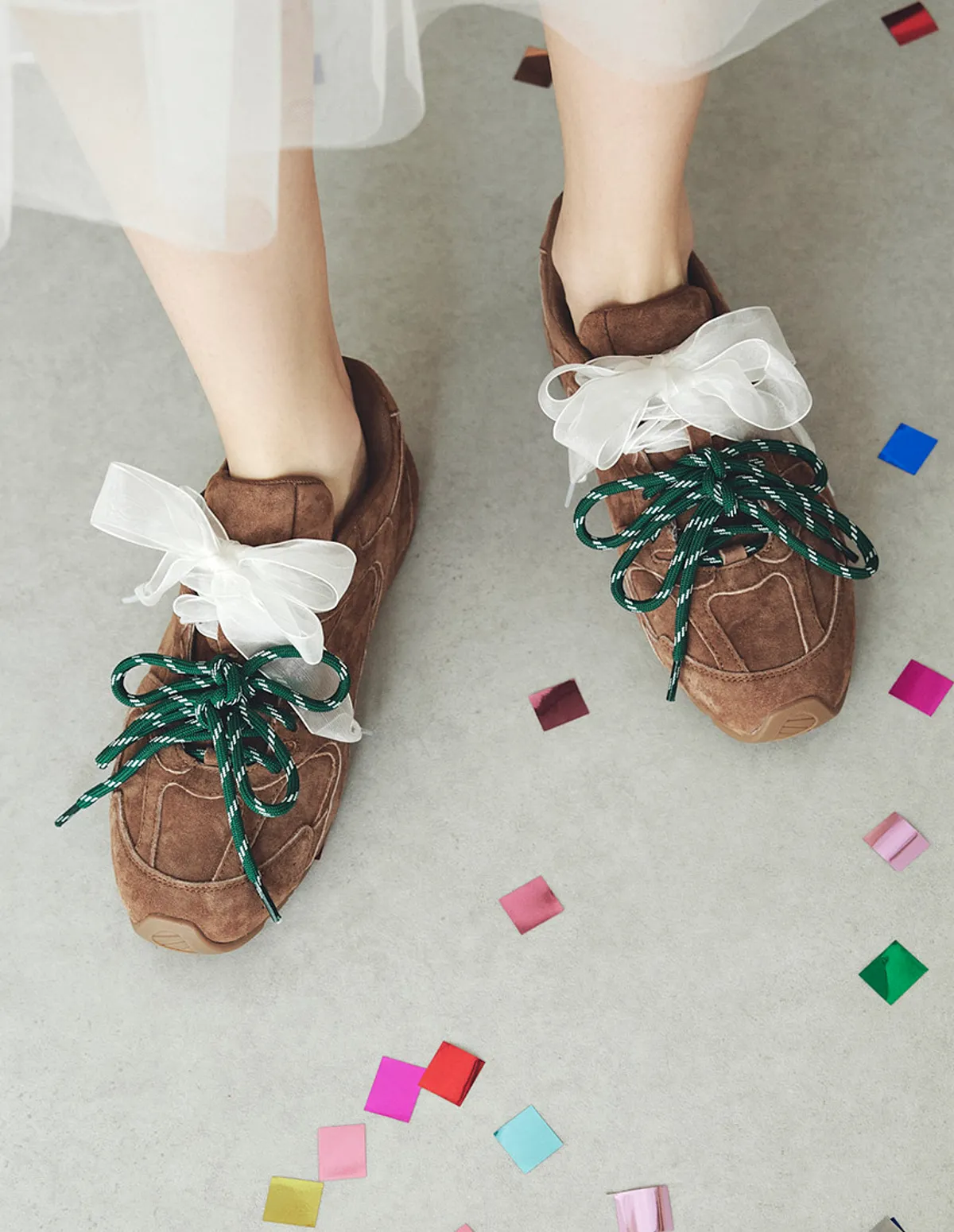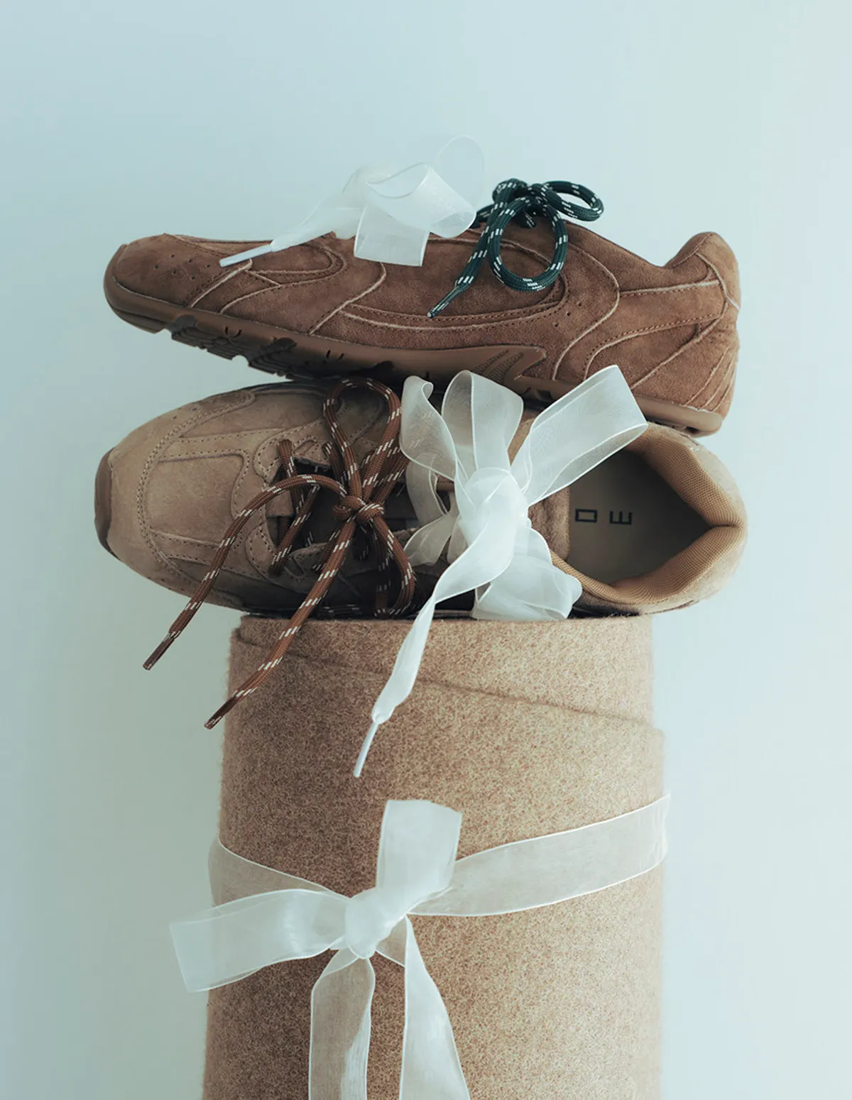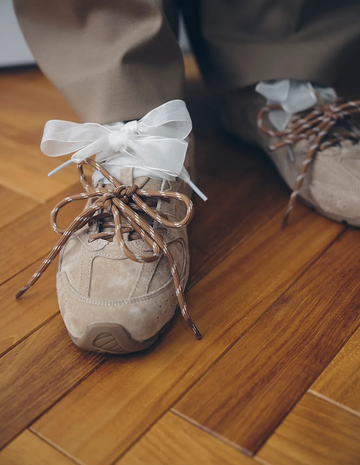 並飾以三種不同材質的鞋帶