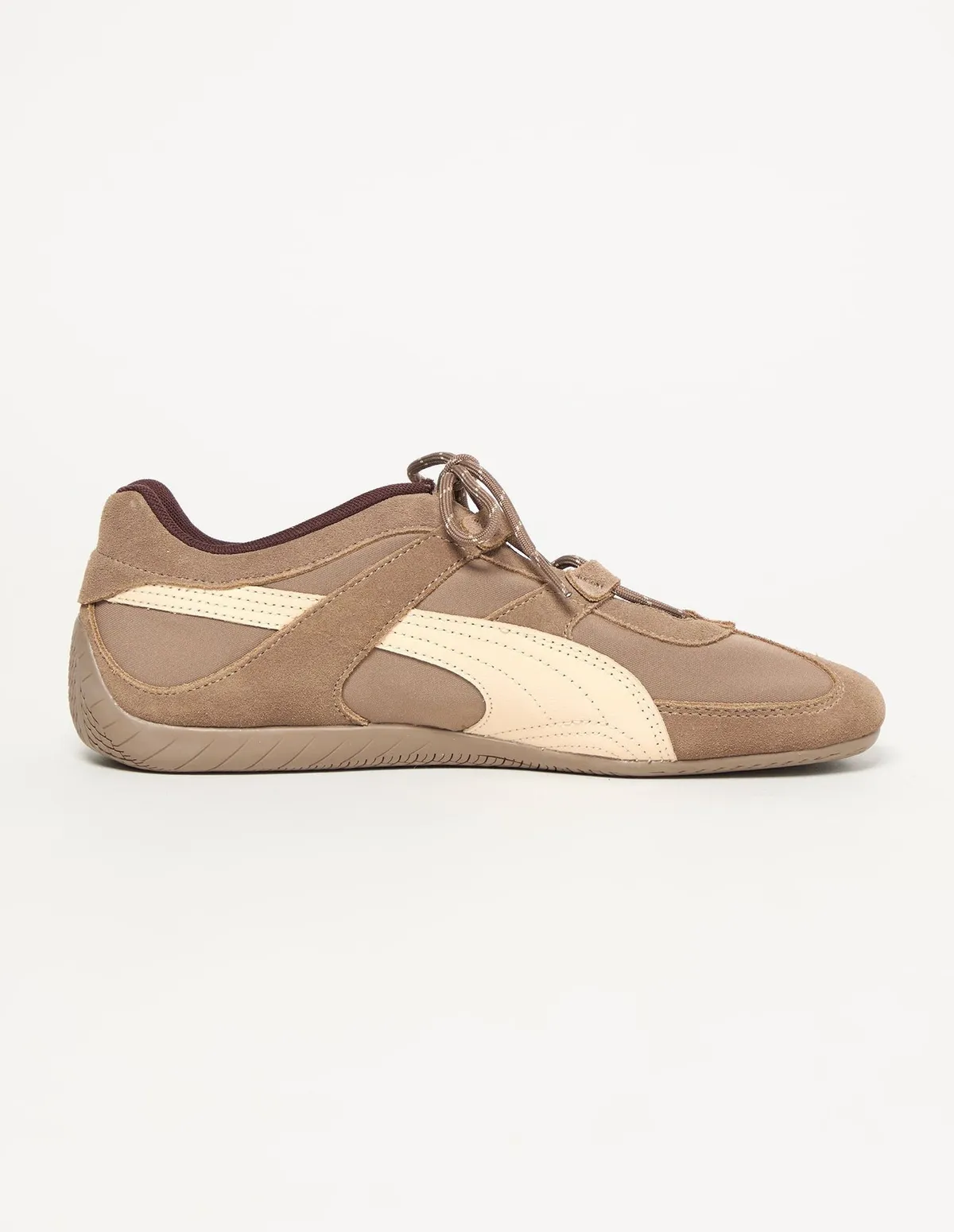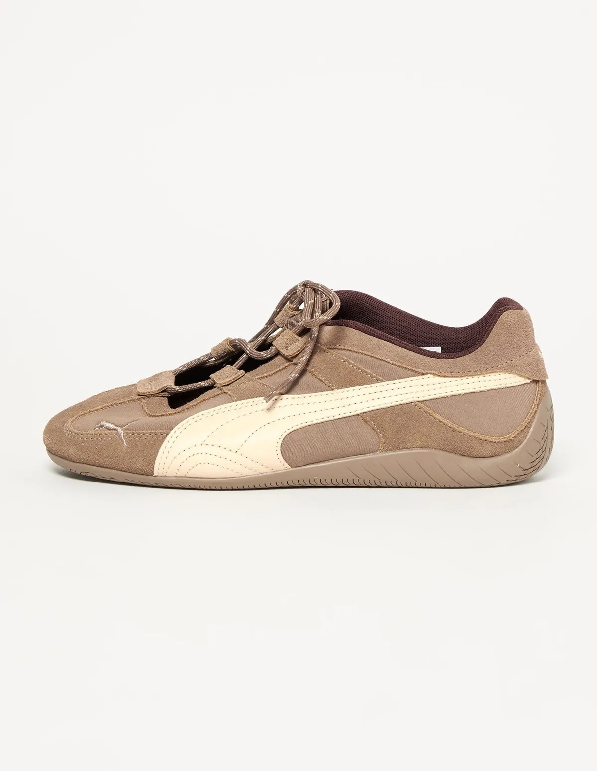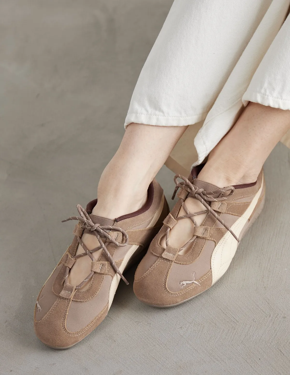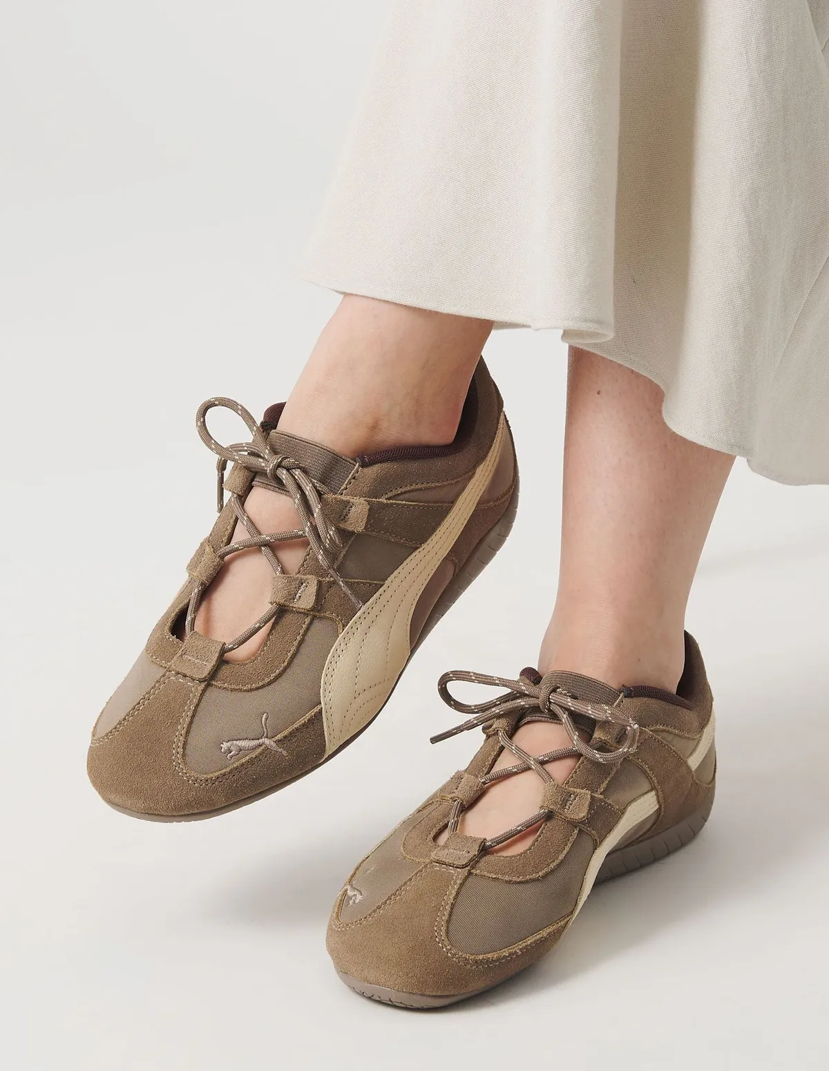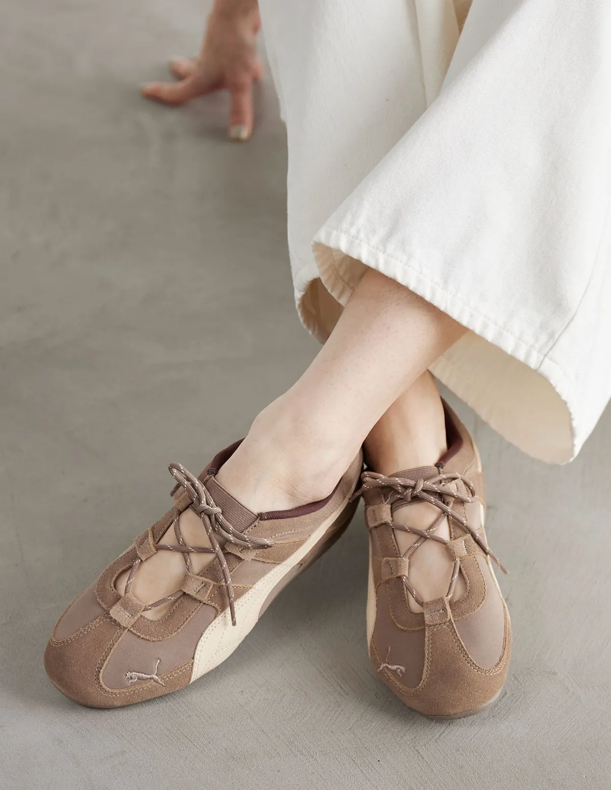 PUMA SPEEDCAT GO日本選品店限定色以時尚芭蕾鞋風格為基礎,融入清新繫帶設計全新推出的摩卡棕色,展現女性柔美氣質這款鞋在保留時尚芭蕾舞鞋風格的同時其獨特的鞋面設計更添亮點露趾鞋面設計恰到好處地展現肌膚為春夏穿搭增添輕鬆自在的氣息,是本季必備單品鞋面材質:天然皮革、合成纖維 此商品為預購商品 到貨時間需等待14~21個工作天 不含假日及國定假日 ⚠️急件處理需自行負擔國際運費