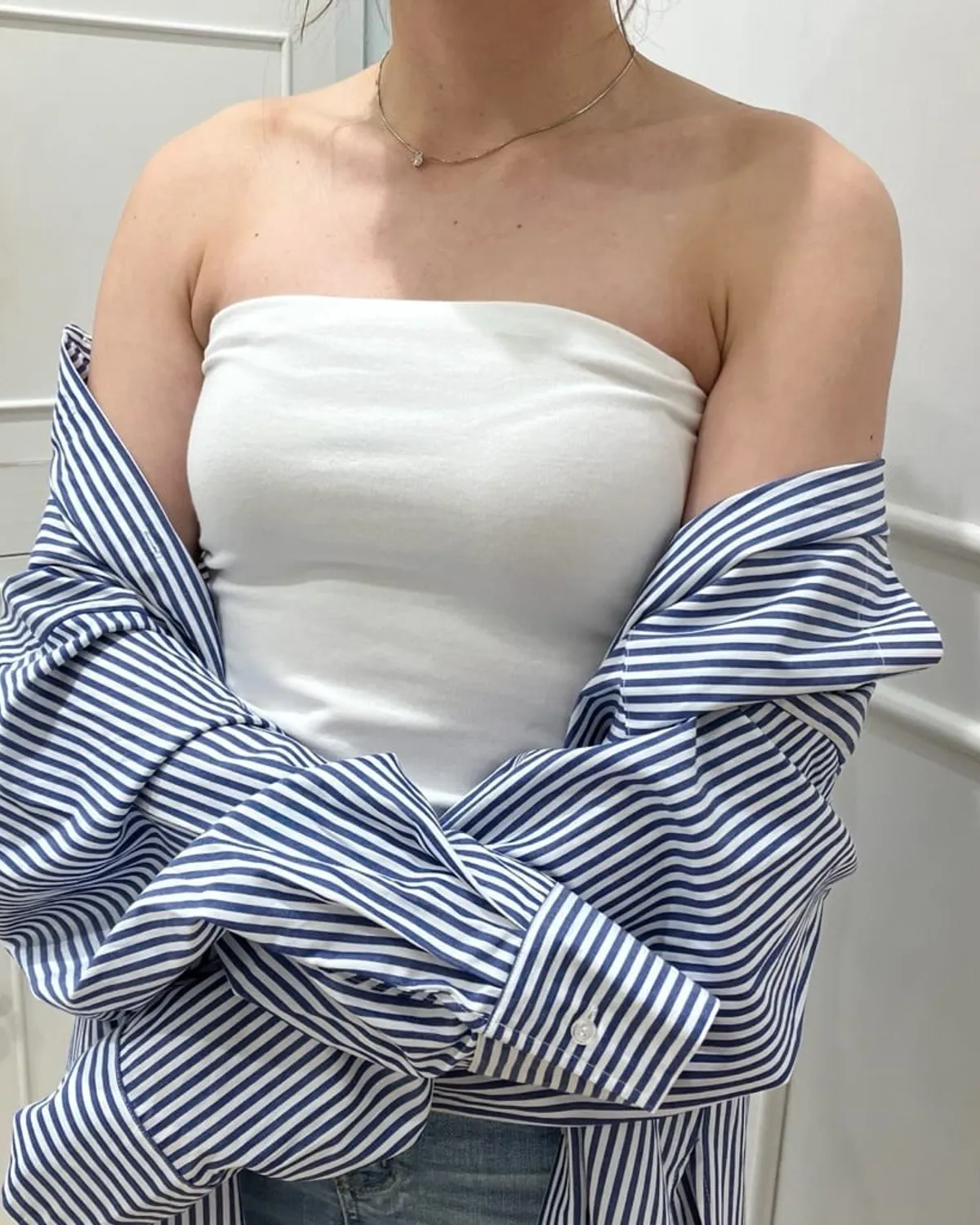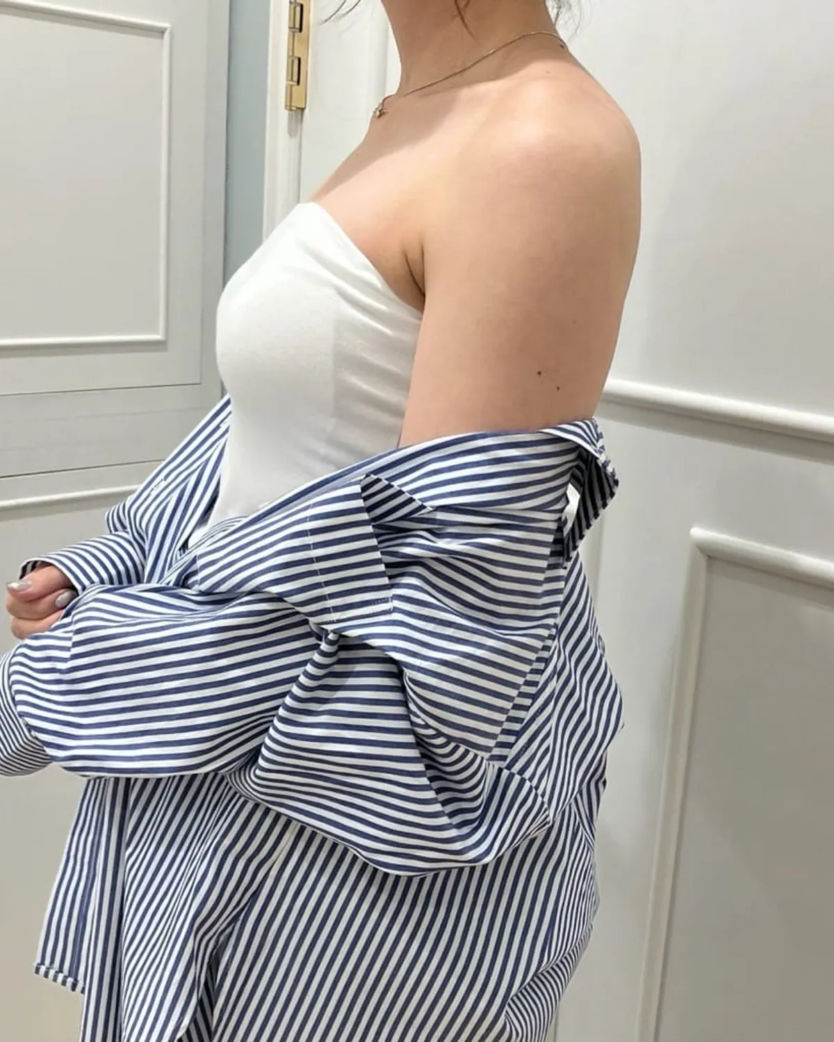● 肩帶可拆式設計,能自由搭配露肩上衣
