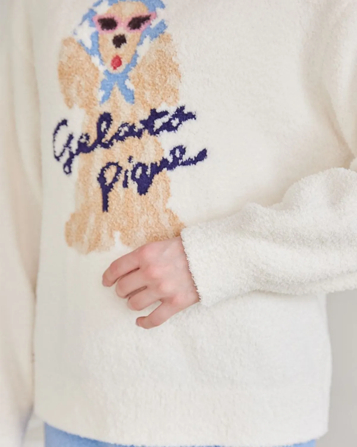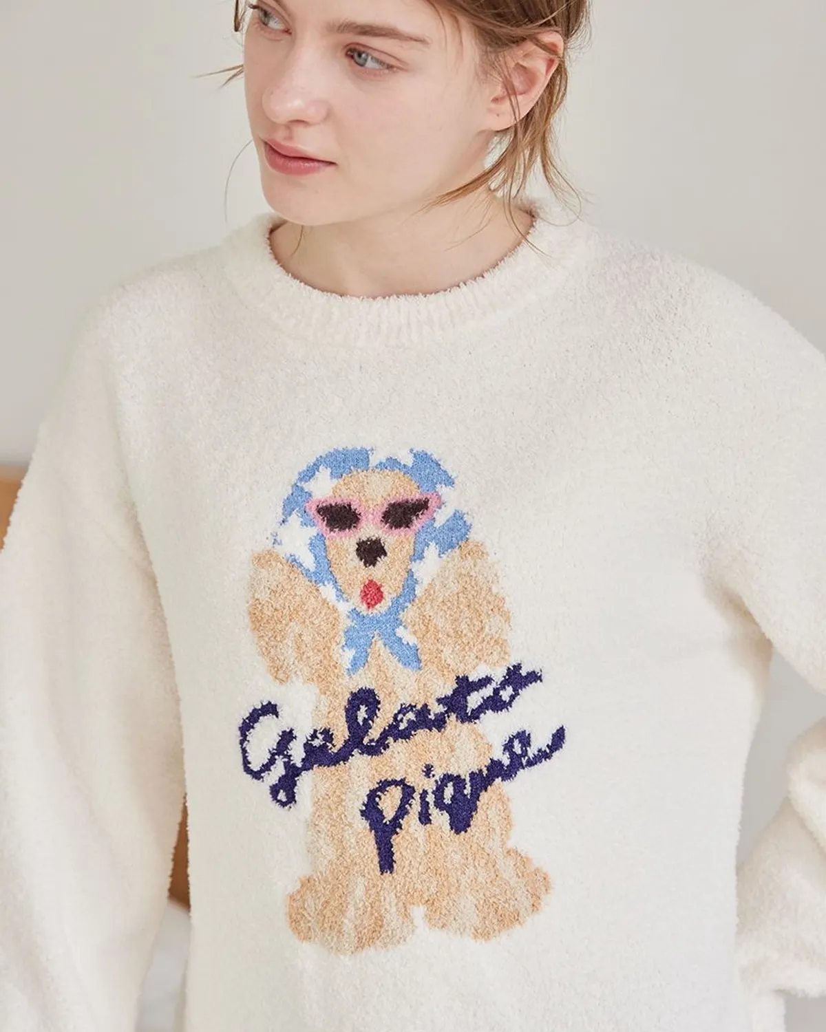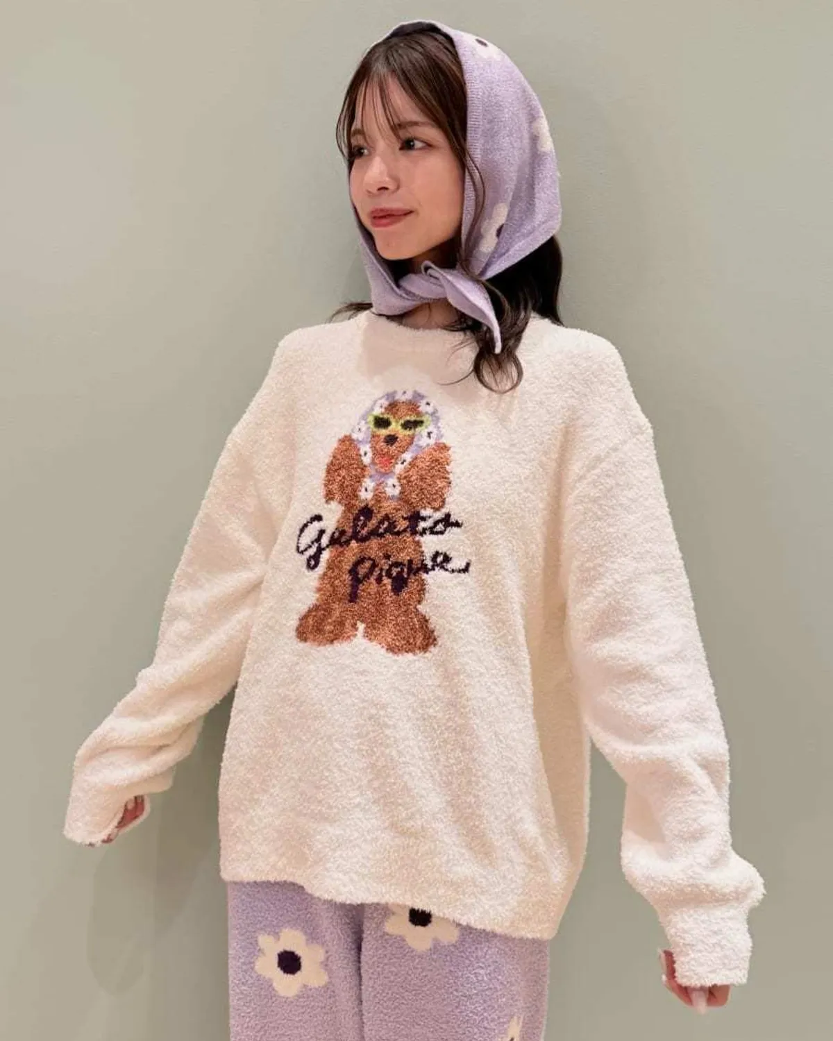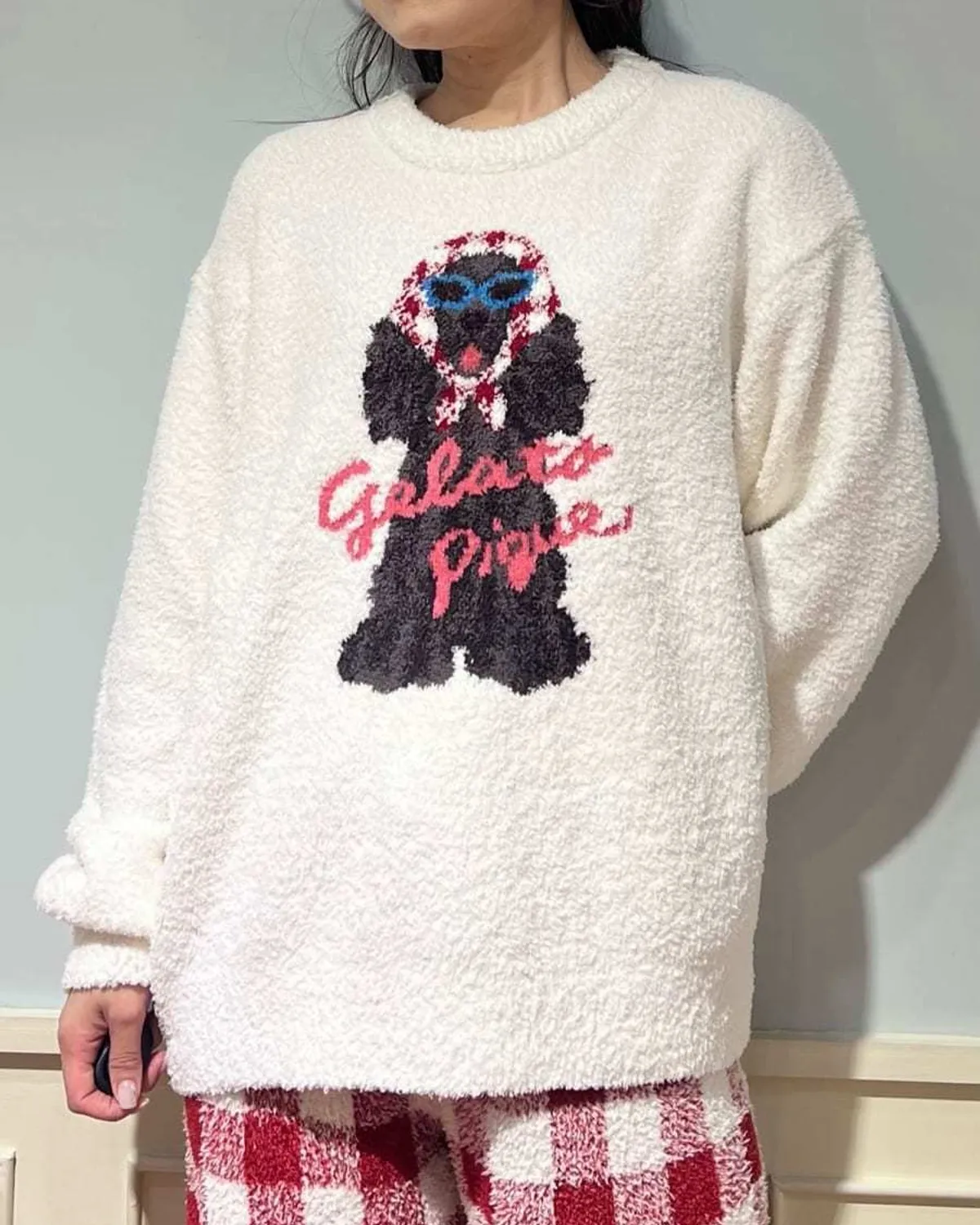 【設計/造型】這款提花針織上衣以復古流行色為主色調飾有戴著圍巾和太陽眼鏡的時尚可卡犬圖案採用柔軟保暖的針織布製成寬鬆的版型,衣身和袖子都十分寬鬆針織上衣的底色為米白色圍巾有三種顏色可選:紅色格子、藍色星星和紫色小花推薦搭配同系列的長褲和配件材質:100% 聚酯纖維 此商品為預購商品 到貨時間需等待10~21個工作天 不含假日及國定假日 ⚠️急件處理需自行負擔國際運費