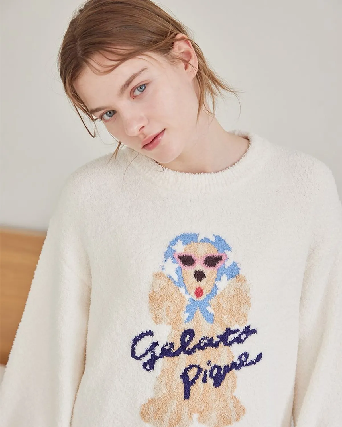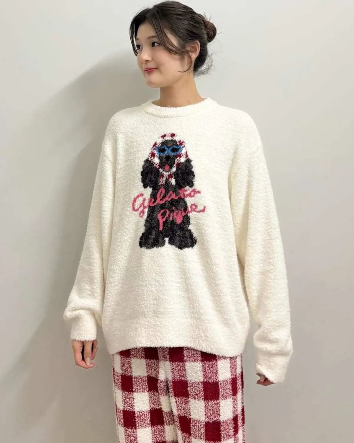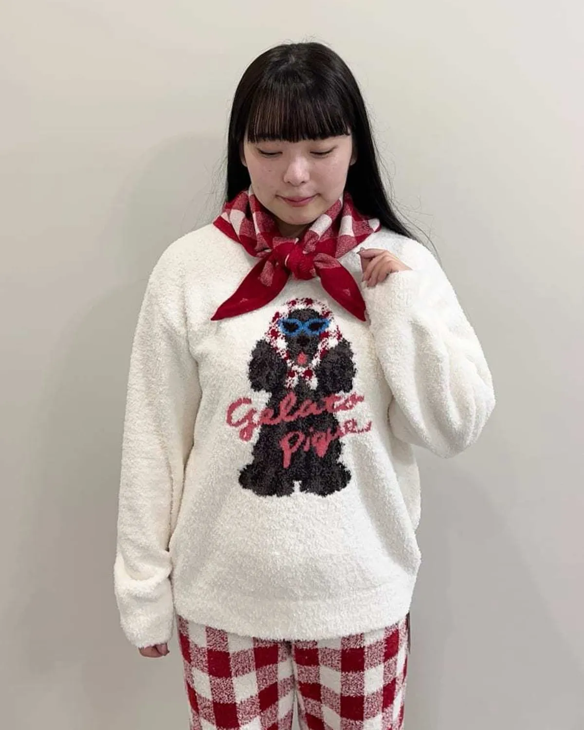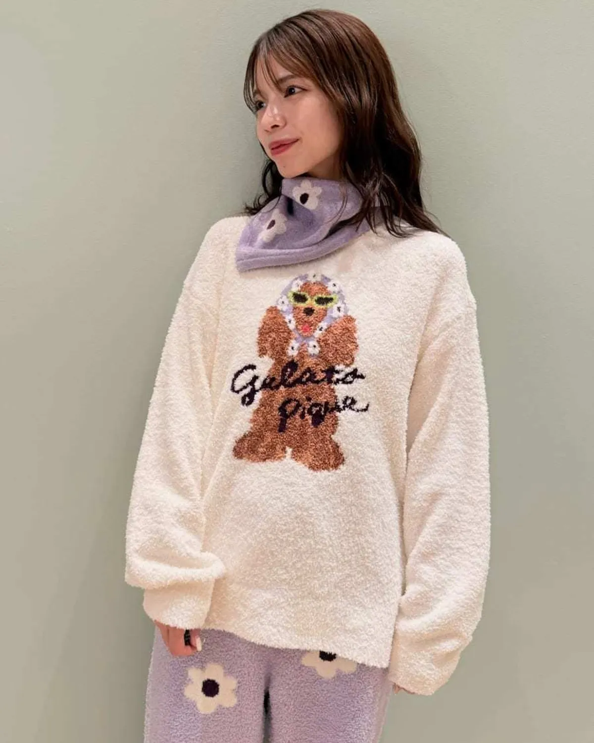 【設計/造型】這款提花針織上衣以復古流行色為主色調飾有戴著圍巾和太陽眼鏡的時尚可卡犬圖案採用柔軟保暖的針織布製成寬鬆的版型,衣身和袖子都十分寬鬆針織上衣的底色為米白色圍巾有三種顏色可選:紅色格子、藍色星星和紫色小花推薦搭配同系列的長褲和配件材質:100% 聚酯纖維 此商品為預購商品 到貨時間需等待10~21個工作天 不含假日及國定假日 ⚠️急件處理需自行負擔國際運費
